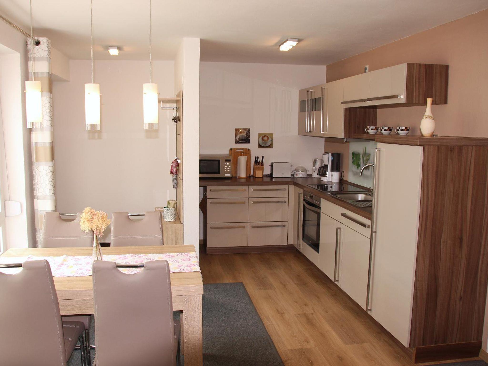 Die komplett eingerichtete Küche mit Geschirrspüler macht Ihnen auch die Selbstversorgung vor Ort einfach. Kurze Wege für den schnellen Einkauf durch zentrale Lage im Ort. Frische Brötchen können Sie gleich gegenüber holen.