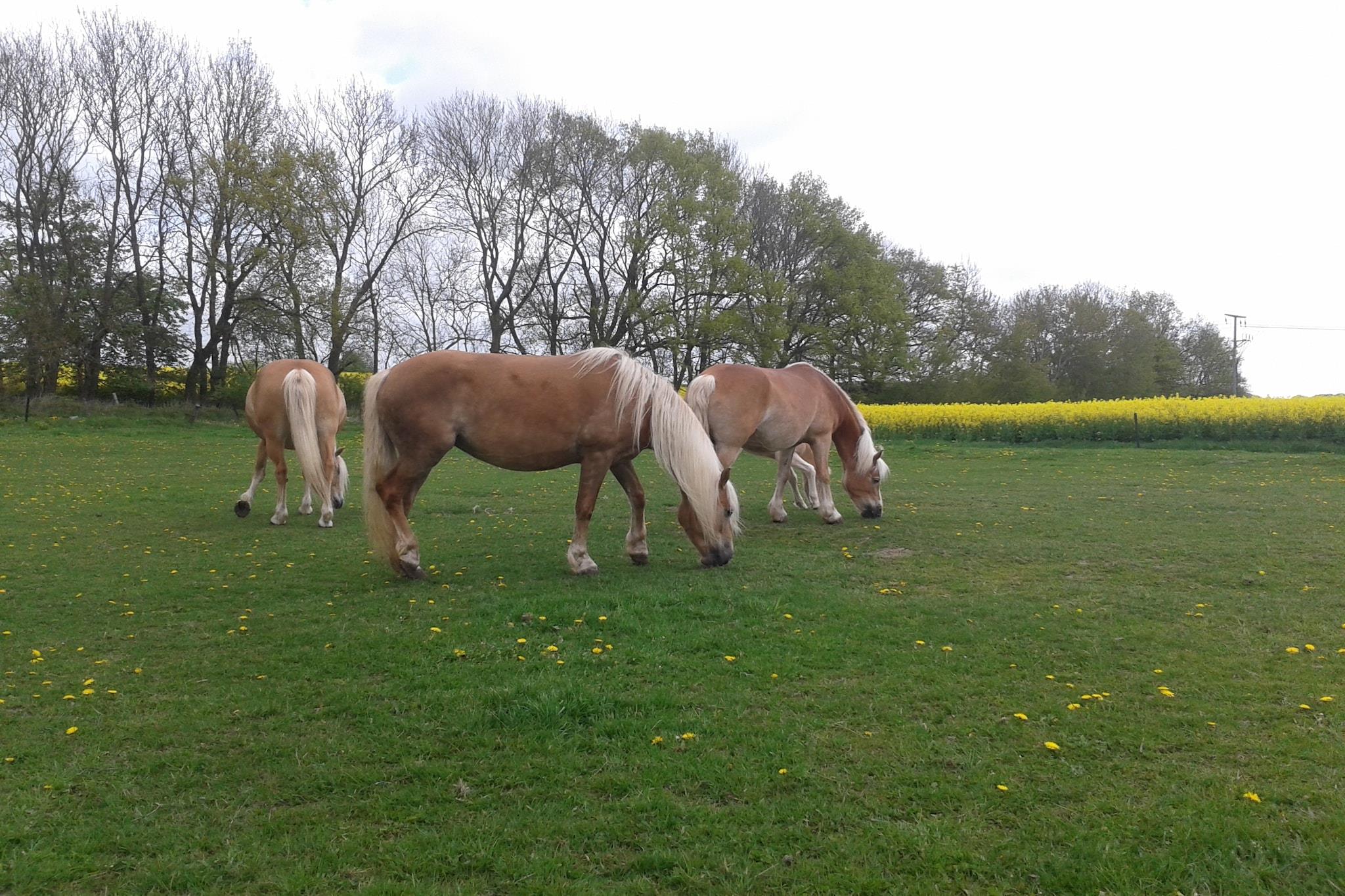 Stueetage: (entre, åbent køkken(spisebord, brødrister, komfur(Komfur med fire kogeplader), emhætte, kaffemaskine, ovn, mikrobølgeovn, opvaskemaskine , køleskab(+ fryser)), Stue/soveværelse(dobbeltsovesofa, Fjernsyn(parabol), sofahjørne, radio, CD-afspiller), soveværelse(køjeseng, king size-seng(to enkeltdyner, to enkelt lagener)), badeværelse(bruser, håndvask, toilet, pissoir, vaskemaskine), varme(gulvvarme), barneseng, barnestol) hesteopstaldning, have(deles med ejer), havemøbler, grill, parkering