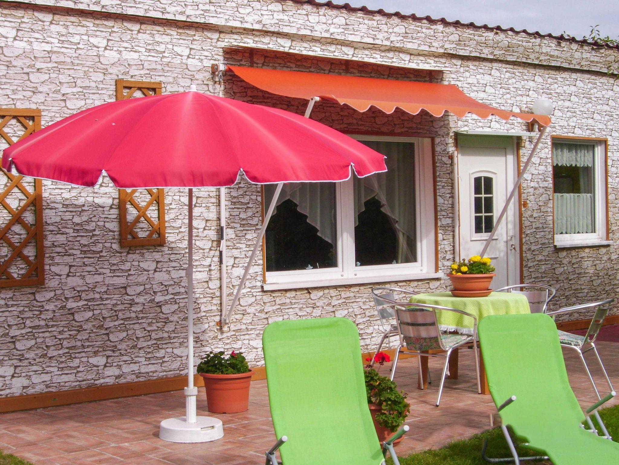 Das geräumige, 60m² Ferienhaus steht bei uns im großen Garten, sehr ruhig. Terrasse und Spielwiese befinden sich vor dem Bungalow.