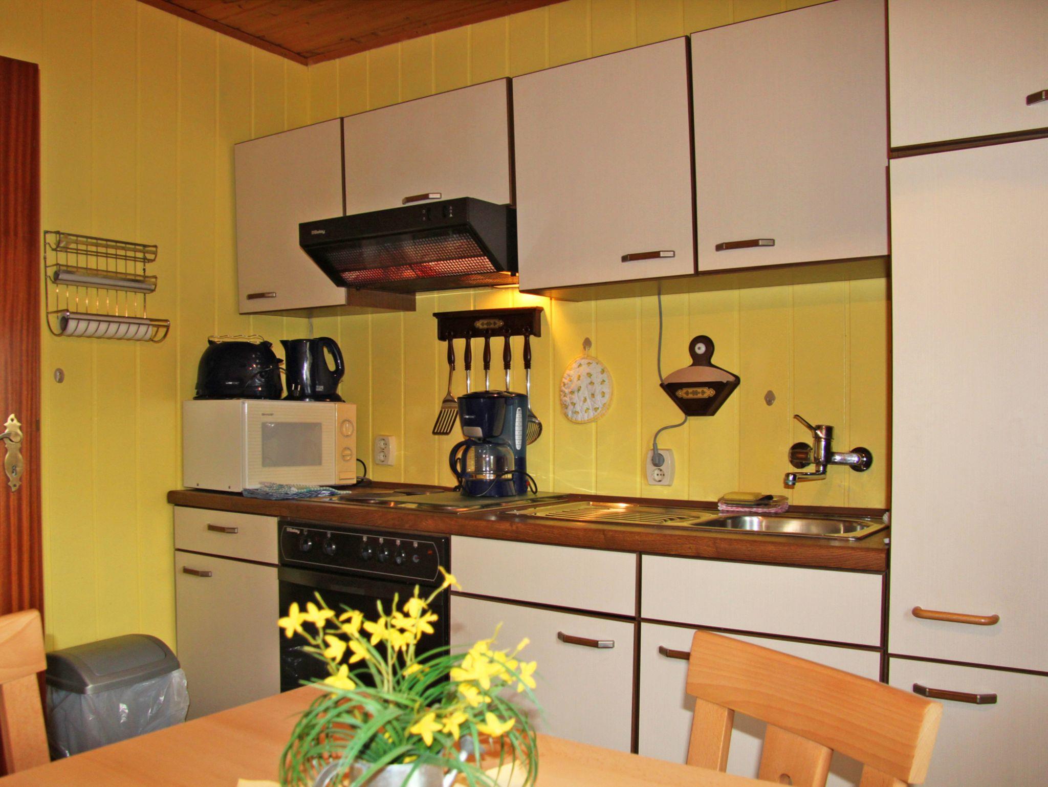 In der kleineren Ferienwohnung befinden sich auf 40 m² ein gemütliches Wohnzimmer mit Sitzecke und Sat-TV, Doppelbett-Schlafzimmer, voll ausgestattetem Küchenbereich und Dusche/WC.