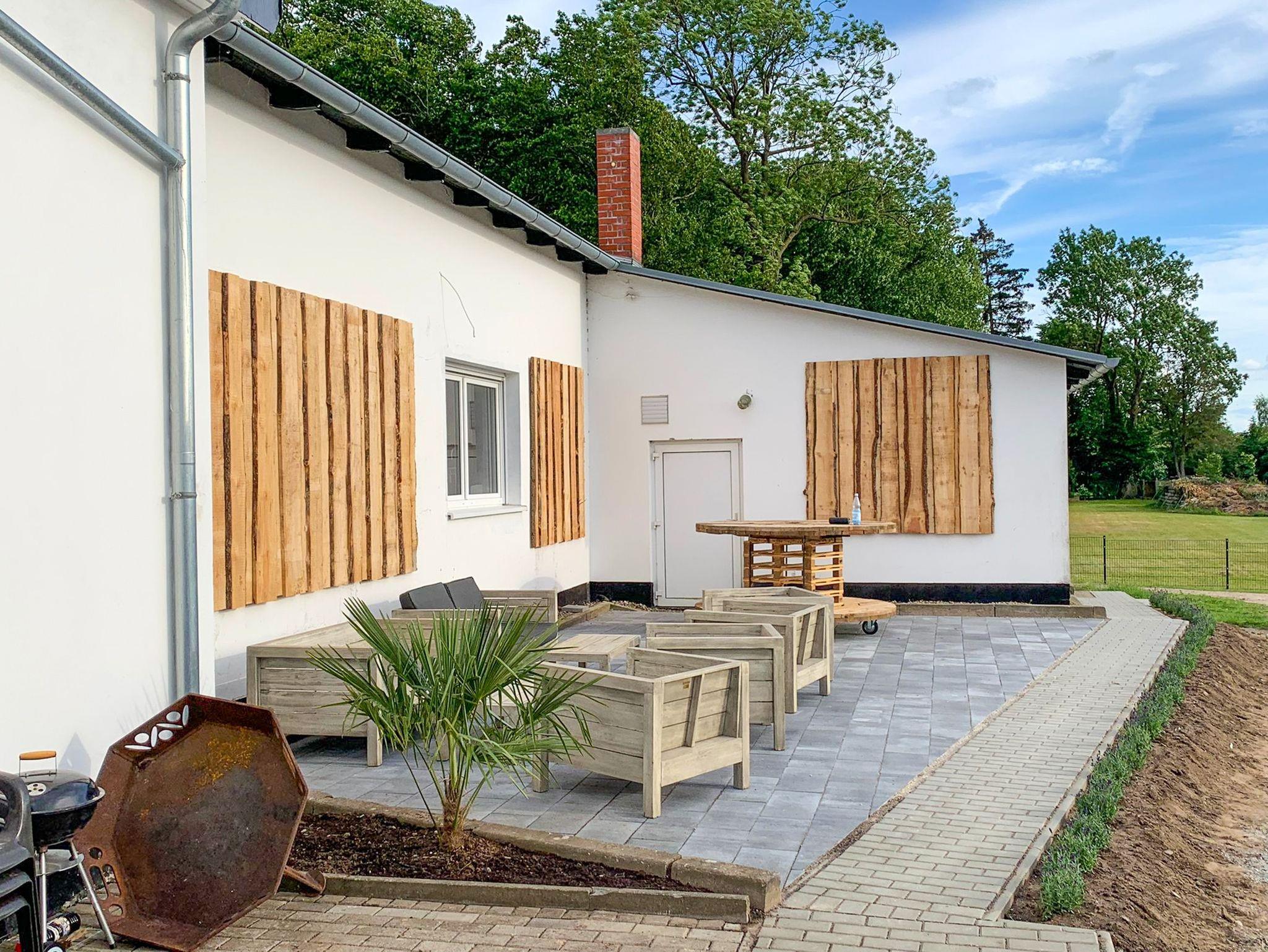 Das Landhaus Wiesenblick in Zarrendorf umfasst neben 3 Ferienwohnungen noch einen separat mietbaren Tanzsaal und eine Gaststube für eigene Feiern und Veranstaltungen. Die Ferienwohnungen Panoramablick 1 und 2 sind für jeweils 6 Personen ausgelegt und befinden sich im 1. OG und sind über einen gemeinsamen Zugang erreichbar. Die Ferienwohnung Wiesenglück für 8 Personen befindet sich im Erdgeschoss und besitzt einen separaten Eingang. Die sehr stilvoll eingerichteten Ferienwohnungen verfügen über jeweils 1 Wohnzimmer mit offener Küche und Essbereich, sowie 2 bzw. 3 getrennten Schlafzimmern. Das Badezimmer ist separat abschließbar und mit Dusche, WC und Badewanne ausgestattet. Die Küche beinhaltet eine Spüle, Geschirrspüler, Backofen, Cerankochfeld, Kühlschrank mit Gefrierfach, Wasserkocher, Toaster, Tassimo Kaffeemaschine, täglichen Küchenhelfern, Besteck und Geschirr für bis zu 6 bzw. 8 Personen. Auf dem Grundstück stehen Parkplätze und eine große Terrasse sowie Grillmöglichkeiten zur Verfügung.