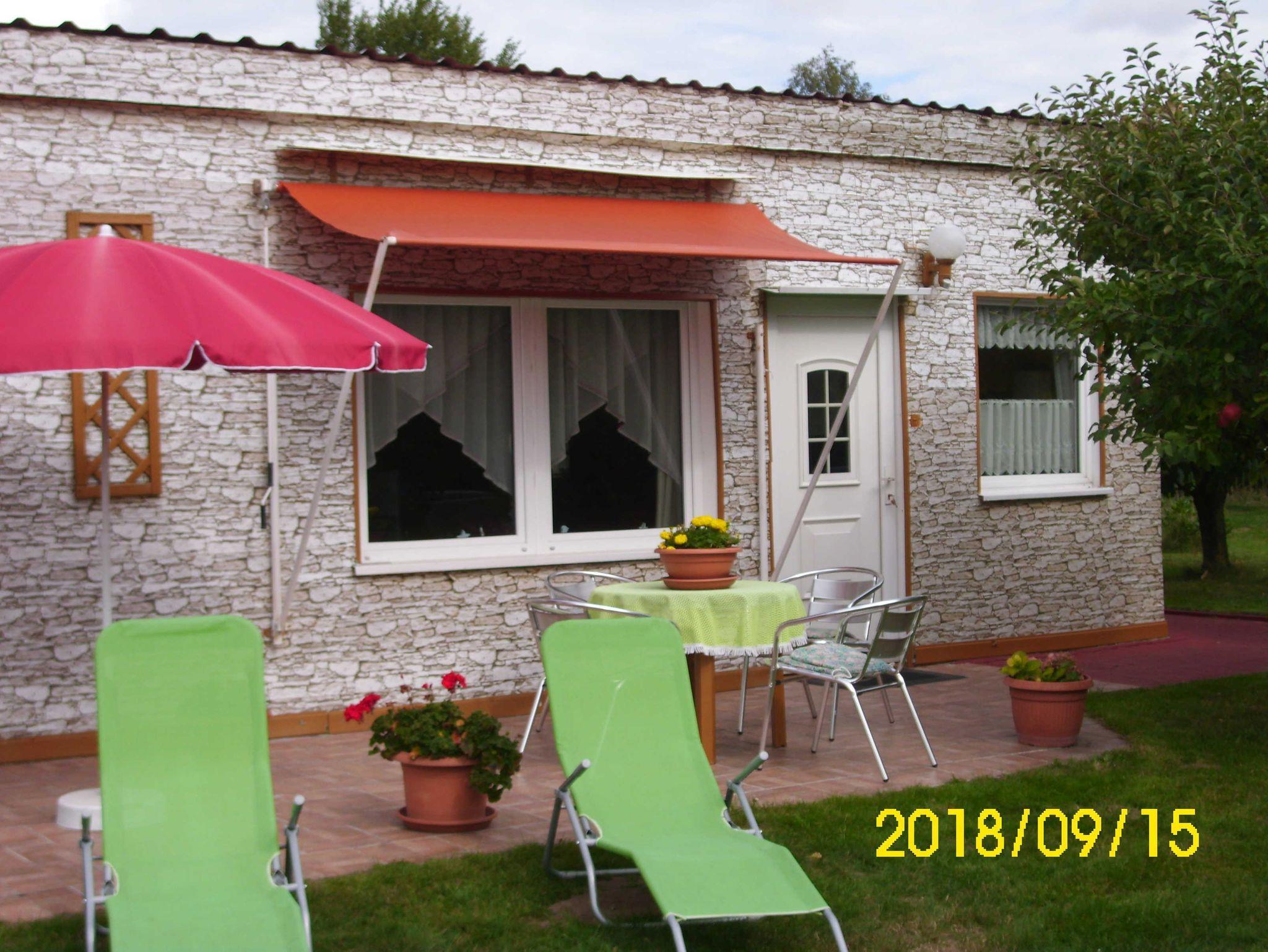 Das geräumige, 60m² Ferienhaus steht bei uns im großen Garten, sehr ruhig. Terrasse und Spielwiese befinden sich vor dem Bungalow.