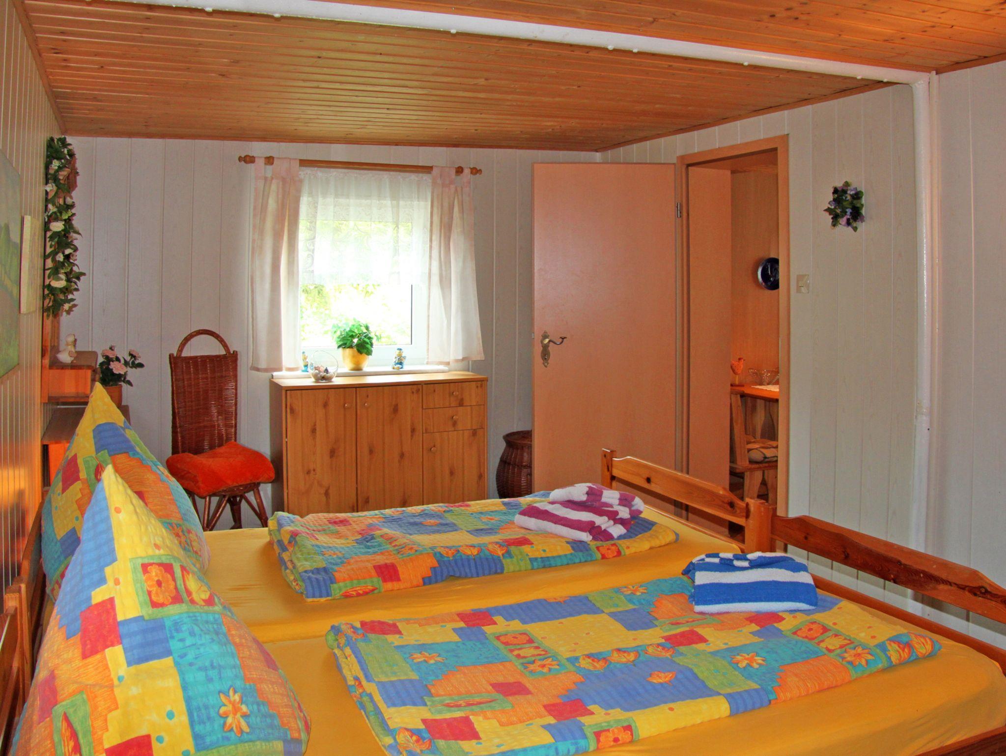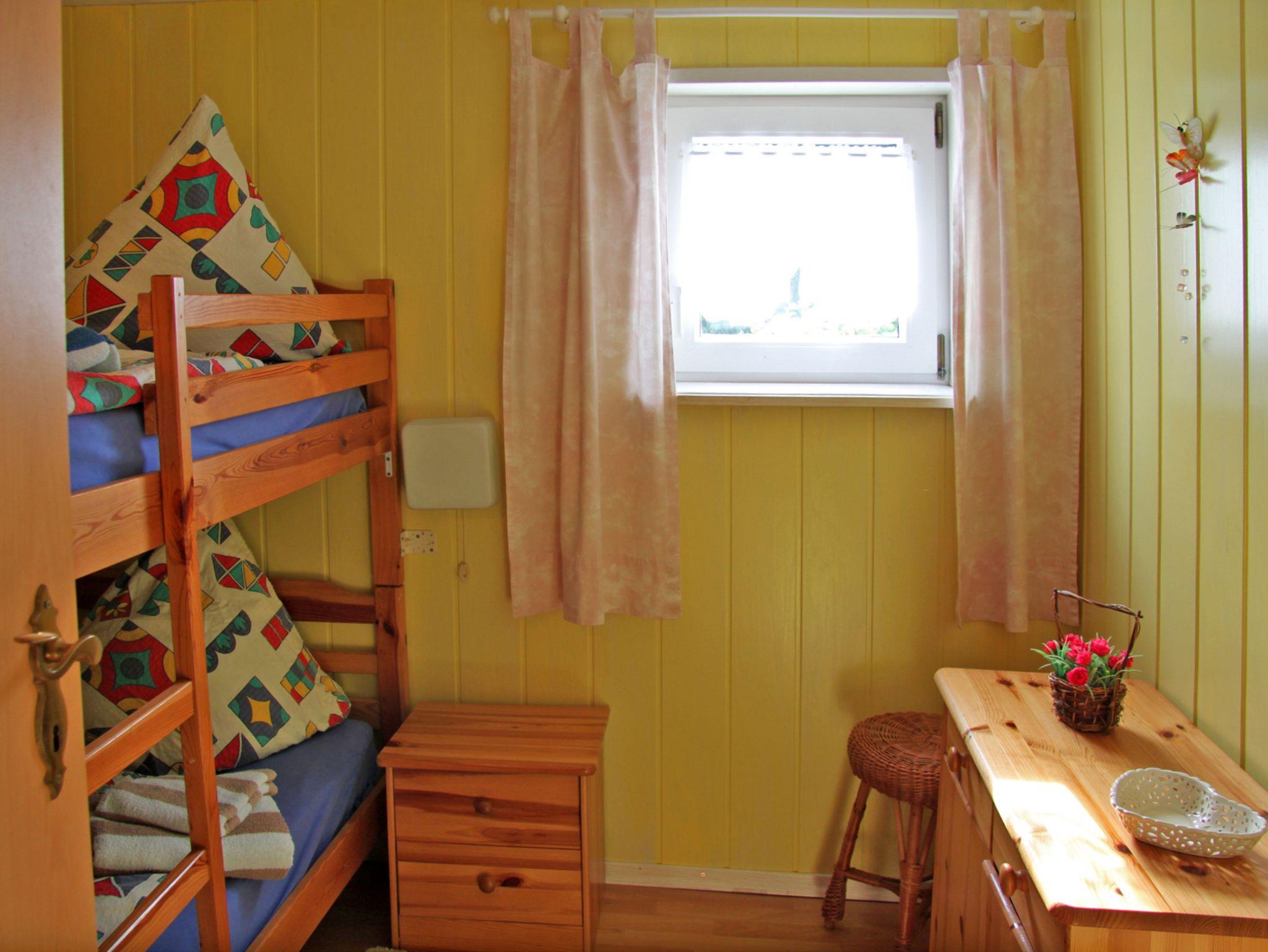 Ein Schlafzimmer ist mit einem Doppelbett (zusammen gestellte Einzelbetten, jeweils 90x200) und das andere Schlafzimmer mit einem Etagenbett (Doppelstockbett, 90x200) für Kinder und Junggebliebene ausgestattet. Über das Kinderschlafzimmer gelangt man in das Bad. Wir bitten darum nicht mit Kindern unter 4 Jahren anzureisen.
