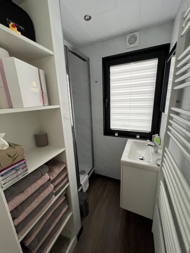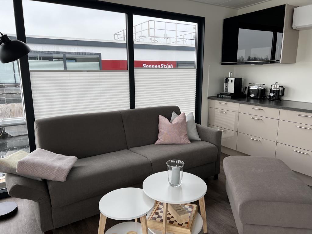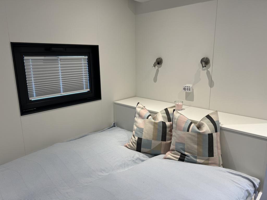 Das Floatinghouse verfügt über 1 Badezimmer mit Dusche, WC, Waschbecken, Fenster und warmem Wasser; insgesamt gibt es 1 Dusche. Für angenehmes Raumklima sorgen Elektro-Heizung sowie eine Klimaanlage in allen Aufenthaltsräumen. Ein Kaminofen ergänzt das Wohngefühl, während Fliegengitter, Sonnenschutz und Sichtschutz für alle Fenster den Aufenthalt zusätzlich komfortabel machen.