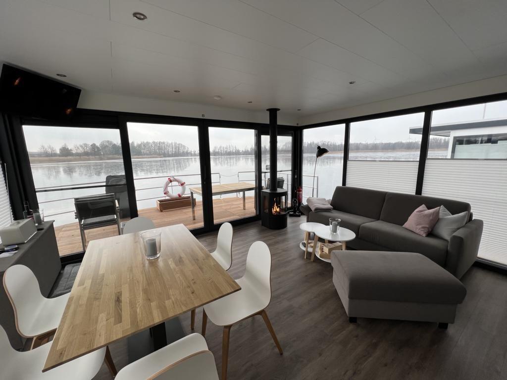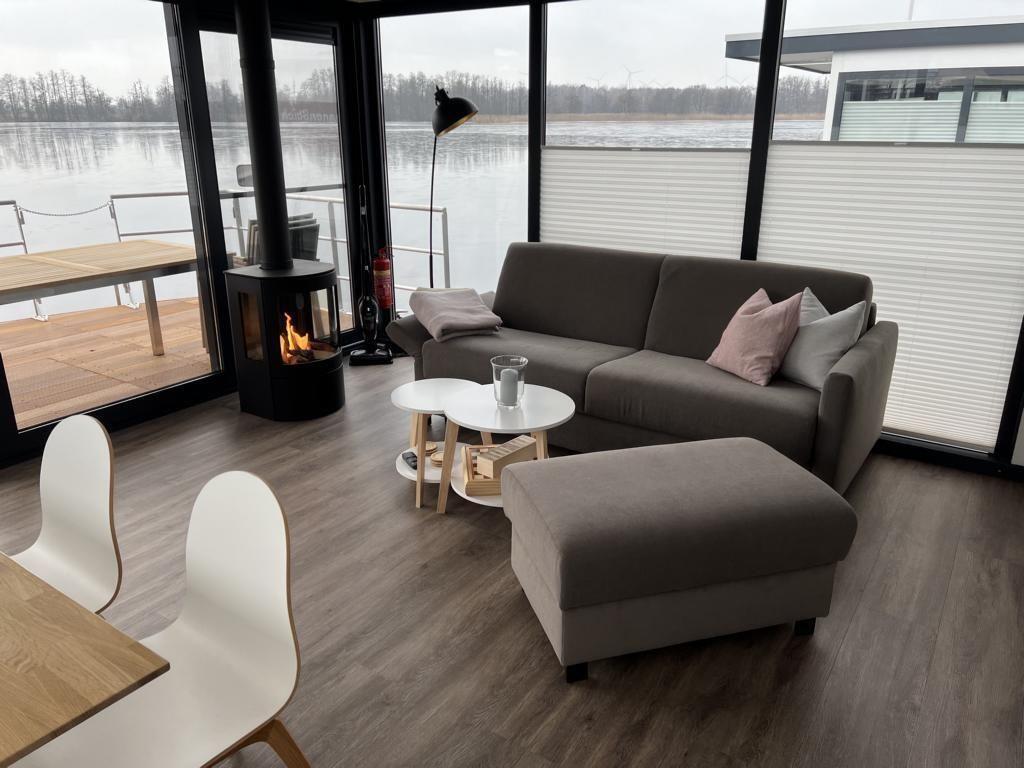 Floatinghouse Bakerman: Urlaub am See mit Kaminofen und Seeblick