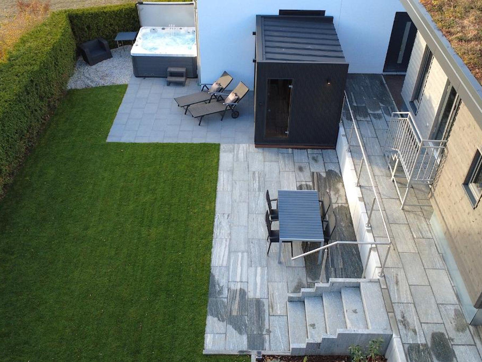 Die privaten großzügigen Terrassen: Genießen Sie Ihren Morgenkaffee oder ein Glas Wein am Abend auf den gemütlichen und weitläufigen Terrassen, die mit zwei Gartenliegen, einem Tisch mit Stühlen sowie einem Loungebereich mit Sesseln ausgestattet sind