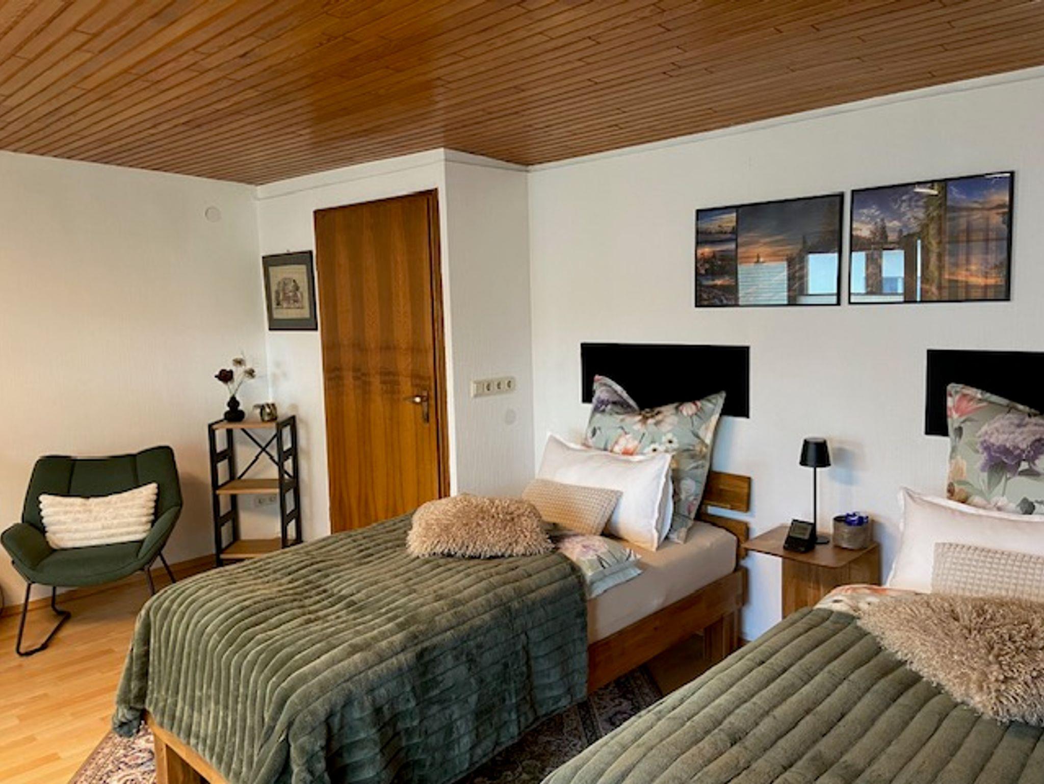 Die Ferienwohnung verfügt über zwei gemütlich eingerichtete Schlafzimmer mit einem Doppelbett und zwei Einzelbetten. Die Betten sind vor Ankunft mit Bettwäsche bezogen, besondere Kissenwünsche werden gerne erfüllt. Ruhiger Schlaf bei geöffnetem Fenster ist garantiert, denn Insektenschutzrahmen halten lästige Besucher fern. Rollläden schützen zusätzlich tagsüber vor Sonneneinstrahlung, und gewähren einen zuverlässigen Licht- und Sichtschutz.
