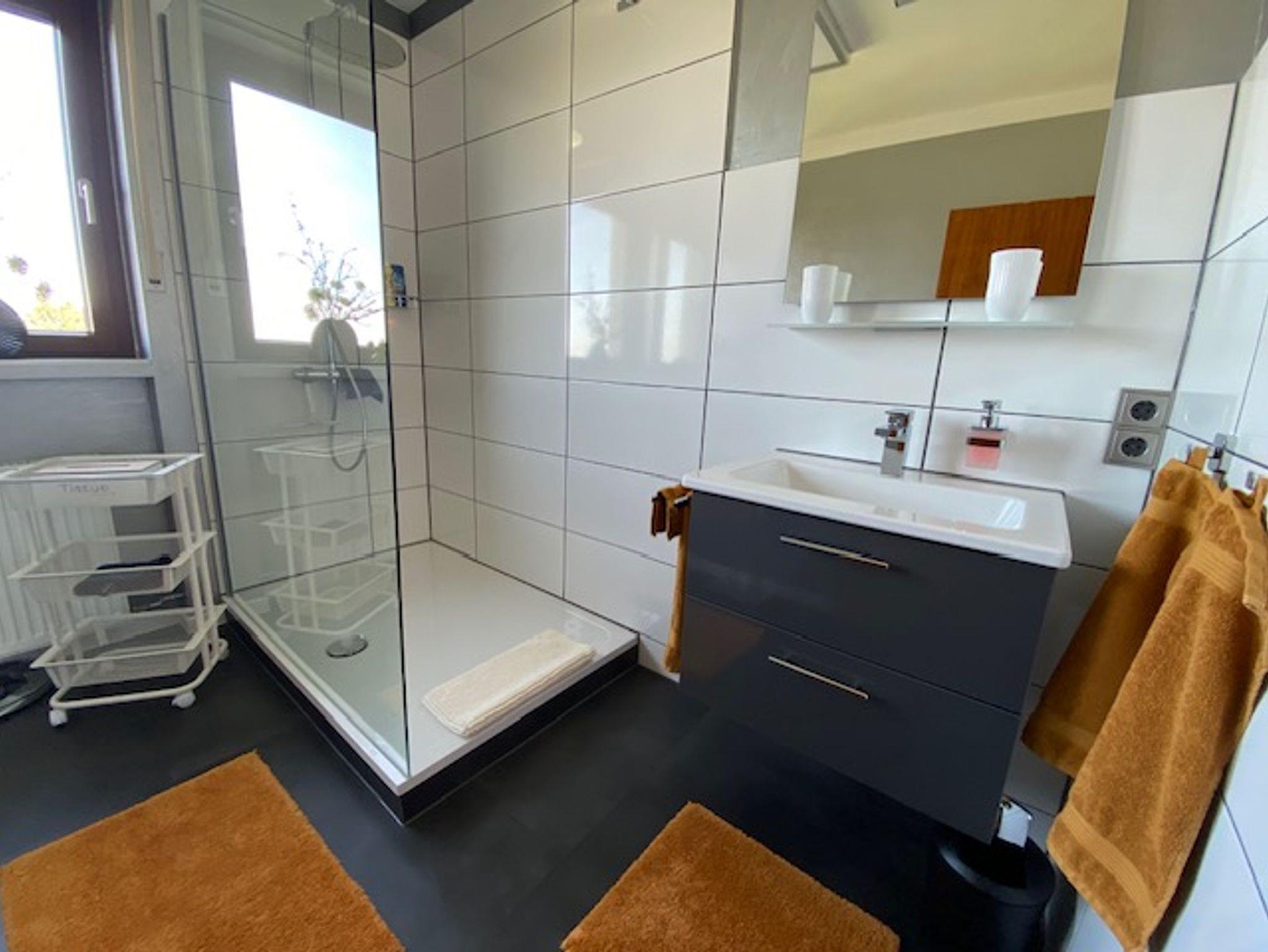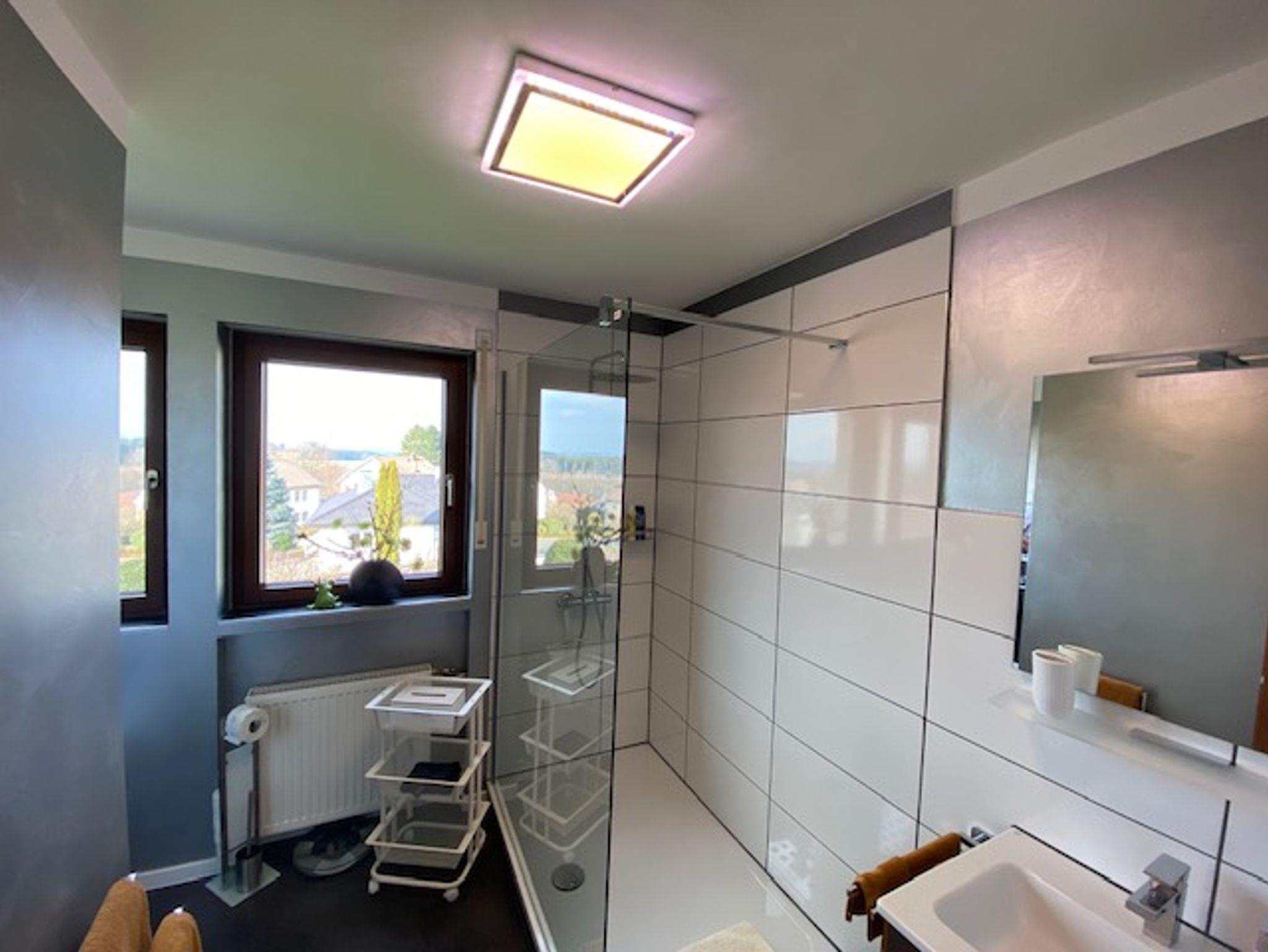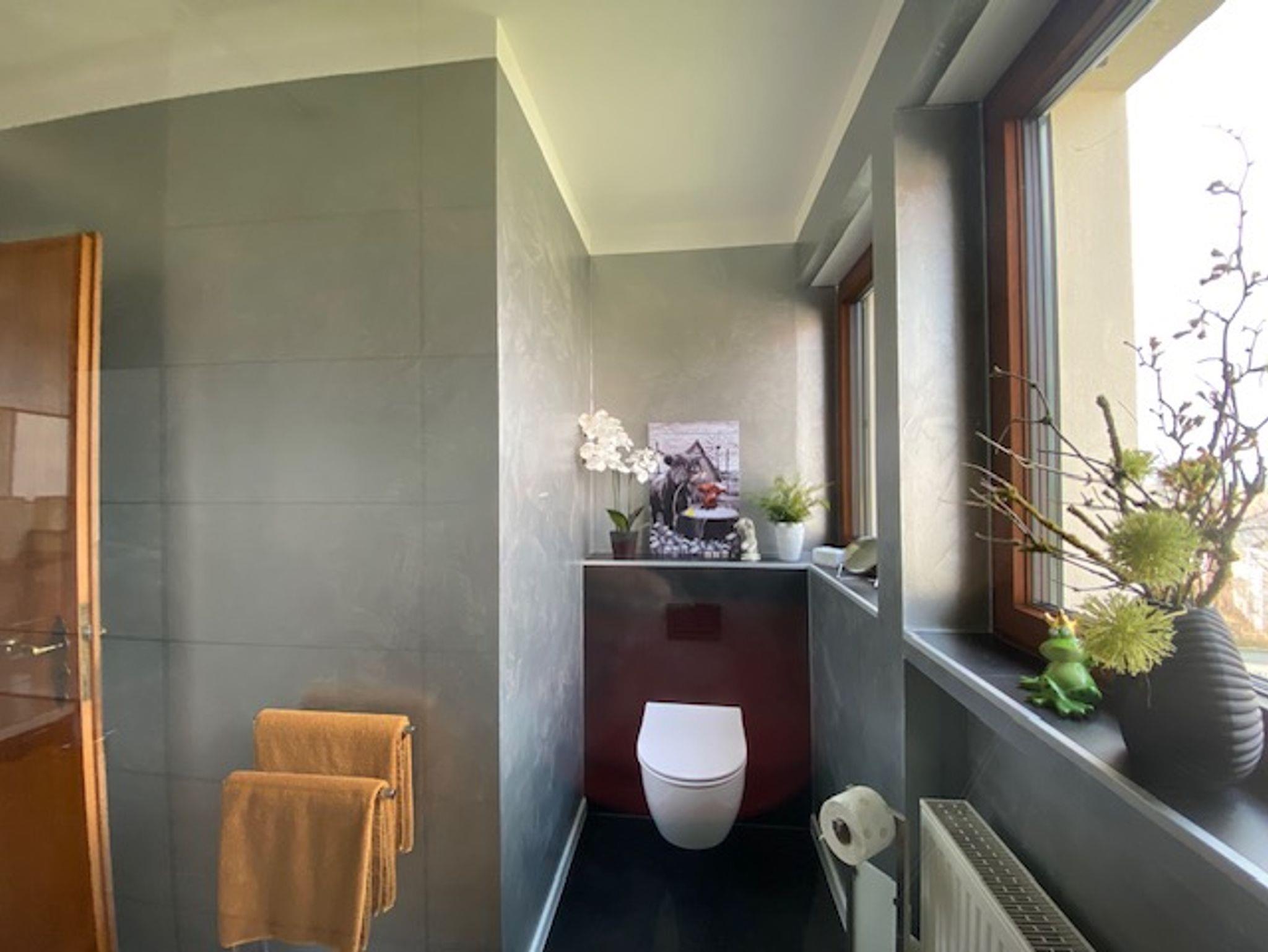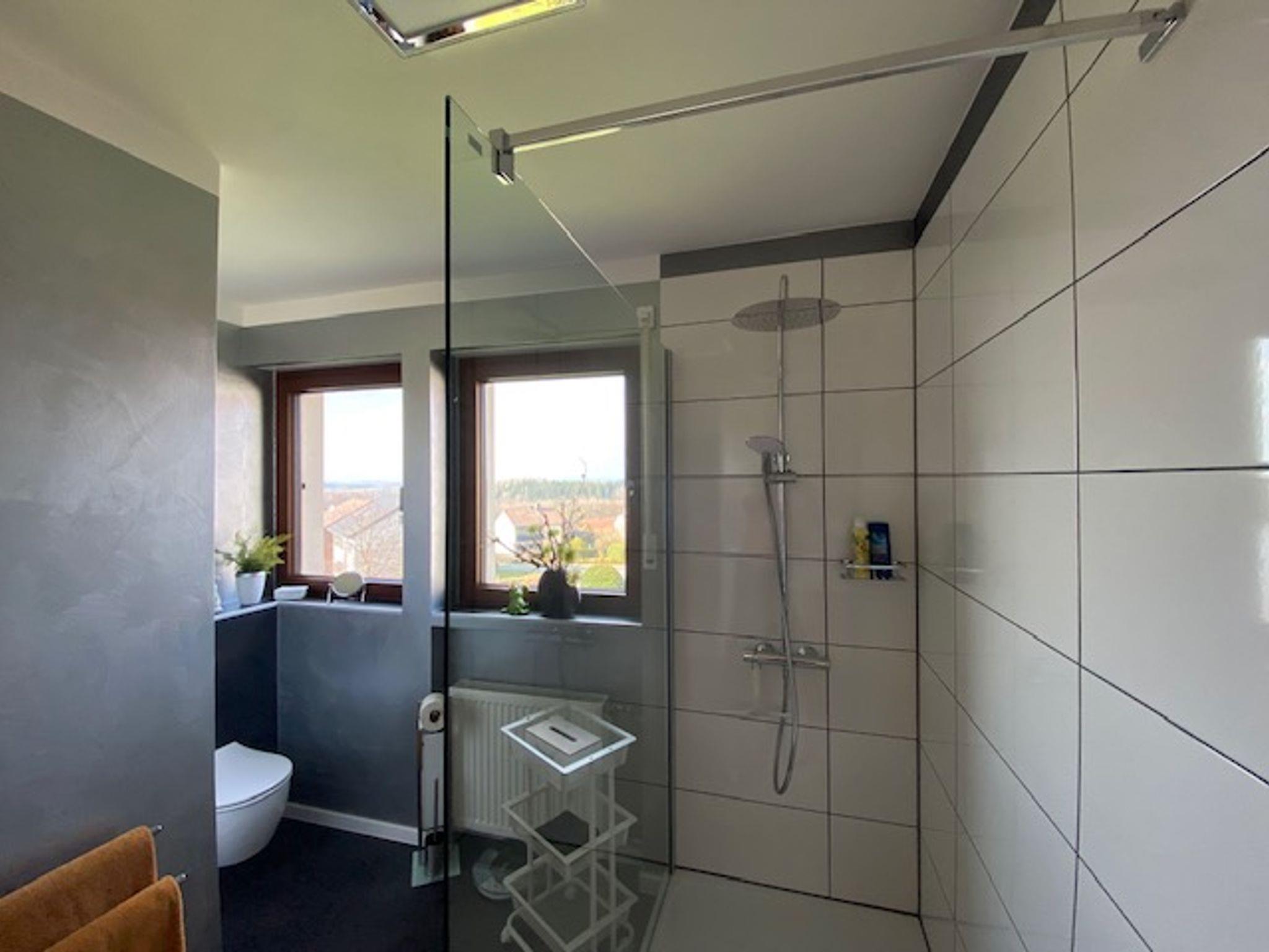 Das schöne Badezimmer mit Blick in die Natur, begehbarer Regendusche und Ambientebeleuchtung rundet das Gesamtbild ab. Sämtl. Reinigungsutensilien, sowie Waschmaschine, Trockner und Bügelstation stehen im Haus zur Verfügung.