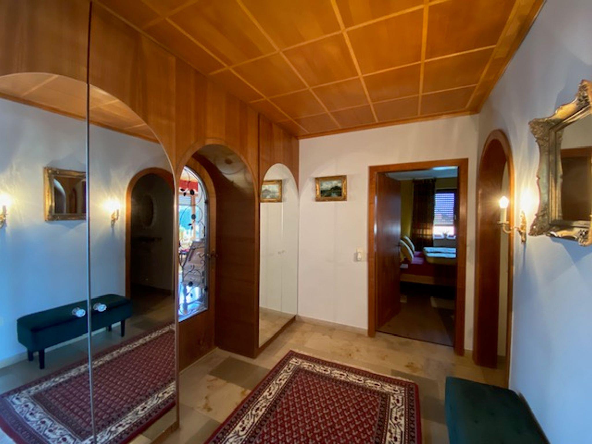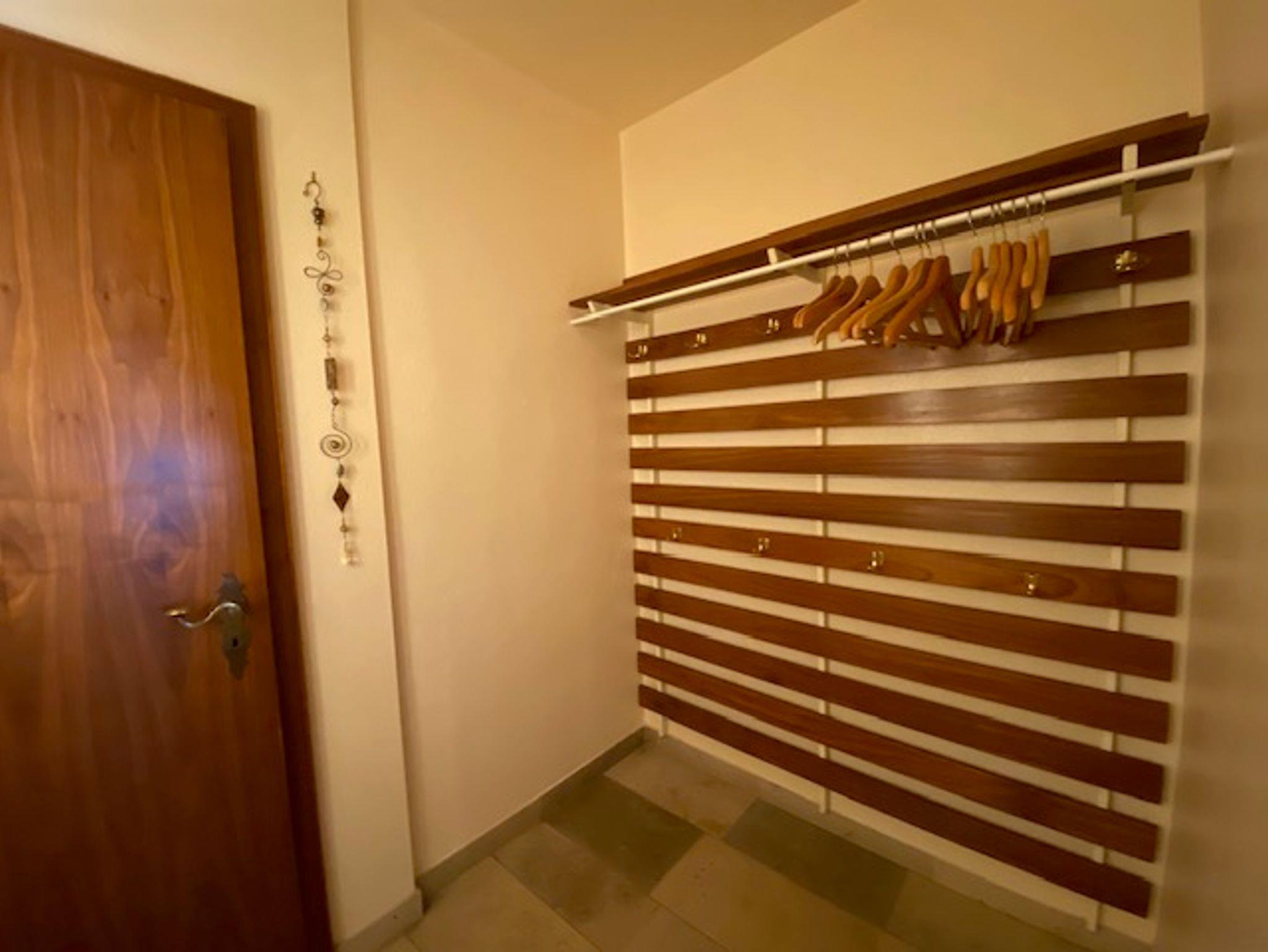 Ein großer Flur mit Einbauschränken bietet genügend Platz für Kleidung und Schuhe.