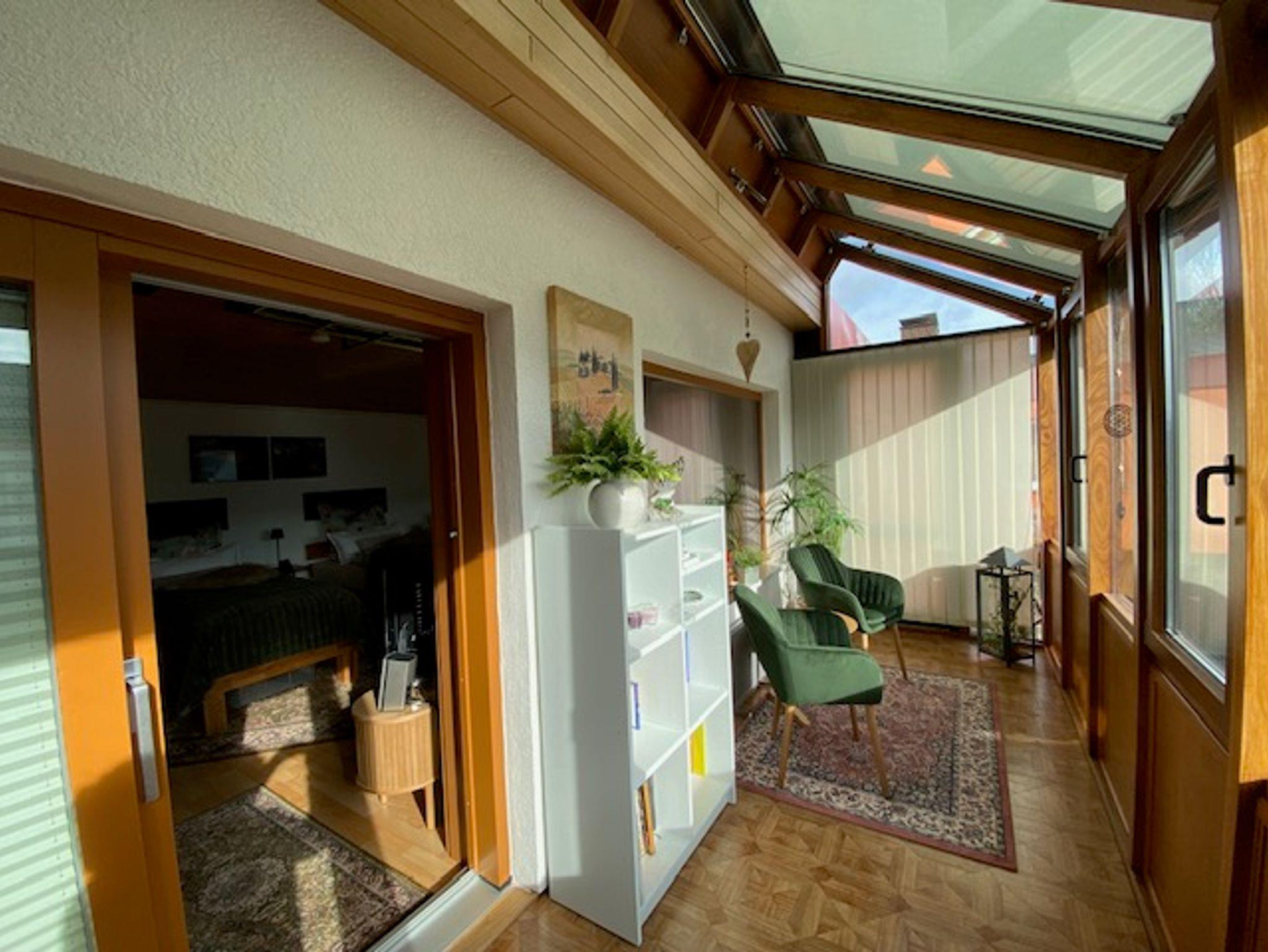 Gerne kann man bei einem Glas Wein den Abend auch im Balkon/Wintergarten gemütlich ausklingen lassen und dabei noch die Sterne beobachten. Die Beschattung erfolgt mittels einer elektrisch gesteuerten Markise