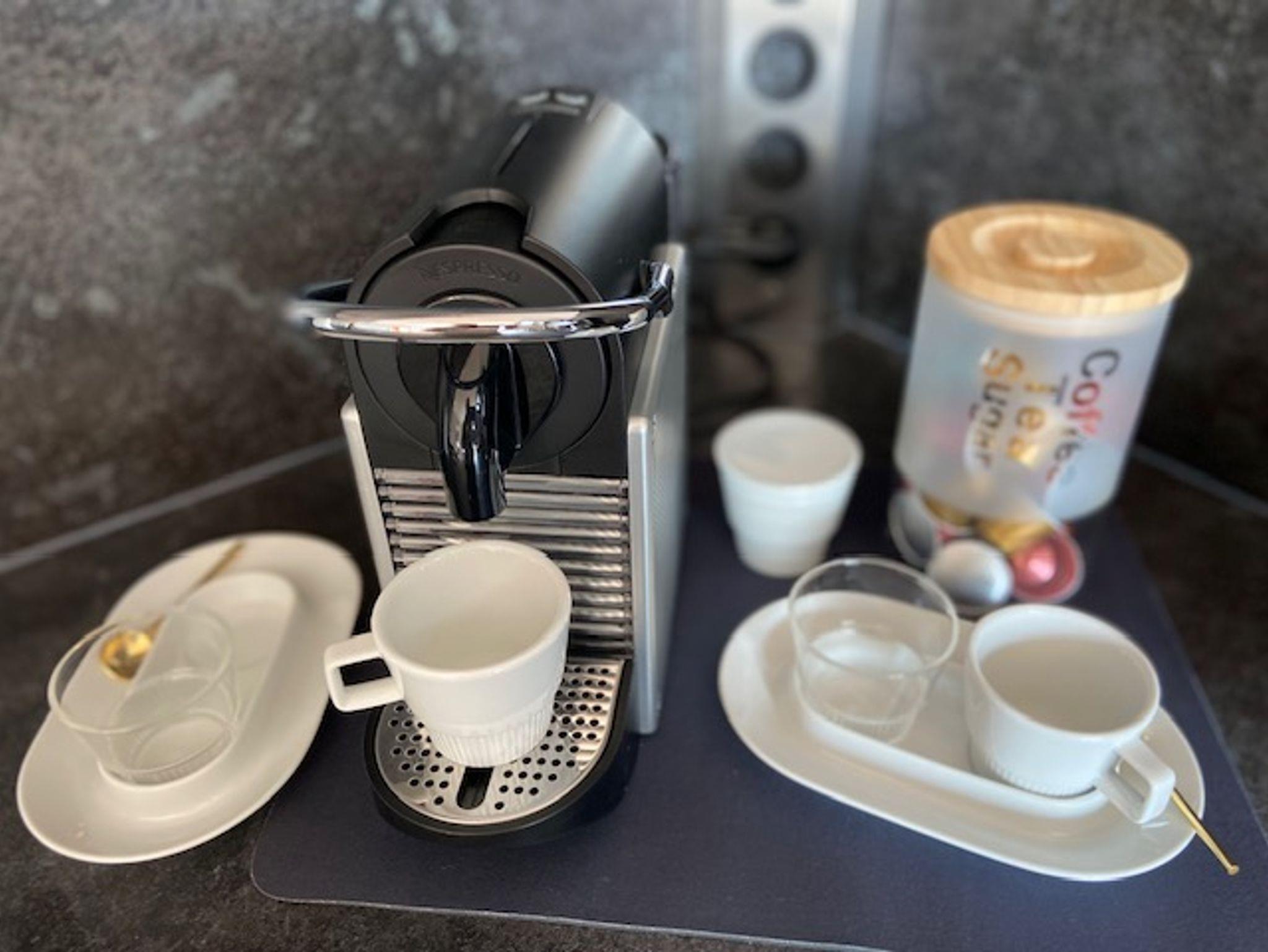 Ein Begrüßungsgetränk steht bei der Anreise bereit. Tee, Kaffee gemahlen, oder Nespresso-Kapseln sind im Preis enthalten.