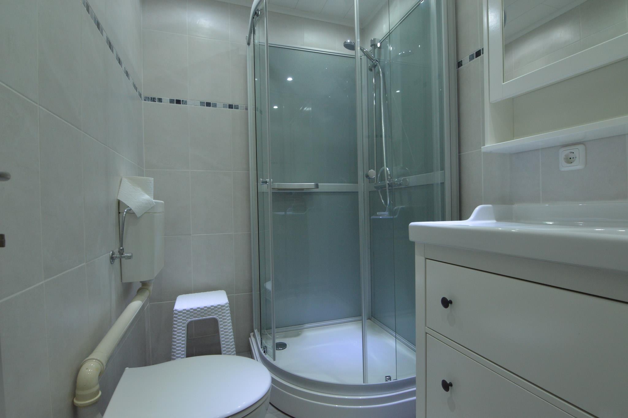 På 1. etage: (åbent køkken(komfur(Komfur med fire kogeplader), kaffemaskine, ovn, mikrobølgeovn, opvaskemaskine ), stue / spisestue(Fjernsyn, køleskab), soveværelse(dobbeltseng(160 x 200 cm), køjeseng), soveværelse(dobbeltseng(160 x 200 cm), køjeseng), soveværelse(dobbeltseng(160 x 200 cm)), soveværelse(køjeseng, køjeseng), badeværelse(bruser, håndvask, toilet), badeværelse(massagebruser, håndvask, toilet)) På 2. etage: (åbent køkken(komfur(Komfur med fire kogeplader, gas), kaffemaskine, ovn, mikrobølgeovn, køleskab), stue / spisestue(Fjernsyn)) garage, havedøre, balkon, terrasse, terrasse, terrasse(overdækket), havemøbler, parkering, parkering