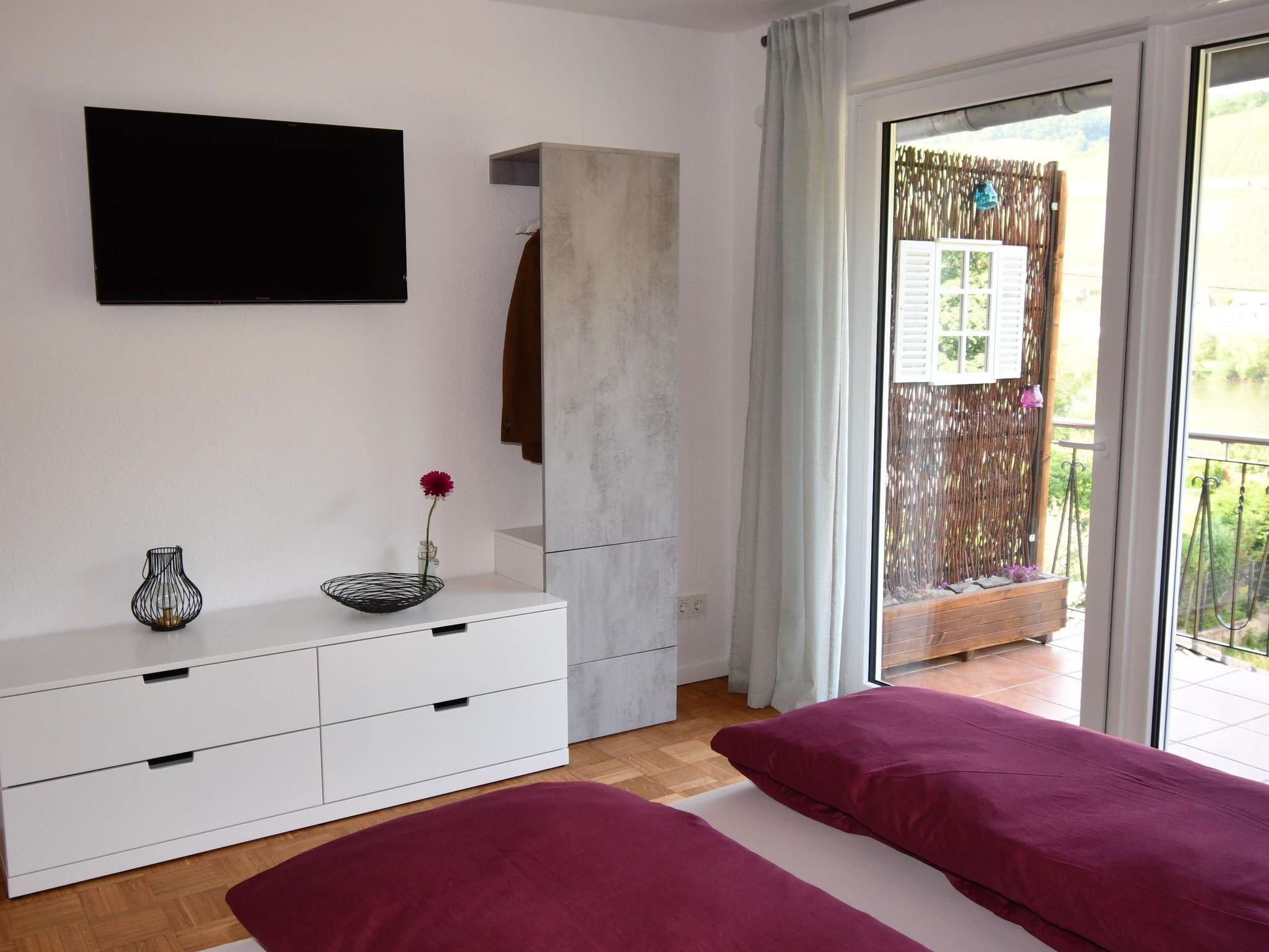 Und wenn Sie doch gerne zu viert an der Mosel Urlaub machen möchten, hätten wir noch ein Doppelzimmer mit Dusche/WC, welches Sie gerne zu dem Appartement dazu buchen können. Schreiben Sie uns, wir helfen Ihnen gerne weiter.