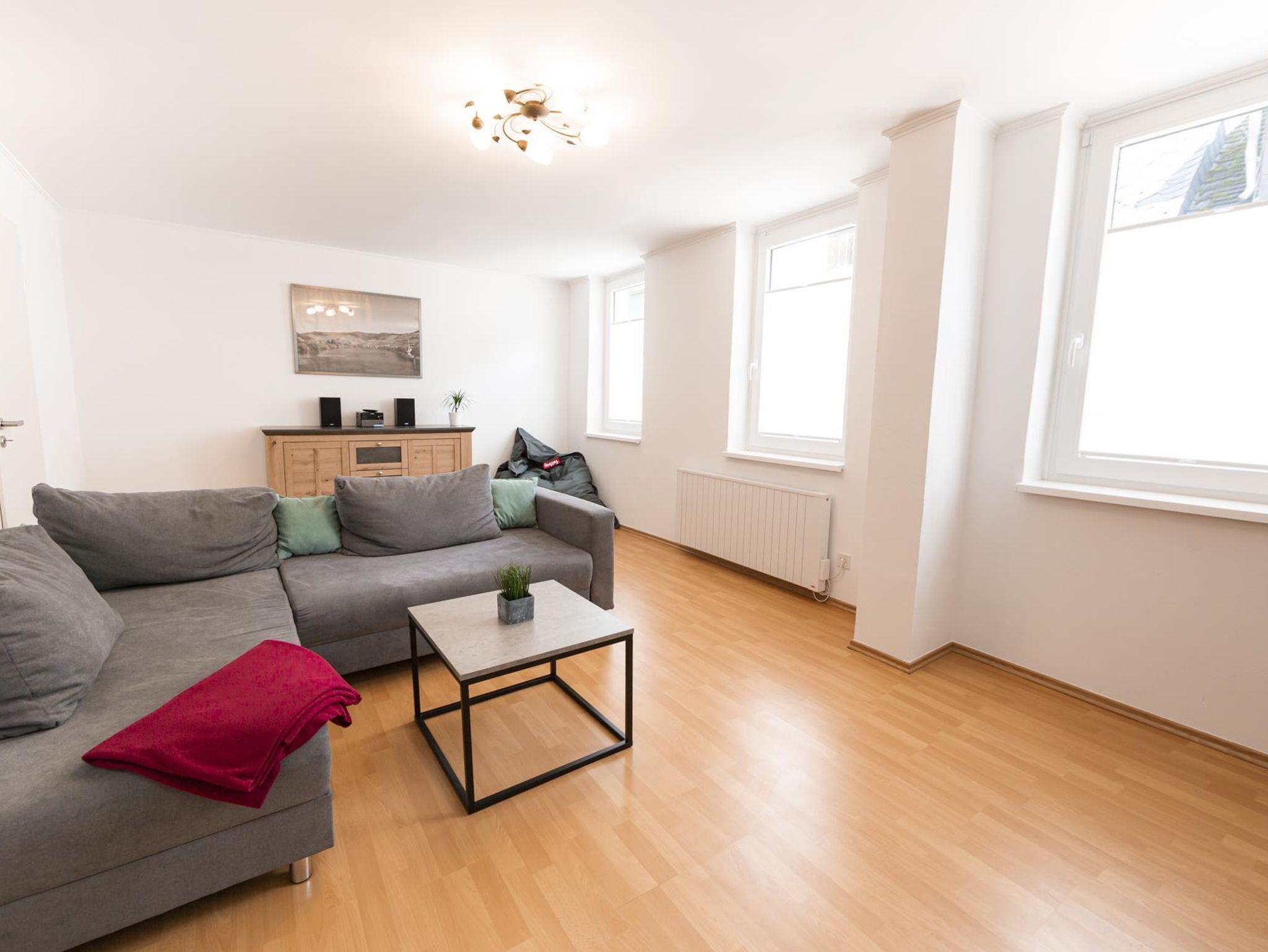 Relaxen Sie in dem geräumigen Wohnzimmer mit großem SAT-TV und Blue-Ray DVD Spieler. Eine Auswahl an Filmen, Büchern und Brettspielen ist vorhanden. Zentral im Wohnzimmer befindet sich auch der Router für den W-Lan Zugang.