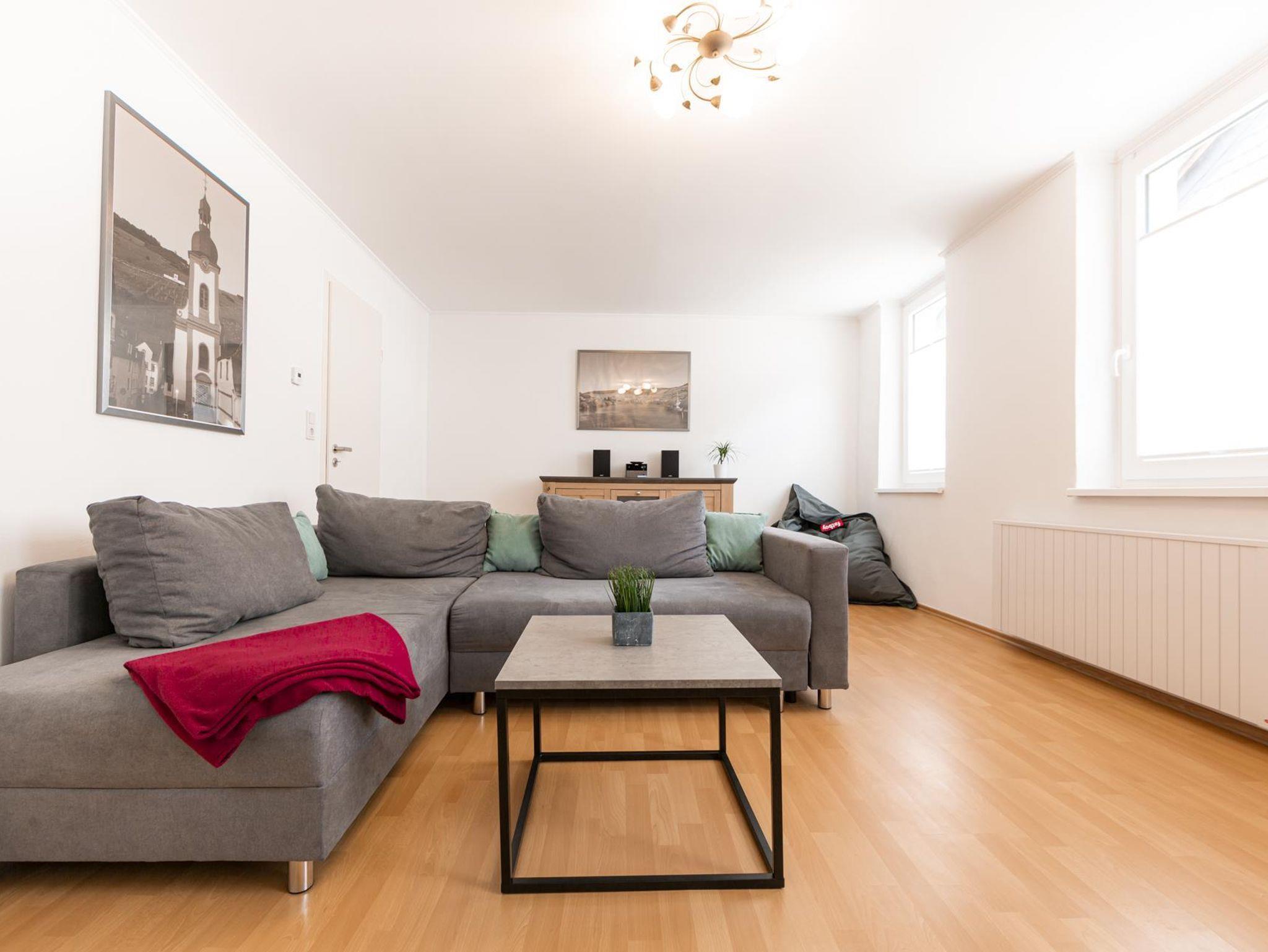 Das Haus liegt in einer ruhigen Straße am Ende der Zeller Fußgängerzone, nur wenige Schritte von der Mosel entfernt. Nicht weit entfernt erheben sich die Weinberge und das berühmte Schild der „Zeller Schwarze Katz“. Durch die einzigartige Lage ist es ein optimaler Ausgangspunkt für Spaziergänge, Wander- und Radtouren oder für einen Bummel durch die Fußgängerzone. Frische Frühstückbrötchen und Croissants sind bei dem nur wenige Meter entfernten Bäcker erhältlich.