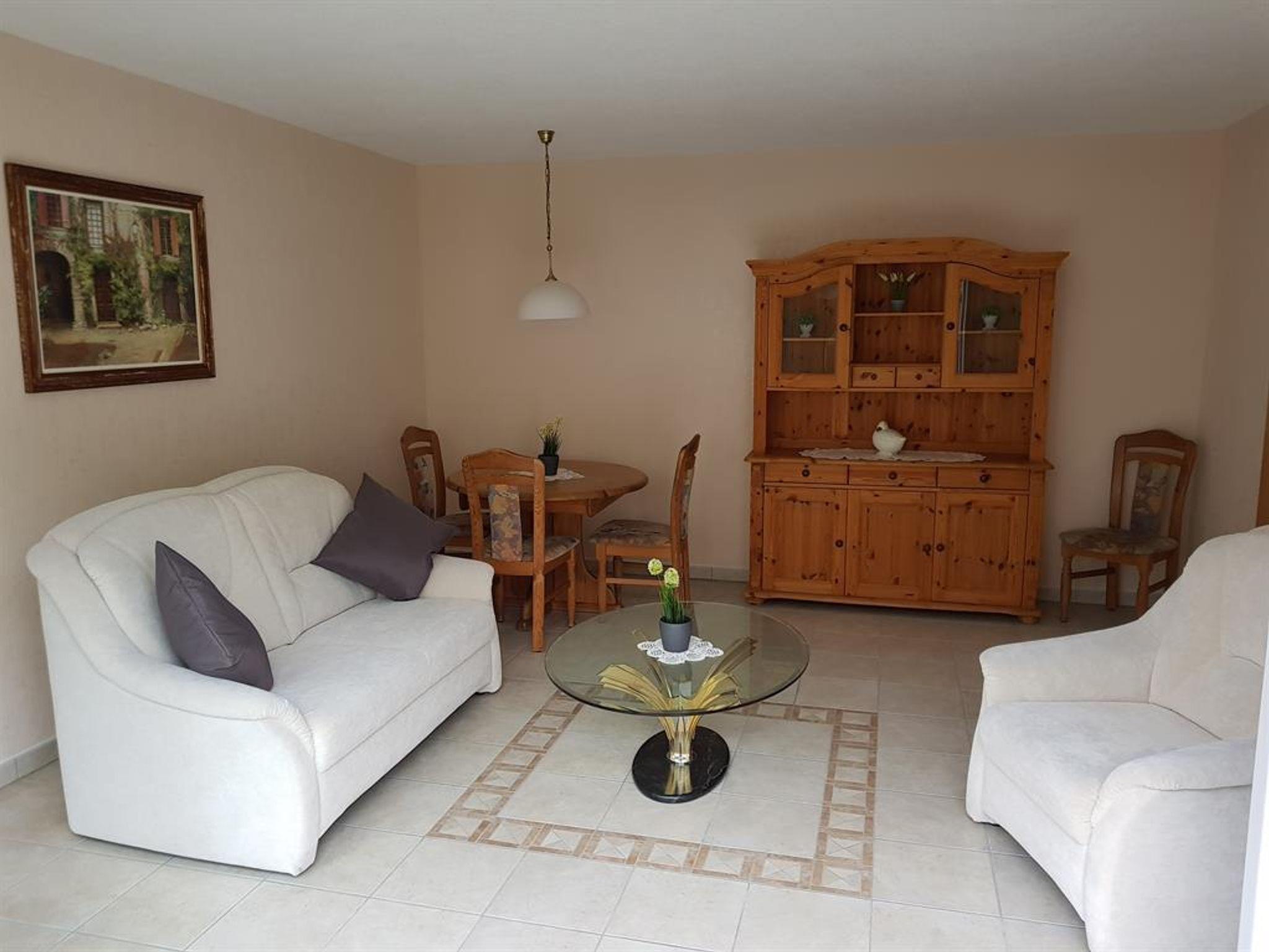Der Wohnbereich ist mit Flachbild-Sat-TV und WLAN ausgestattet.
