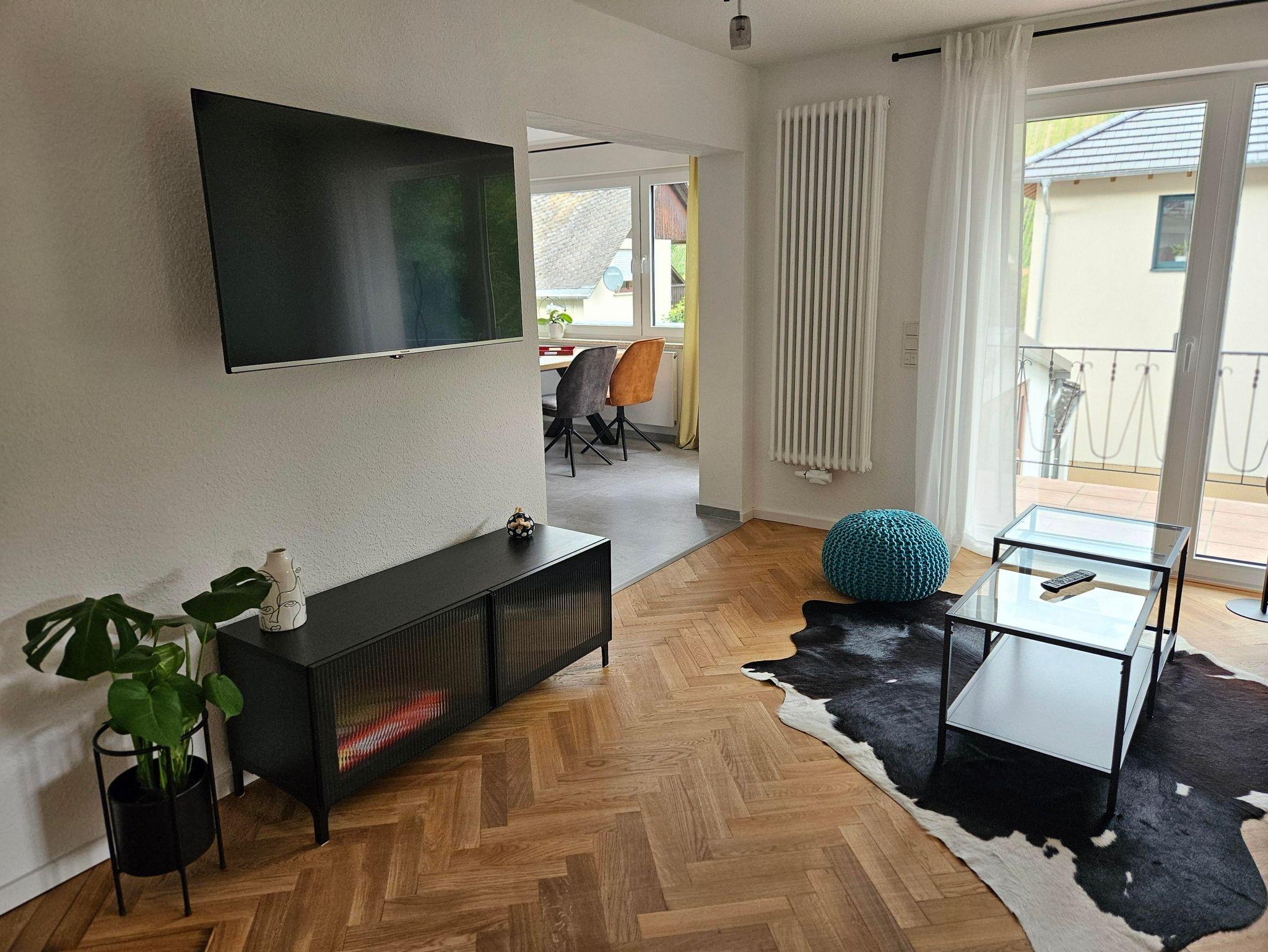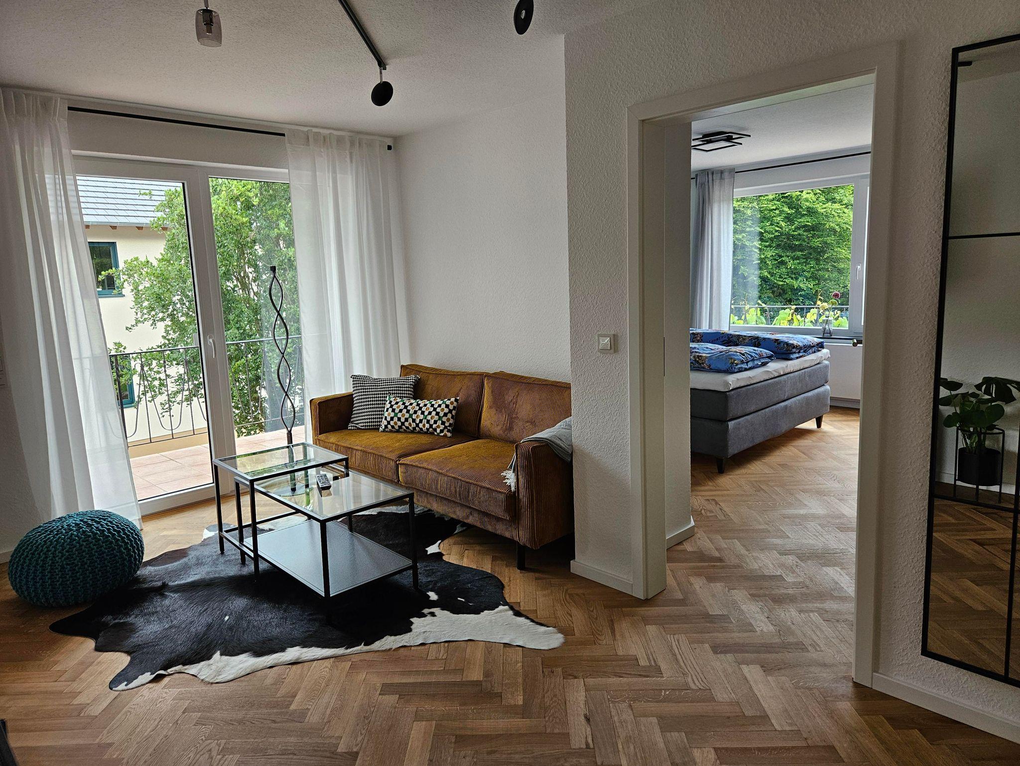 Unser größtes Appartment mit 50 m² verfügt über ein separates Schlafzimmer, ein Bad mit Dusche und WC, eine Wohnküche mit einer sehr gut ausgestatteten modernen Küchenzeile, großem Esstisch und Zugang zum Balkon. Im Wohnbereich finden Sie ein gemütliches Sofa und ein Flachbild TV. Von hier aus gelangen Sie ebenfalls zum moselseitigen, überdachten Balkon des Appartements.