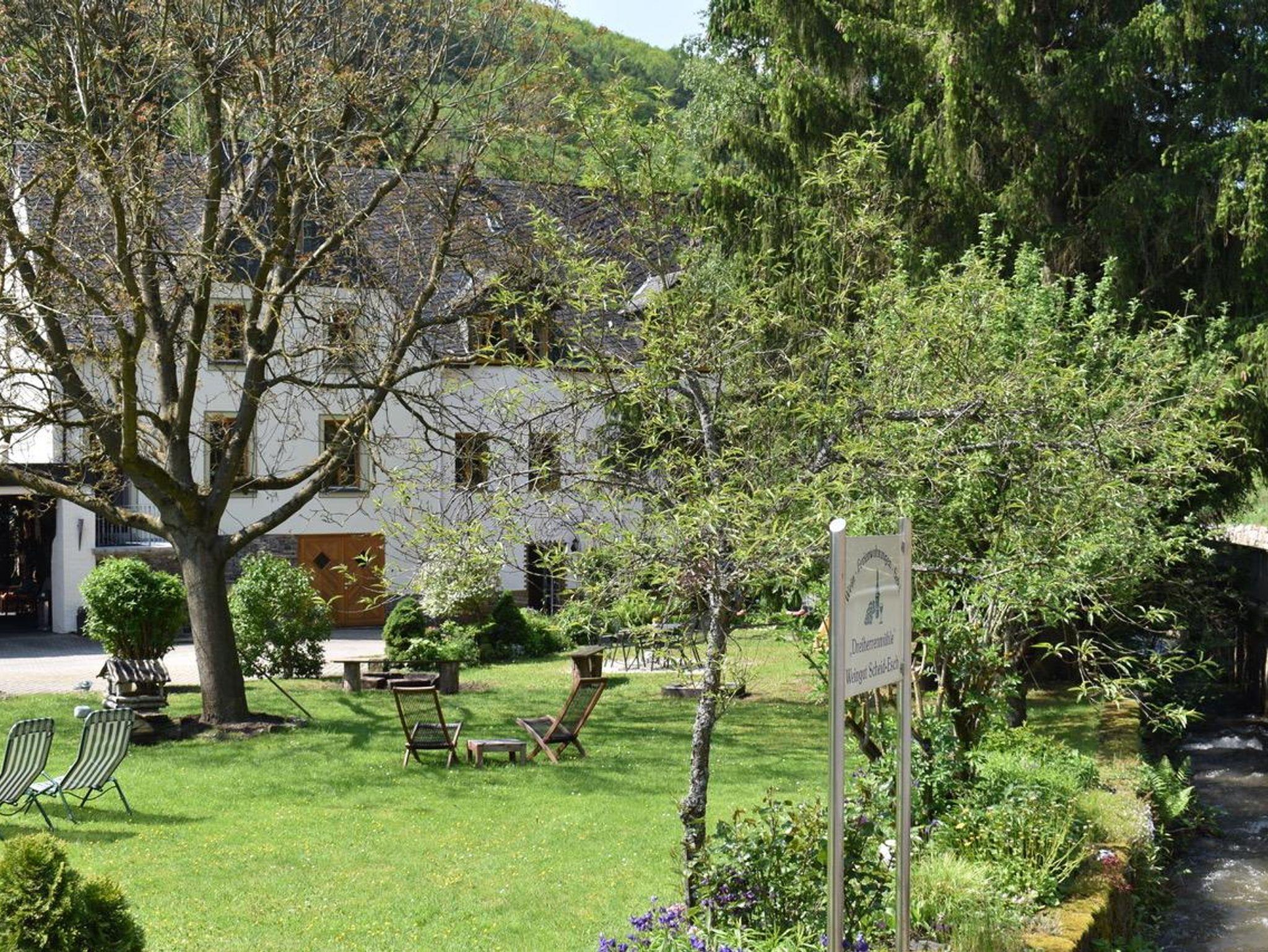 * uriger Mühlenhof mit Sitzgelegenheit