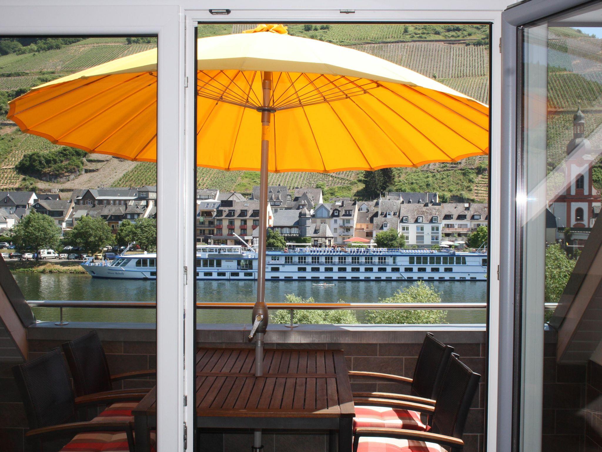 Ferienwohnungen in absolut ruhiger Lage, weit ab vom Durchgangsverkehr. Die Wohnungen sind in hellen Farben geschmackvoll ausgestattet. Sie befinden sich in einem modernen Haus in leichter Hanglage und haben eine grandiose Panoramasicht über die Mosel hin zur romantischen Stadt Zell aus dem Wohnraum oder der wunderschönen Dachterrasse bzw. Balkon.