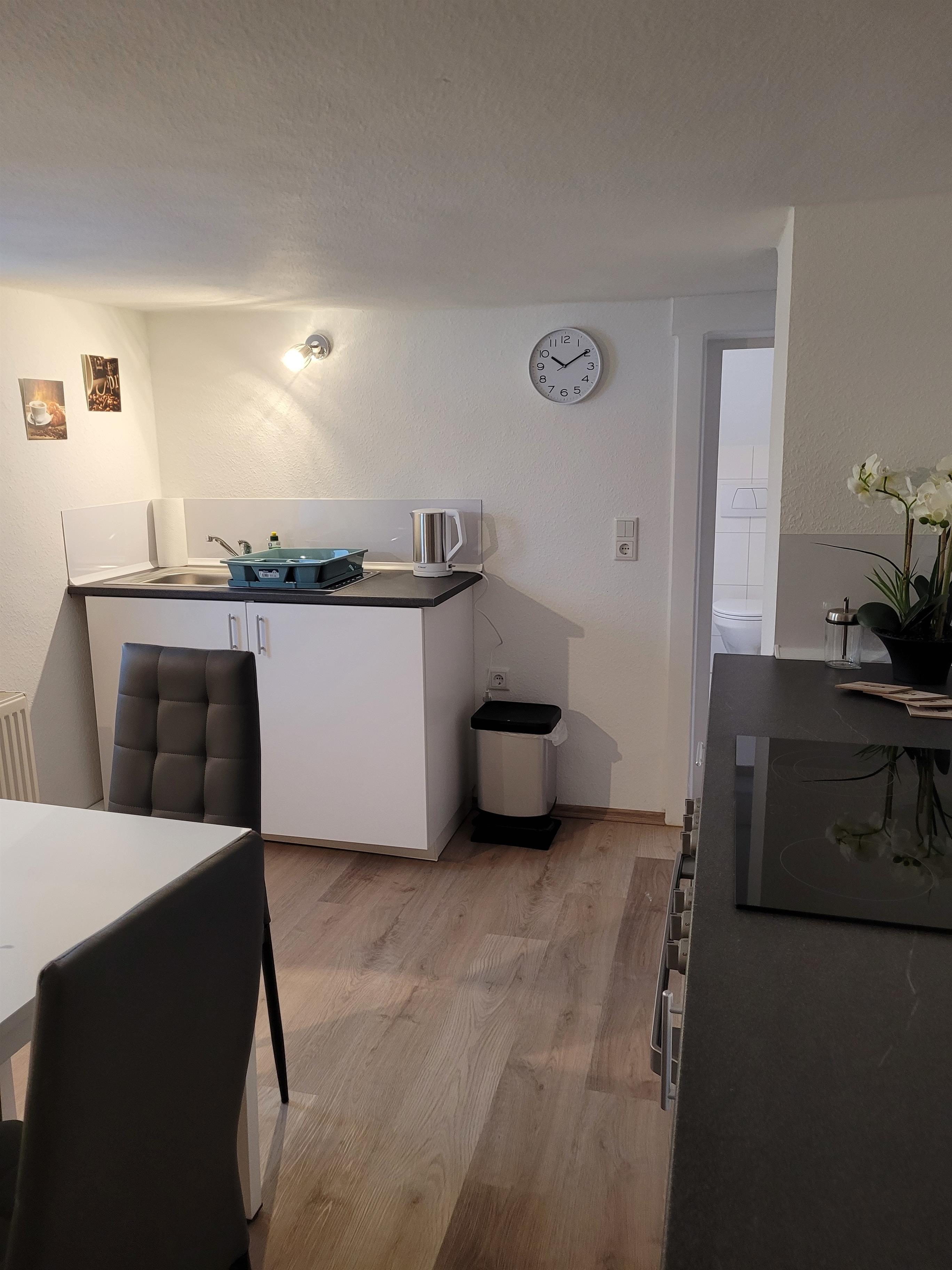 Die Ferienwohnung "Mei Auszeit" befindet sich mitten im grünen Herzen Deutschlands und bietet einen schönen Ausblick auf den Hausberg von Zella-Mehlis. Die Ferienwohnung ist eine charmante 50 qm große Altbauwohnung im Dachgeschoss und verfügt über einen Wohnraum mit Schlafsofa, ein Schlafzimmer mit Doppelbett, eine voll ausgestattete Küche mit Essbereich und ein Bad mit Dusche und Badewanne.