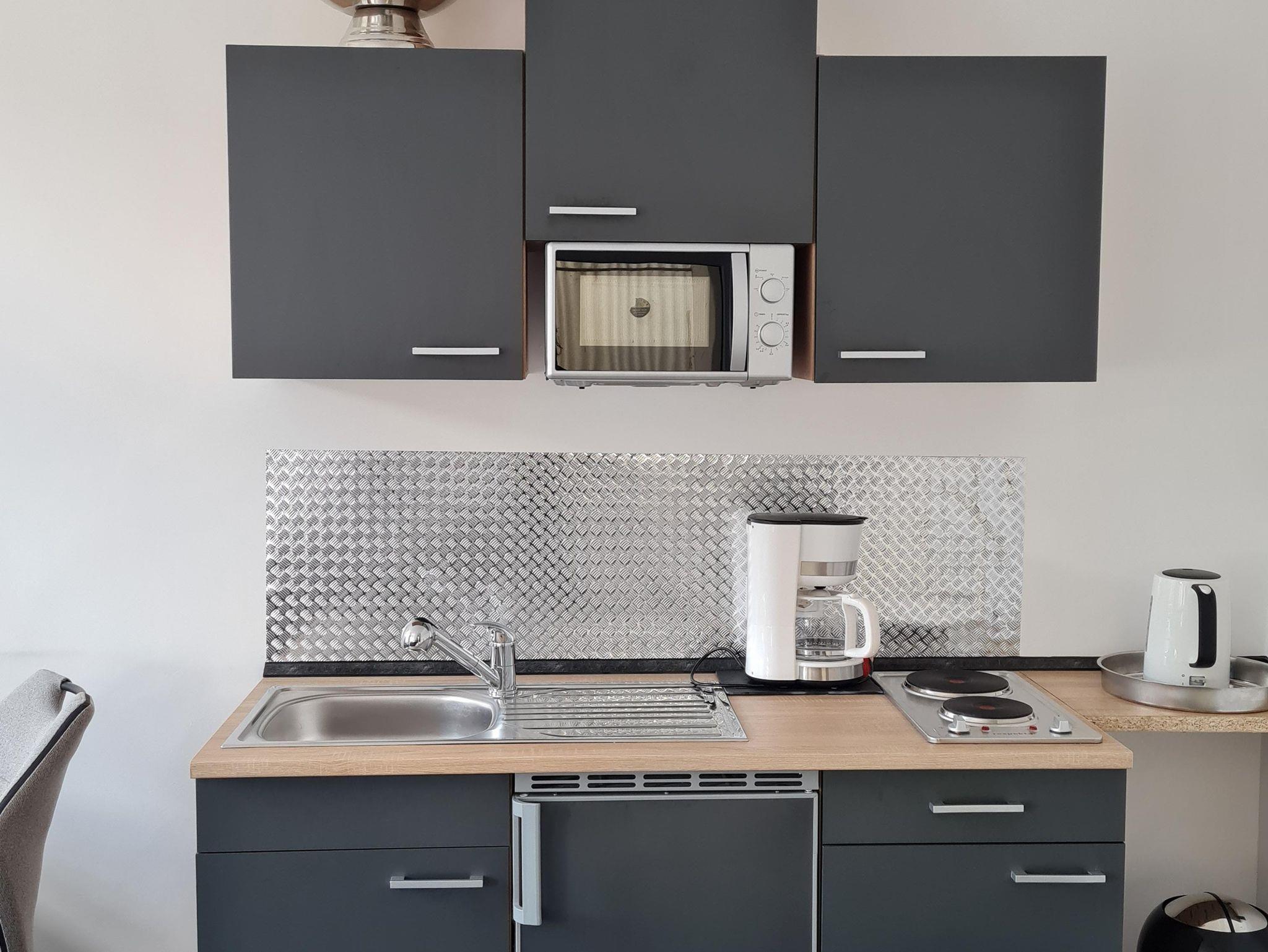 - Küche inkl. Kochfeld und Mikrowelle