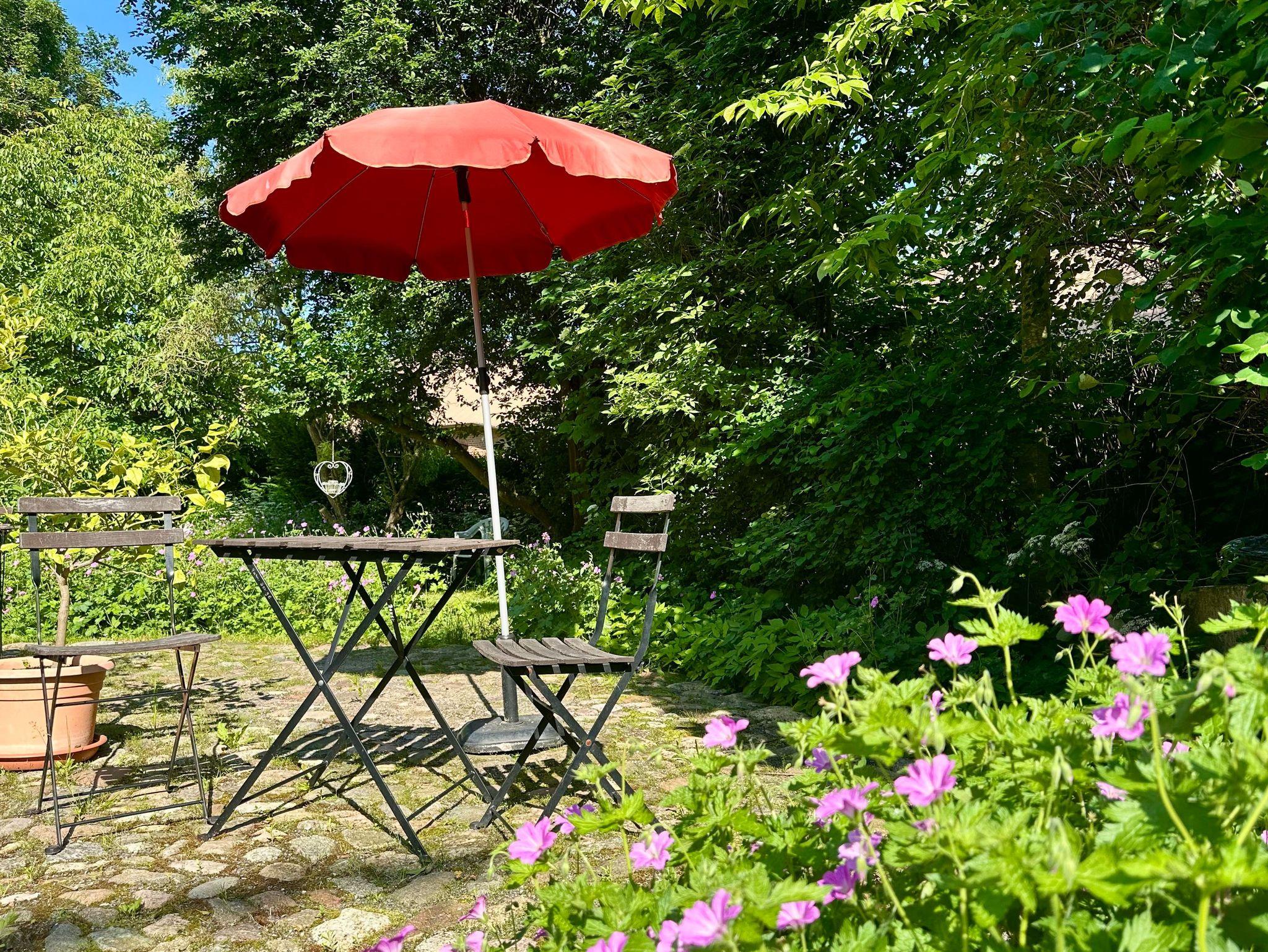 Im Außenbereich finden Sie Gartentische, Stühle, zwei Liegen und einen Grill ? perfekt für entspannte Stunden im Freien. Ein PKW-Stellplatz steht Ihnen auf dem Gelände zur Verfügung.