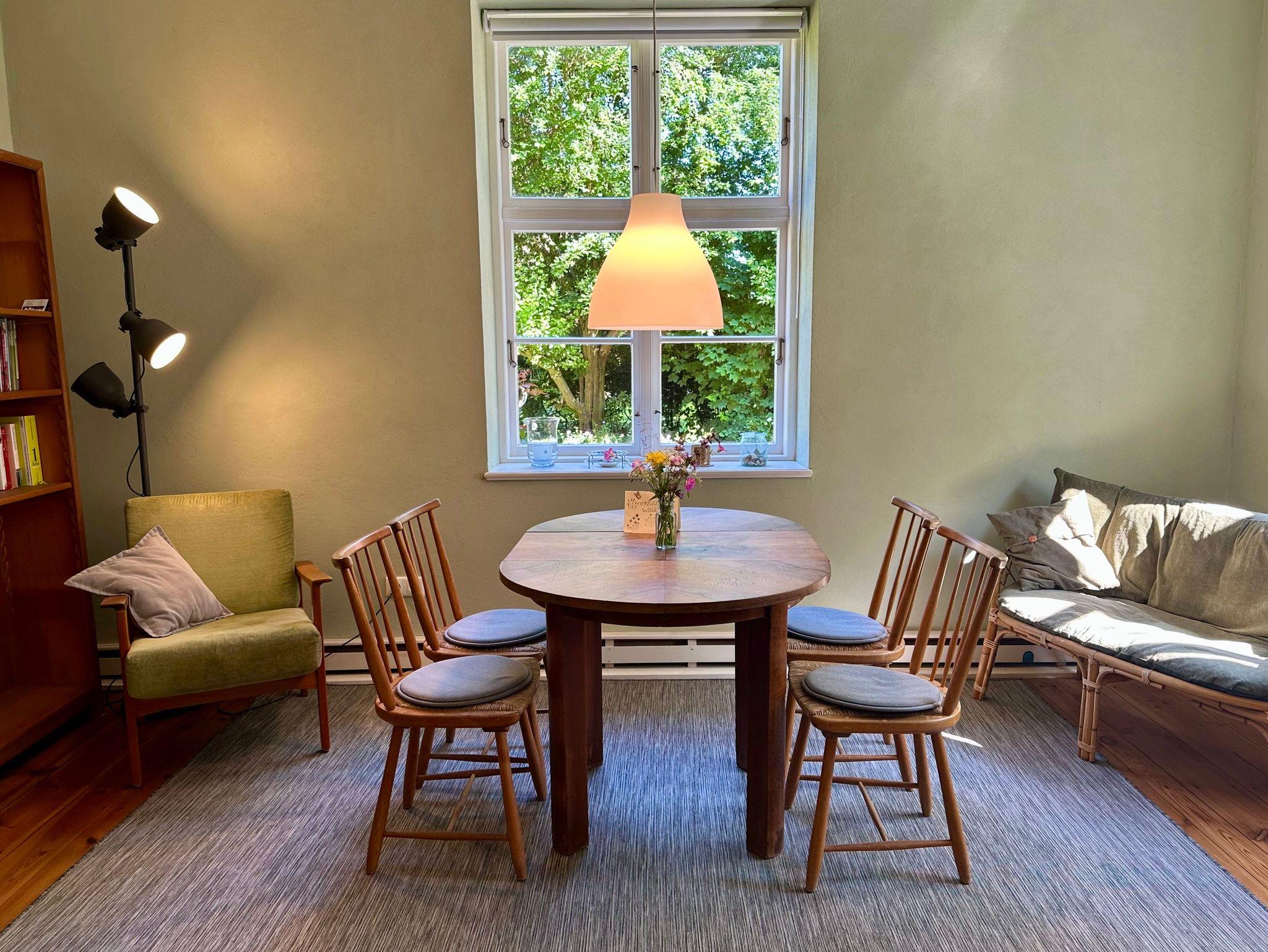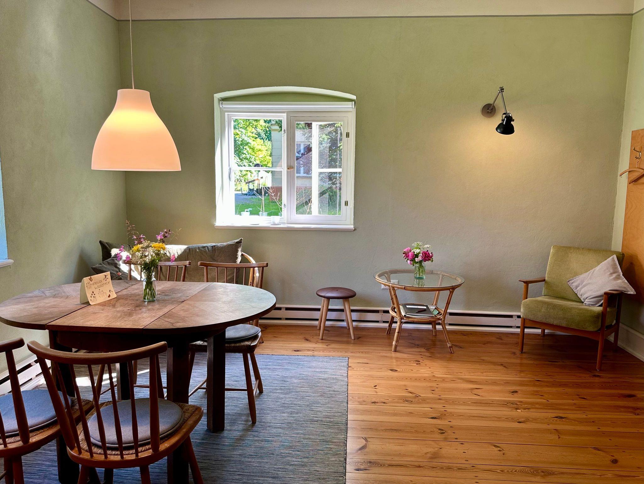 Die liebevoll eingerichtete Ferienwohnung im Erdgeschoss verbindet historischen Charme mit modernem Komfort. Natürliche Materialien und stilvolle Möbel sorgen für eine beruhigende Atmosphäre und laden zum Entspannen ein.