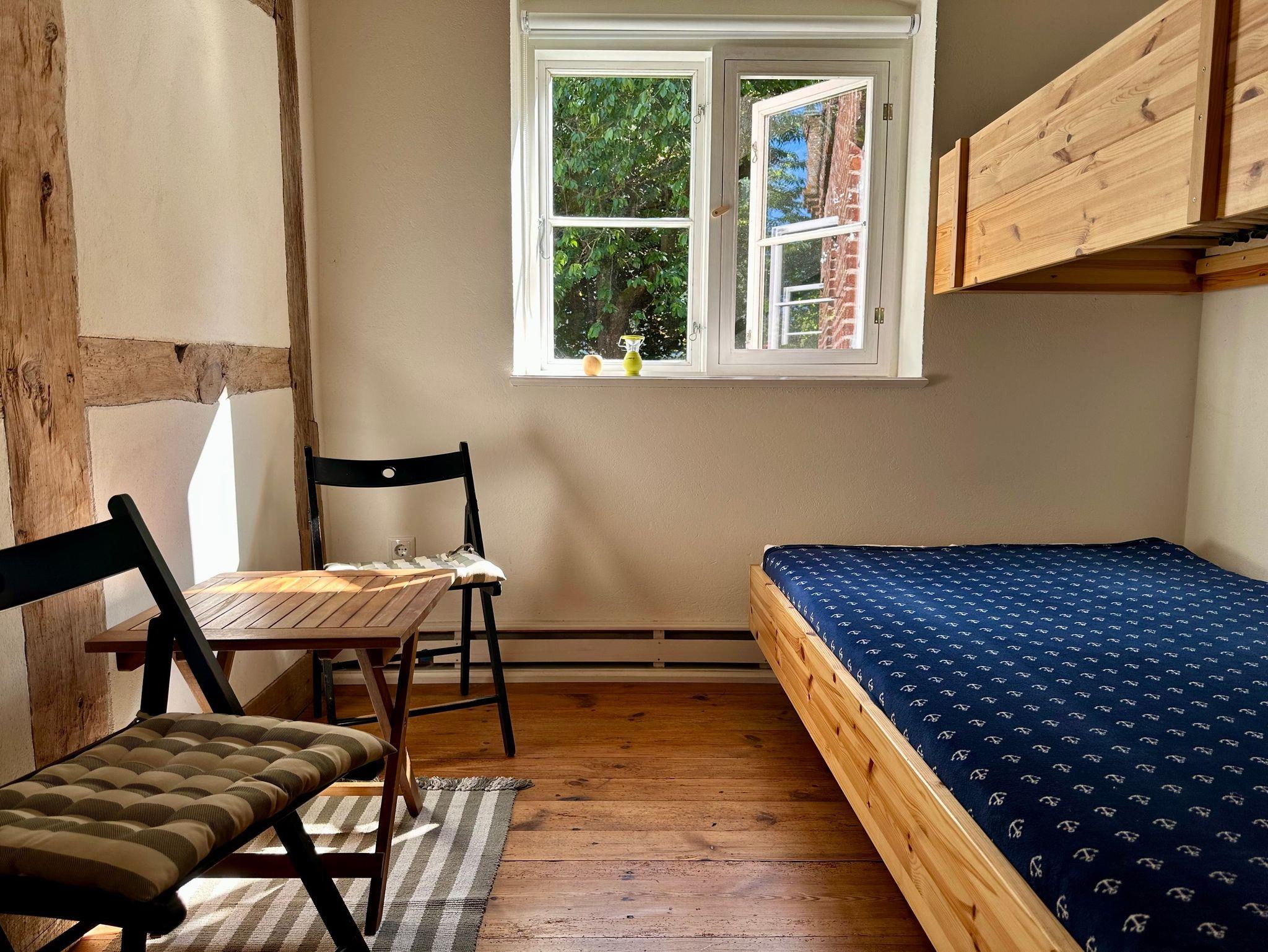 Die beiden Schlafkammern spiegeln den ursprünglichen Stil des Hauses wider: Sie sind kompakt, vollständig verdunkelbar und bieten ein Doppelbett in der einen sowie ein Etagenbett in der zweiten Kammer. Diese Räumlichkeiten erinnern an den traditionellen Charakter des Gebäudes.