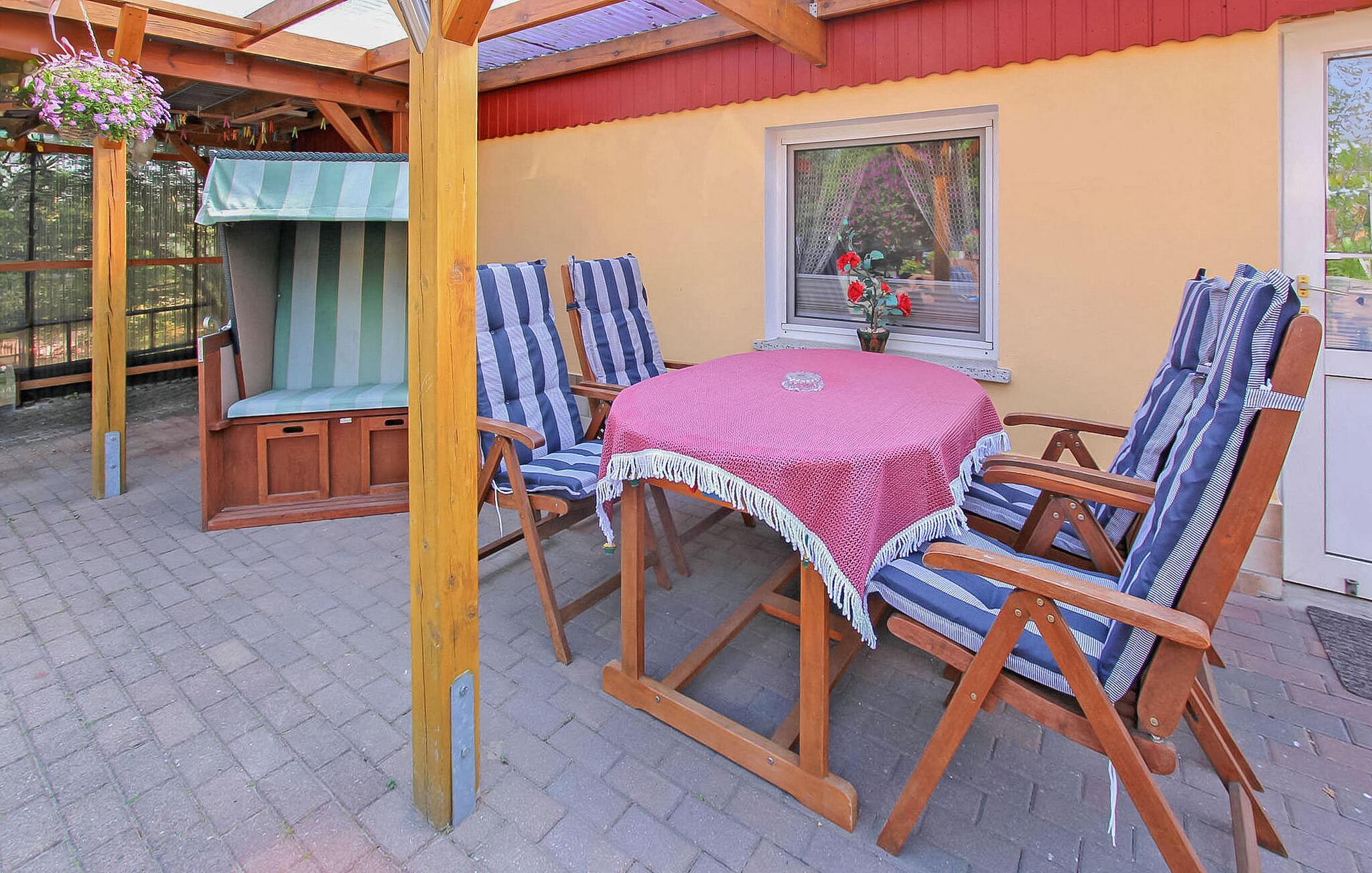 Sommerhuset, som blev totalmoderniseret i 2018, ligger separat på ejerens 1000 kvadratmeter store boligejendom centralt mellem Østersøen og Achterwasser. Østersøstranden ligger omkring 750 m væk. Den er udstyret med en stue (polstrede møbler, fladskærms-tv, radio, spiseplads), et soveværelse (2 polstrede liggestole, der kan sættes sammen), et køkken (elektrisk kogeplade, køleskab med fryser, opvaskemaskine og mikroovn) samt bad/WC og centralvarme. Der er WiFi, stor overdækket terrasse med havemøbler, strandstol, liggestole og (elektrisk) grill, carport og opbevaringsplads til medbragte cykler. Den samlede pris inkluderer sengelinned, vand- og energiforbrug samt slutrengøring. Badebyen Zempin er underlagt turistskat. Håndklæder skal medbringes. Bernsteinbad Zempin er en af de smukke badebyer på øen Usedom, der ligger på et smalt næs mellem Østersøen og Achterwasser. Bred sandstrand (også hundestrand og nudist), naturlig havn ved Achterwasser, cykelstier, forskellige restauranter, shopping, cykel- og strandstoleudlejning i byen. Fra Zempin togstation kan du nemt nå de andre badebyer på øen hvert 30. minut.
