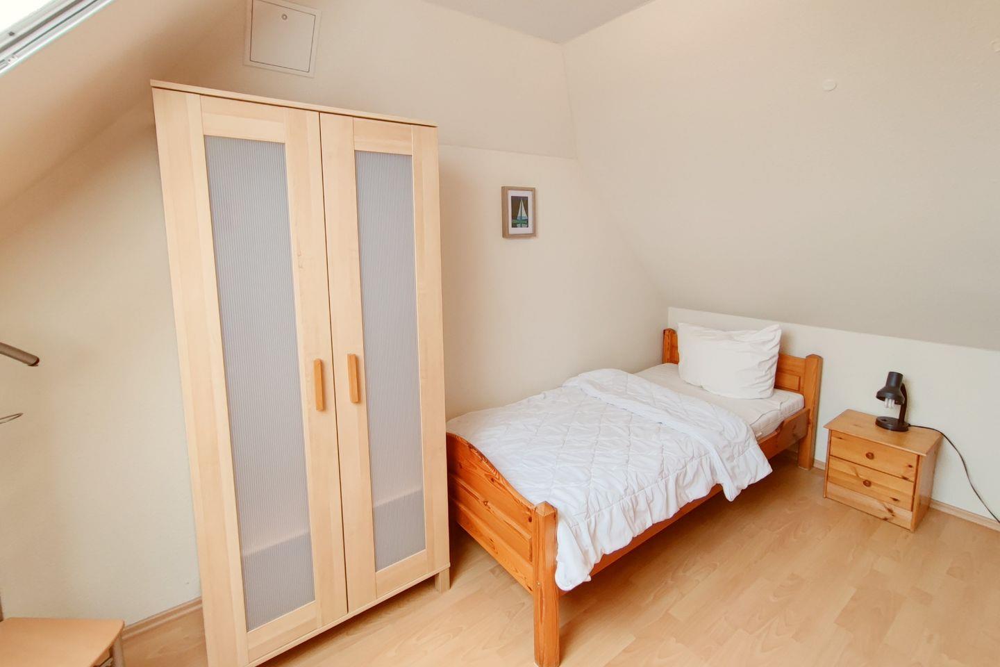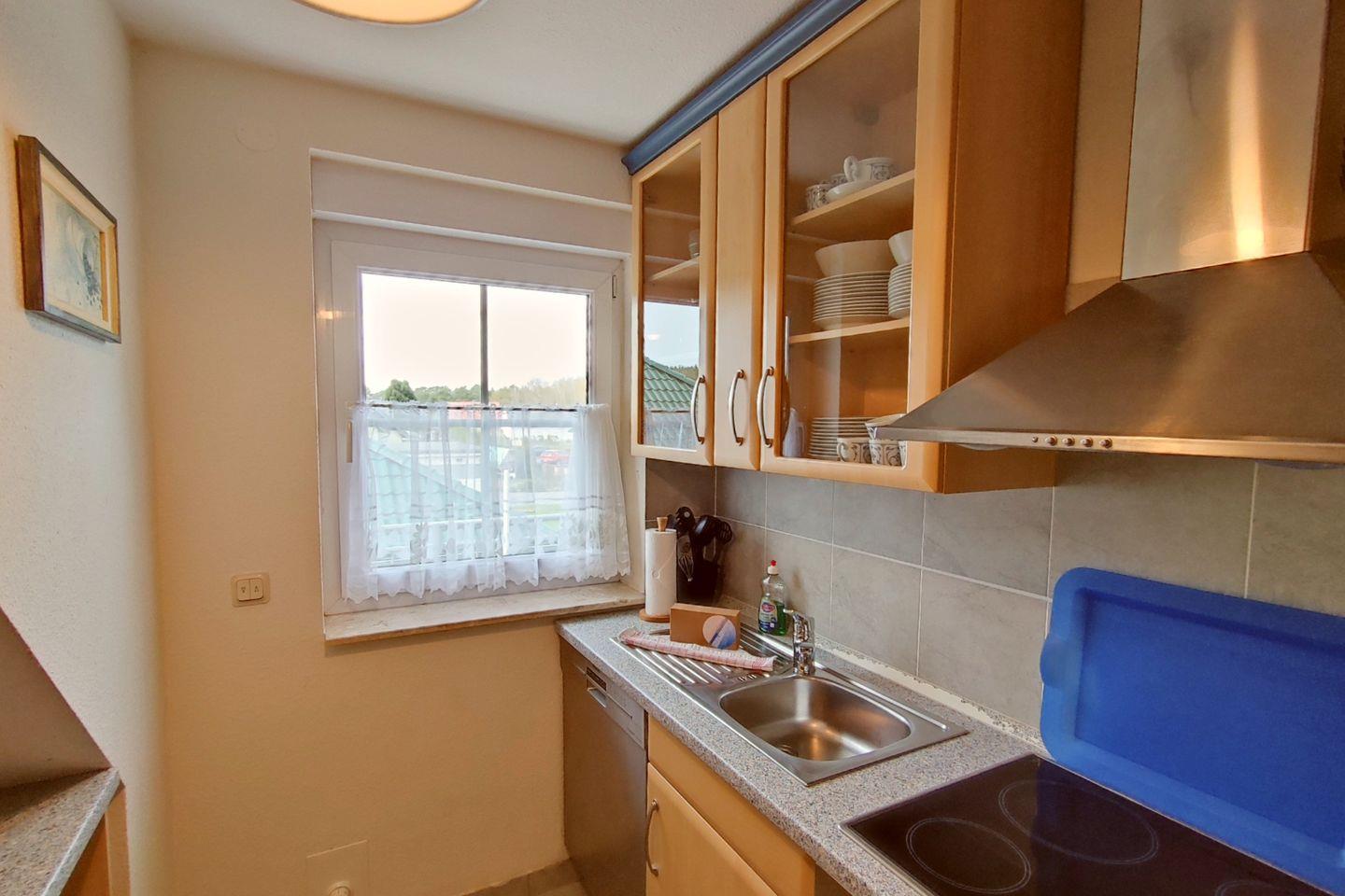 Die gut durchdachte Raumaufteilung ermöglicht Schlafmöglichkeiten für bis zu fünf Personen, mit zwei gemütlichen Schlafzimmern, die für erholsame Nächte sorgen. Im ersten Stock befindet sich der offene Wohnbereich mit einer Sofaecke, in der Sie nach einem ereignisreichen Tag am Strand entspannen können. Der Essbereich bietet Platz für gesellige Mahlzeiten und verfügt über eine moderne, geschlossene Küche, die mit allem Notwendigen ausgestattet ist – von Herd und Backofen bis hin zur Spülmaschine und Mikrowelle, hier ist nichts dem Zufall überlassen.