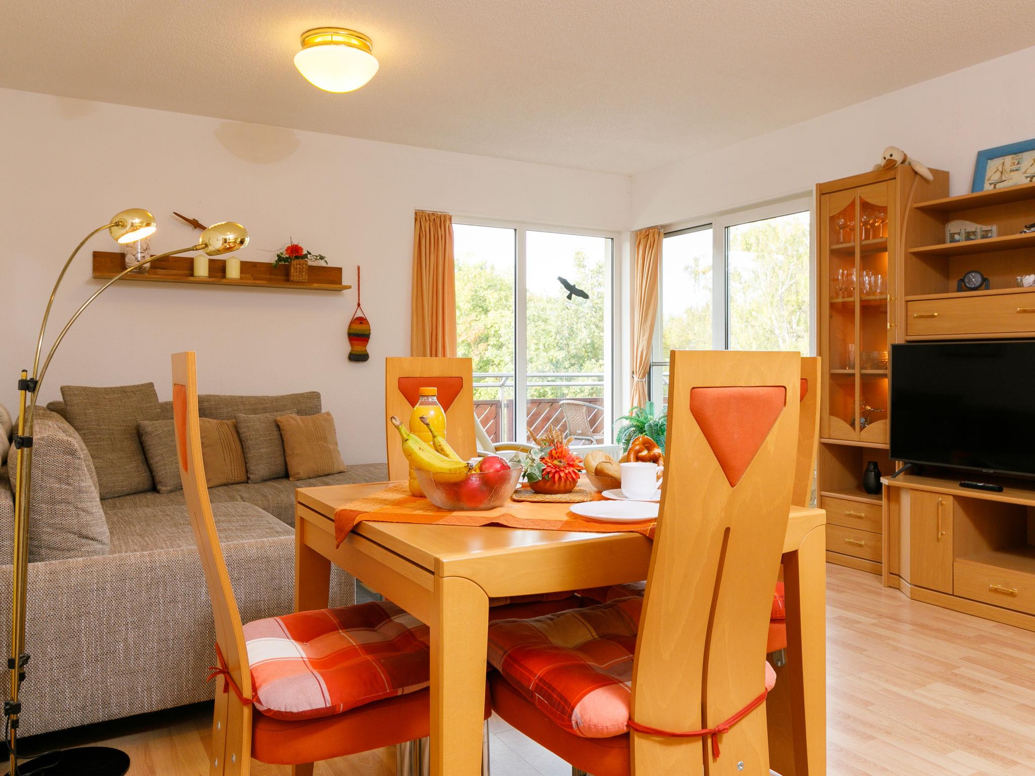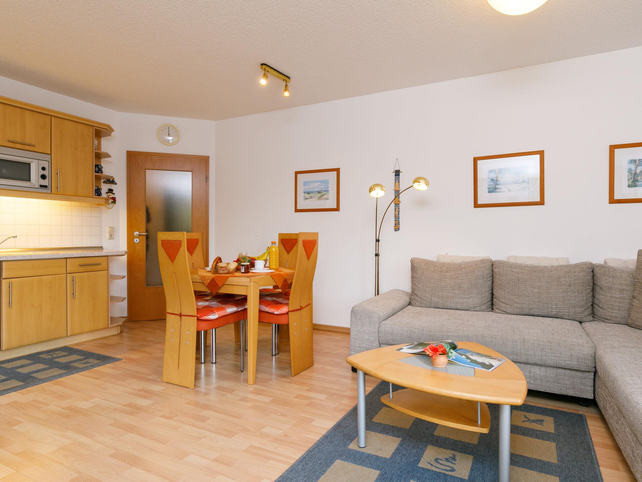 "App.18 Düneneck", 2-room apartment 58 m2 on 1st floor. Cosy furnishings: living/dining room with 1 double sofabed and cable TV (flat screen), radio. Exit to the balcony. 1 room with 1 double bed and cable TV. Kitchenette (4 hot plates, oven, dishwasher, toaster, kettle, microwave, electric coffee machine). Shower/WC. Balcony. Balcony furniture. Side view of the sea. Facilities: children's high chair, baby cot. Internet (WiFi, free). Parking (1 car) at the house. Please note: non-smokers only. Maximum 1 small pet/ dog allowed. Smoke alarm.