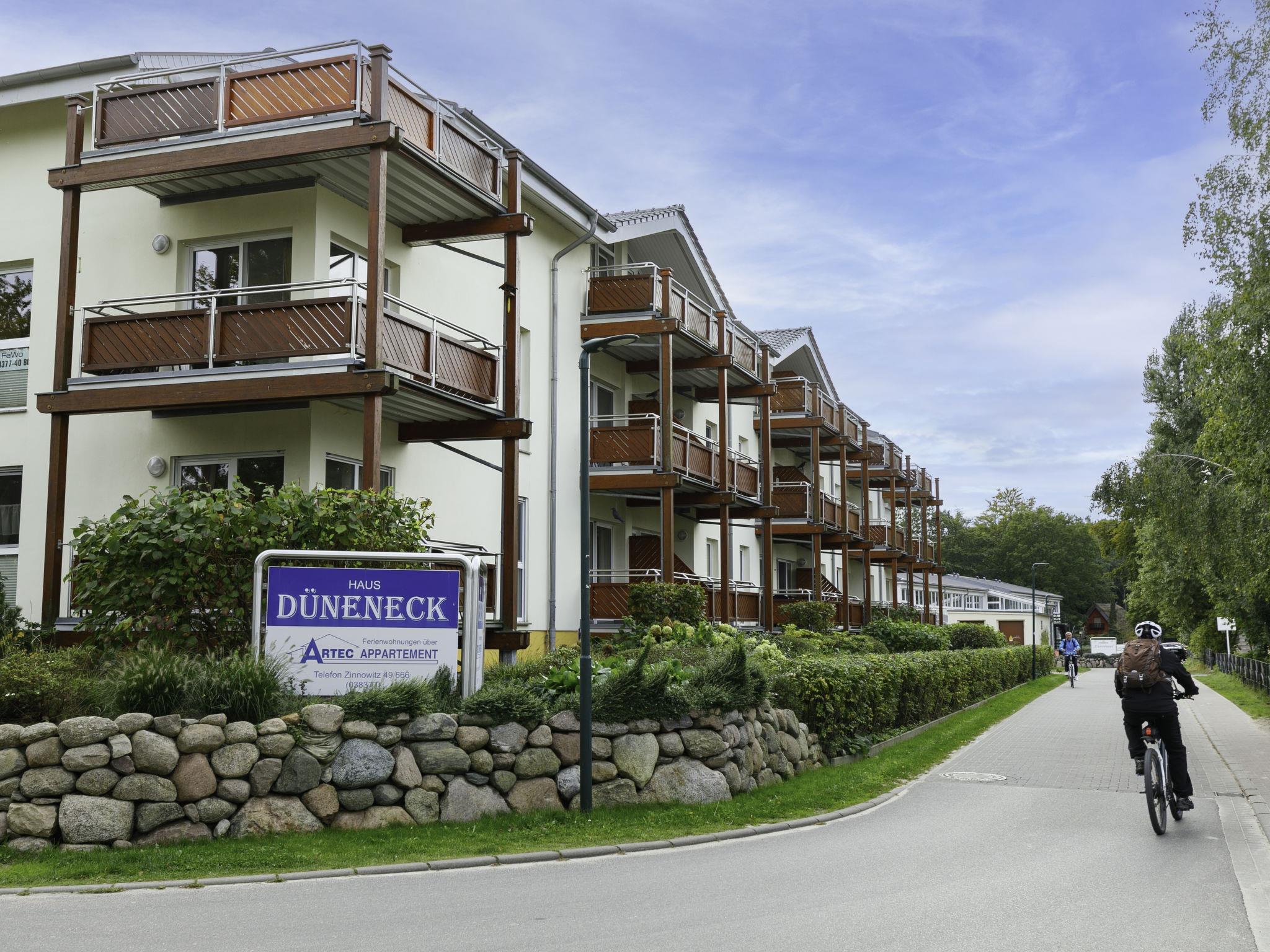 Apartment block "Düneneck", 3 storeys. In the resort 750 m from the centre of Zempin, 50 m from the sea, 50 m from the beach. In the house: storage room for bicycles, central heating system, washing machine (extra) (for shared use). Parking on the premises. Supermarket 4 km, restaurant 30 m, bakery, café 500 m, bus stop 550 m, railway station 600 m, sandy beach 50 m, thermal baths "Bernsteintherme" 4 km. Golf course (18 hole) 21 km, surf school 3.9 km, tennis 3.7 km, minigolf 3.8 km.