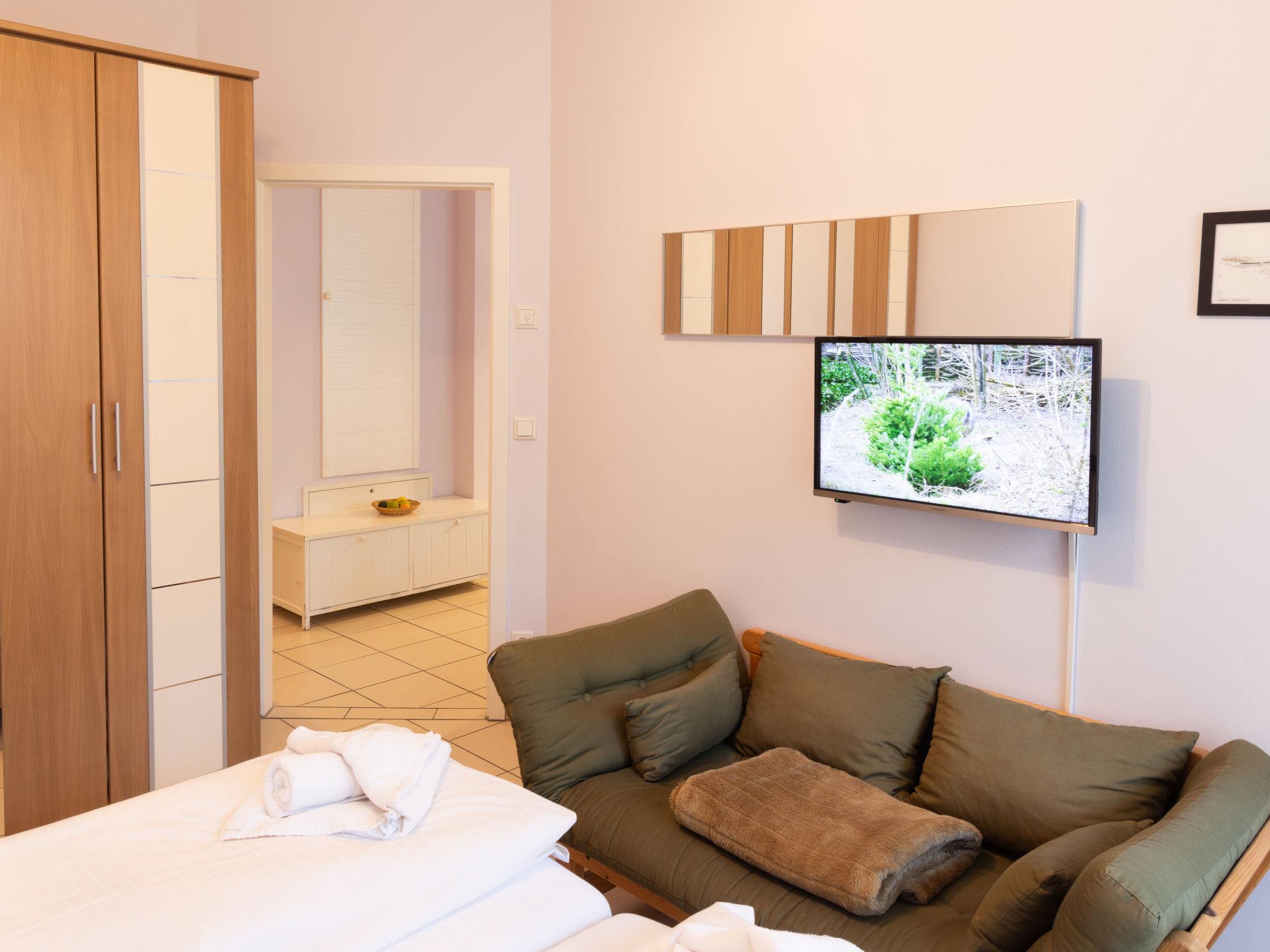 Apartment block "Südwind", 4 storeys. In the resort 750 m from the centre of Zempin, 300 m from the sea, 300 m from the beach. For shared use: indoor pool. Shower/WC in the pool area. In the house: sauna, steam room, relaxation room, central heating system. Parking on the premises. Supermarket 4 km, restaurant 700 m, bakery, café 500 m, bus stop, railway station 600 m, sandy beach 300 m, thermal baths "Bernsteintherme" 4.3 km. Golf course (18 hole) 21 km, surf school 4.2 km, tennis 3.9 km, minigolf 4 km.
