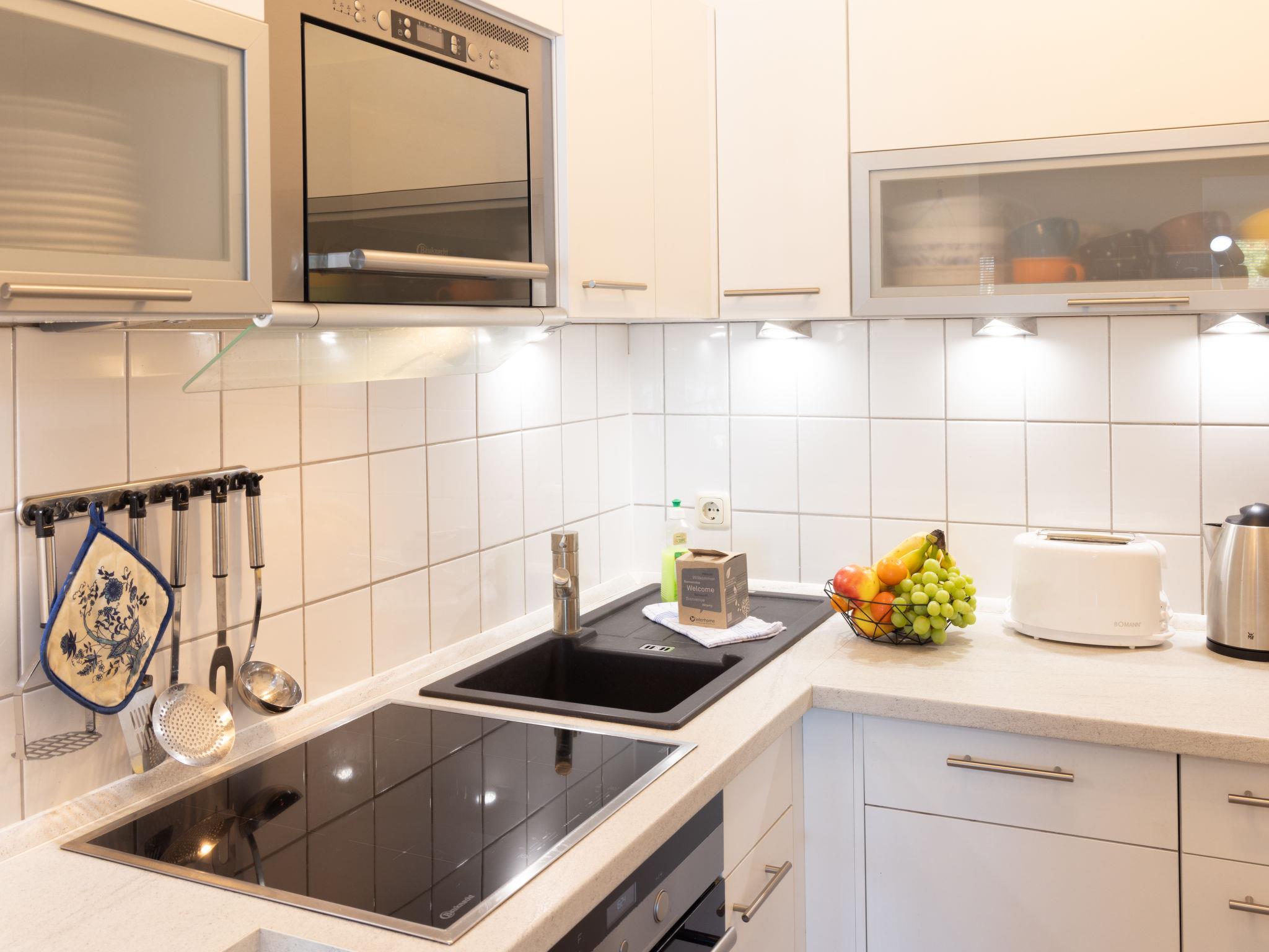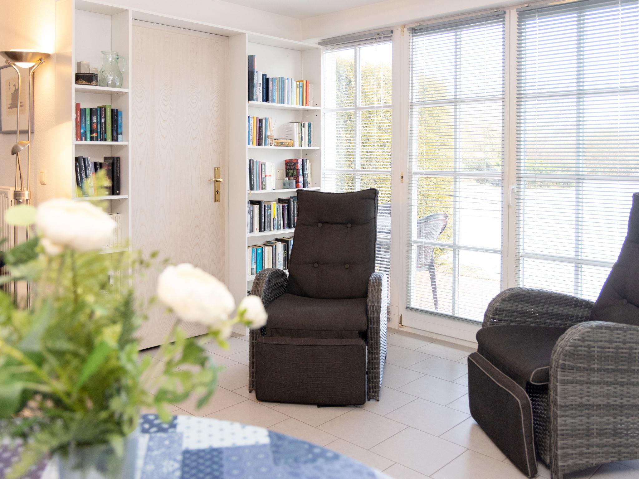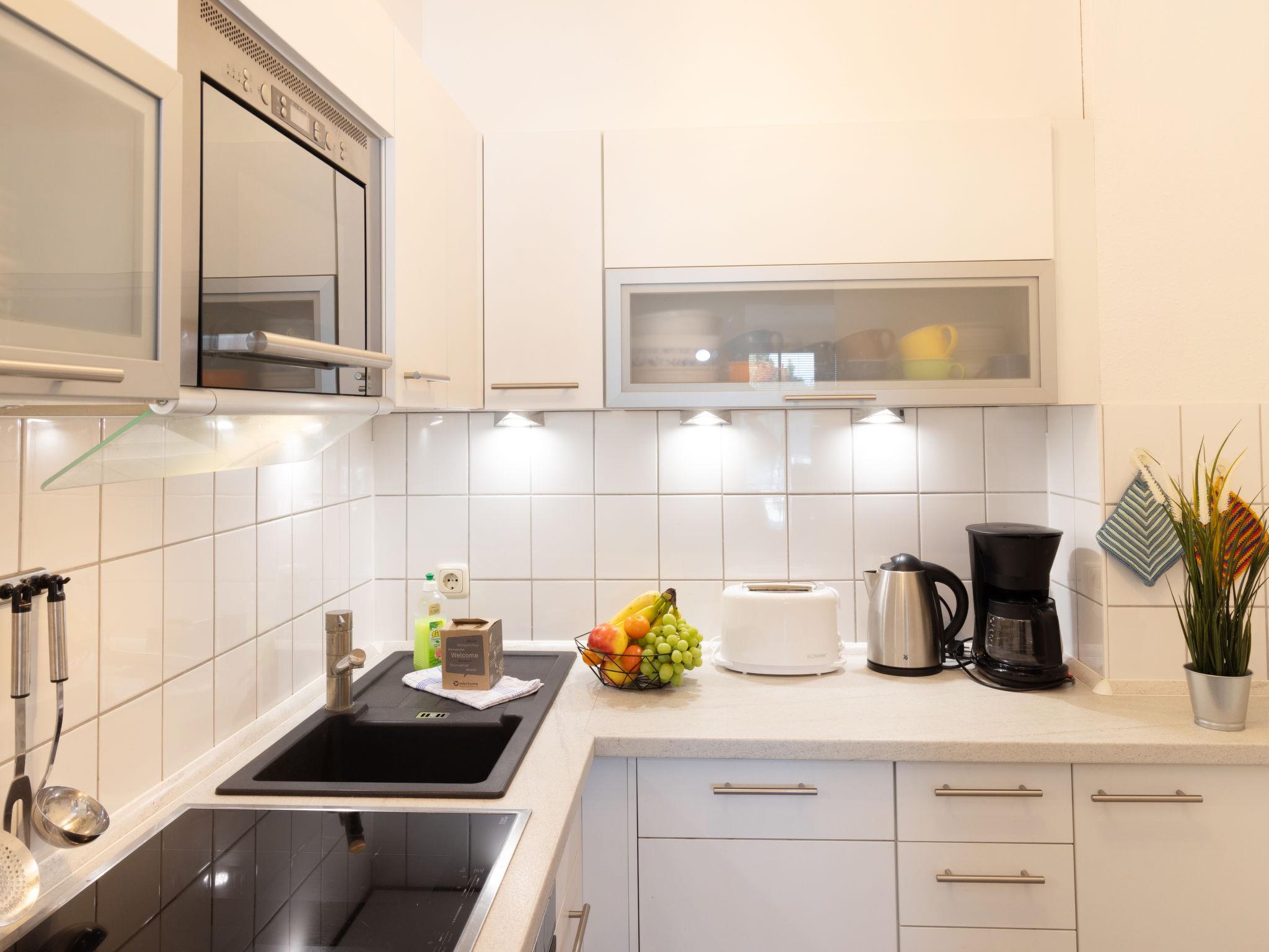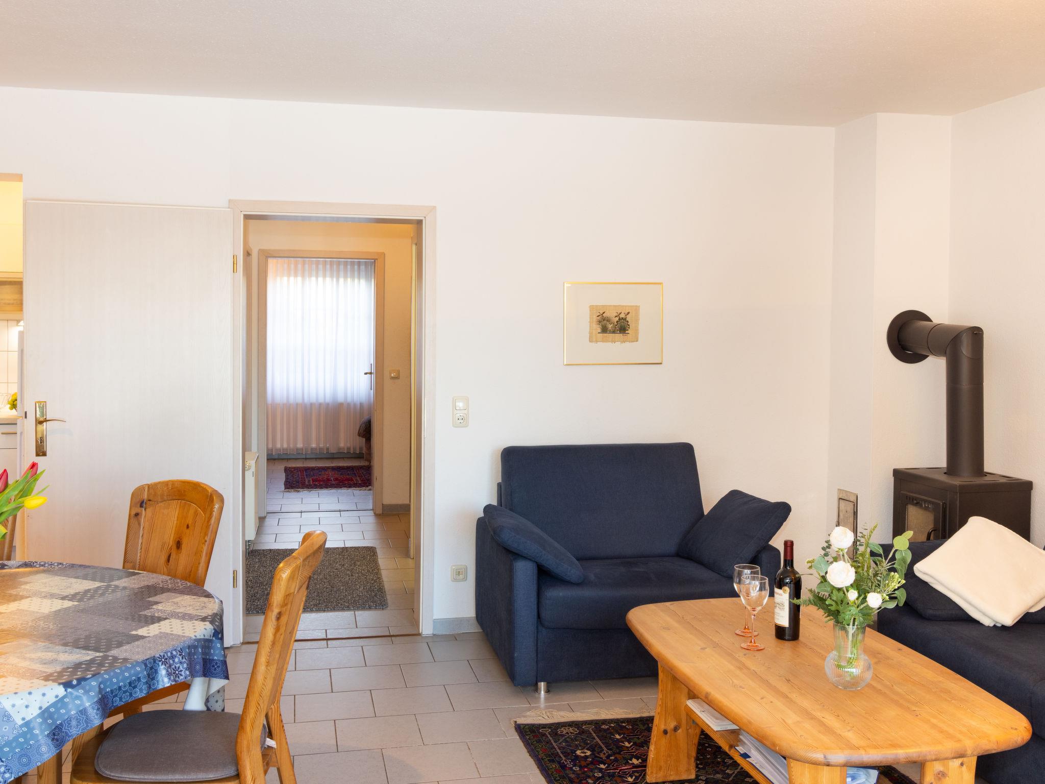 "Achterwasser App. 5", 2-room apartment 60 m2, on the ground floor. Cosy furnishings: living/dining room with 1 double sofabed, Scandinavian wood stove and cable TV (flat screen), radio. Exit to the terrace. 1 room with 1 double bed. Open kitchen (oven, dishwasher, 4 ceramic glass hob hotplates, toaster, kettle, microwave, electric coffee machine). Shower/WC. Terrace. Terrace furniture. Facilities: children's high chair, baby cot, logs (extra). Parking (1 car) at the house. Please note: non-smokers only. Maximum 1 pet/ dog allowed. Smoke alarm.