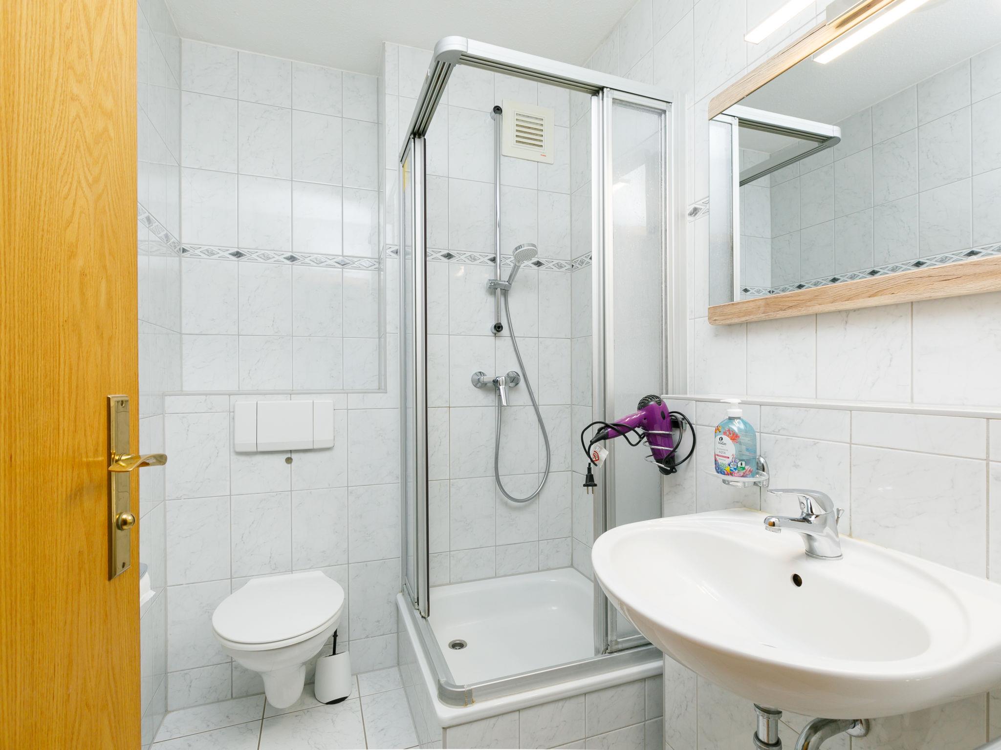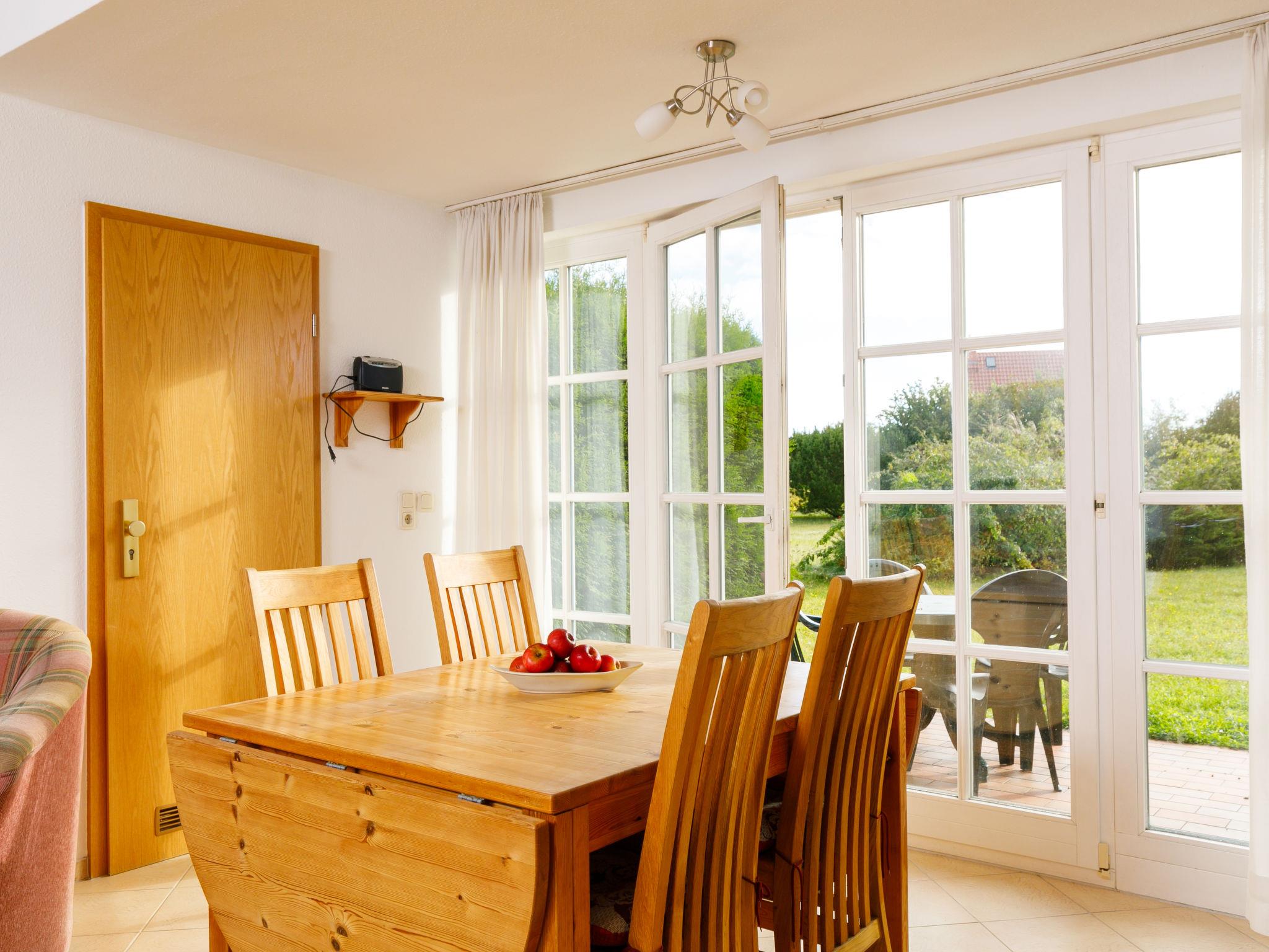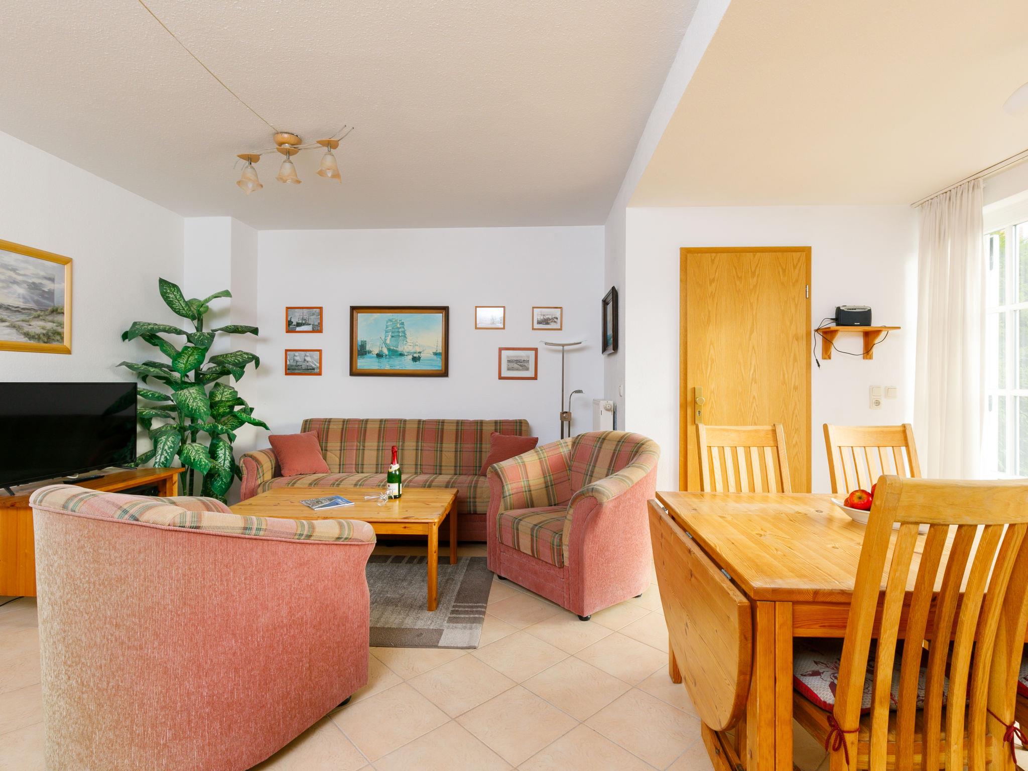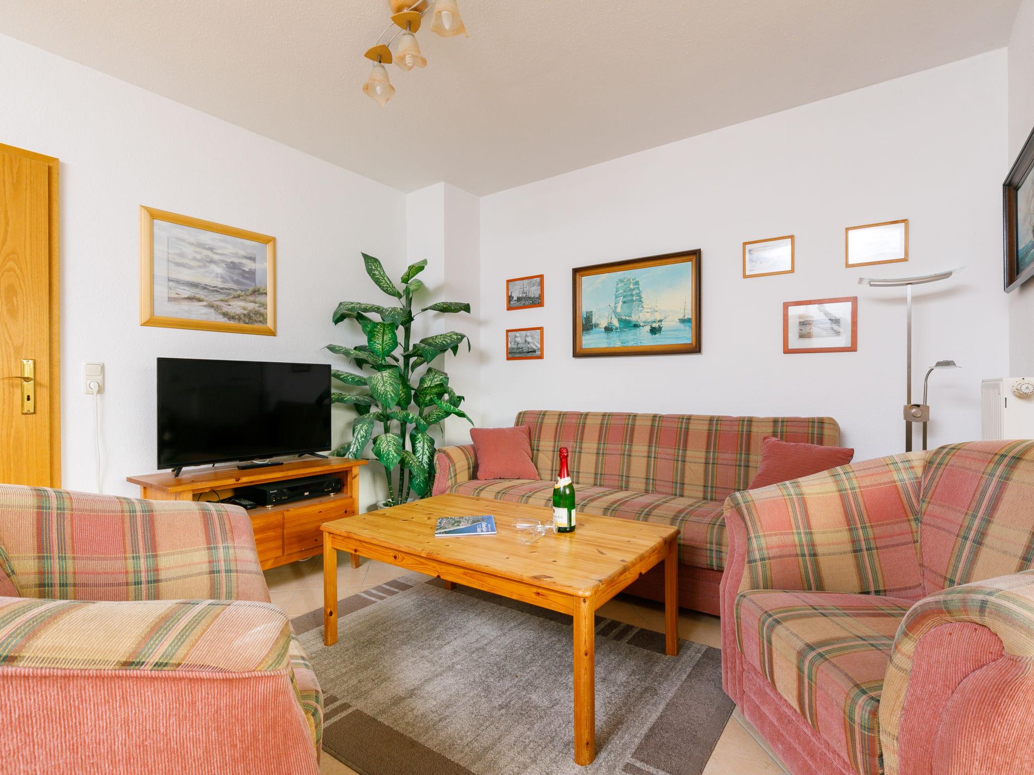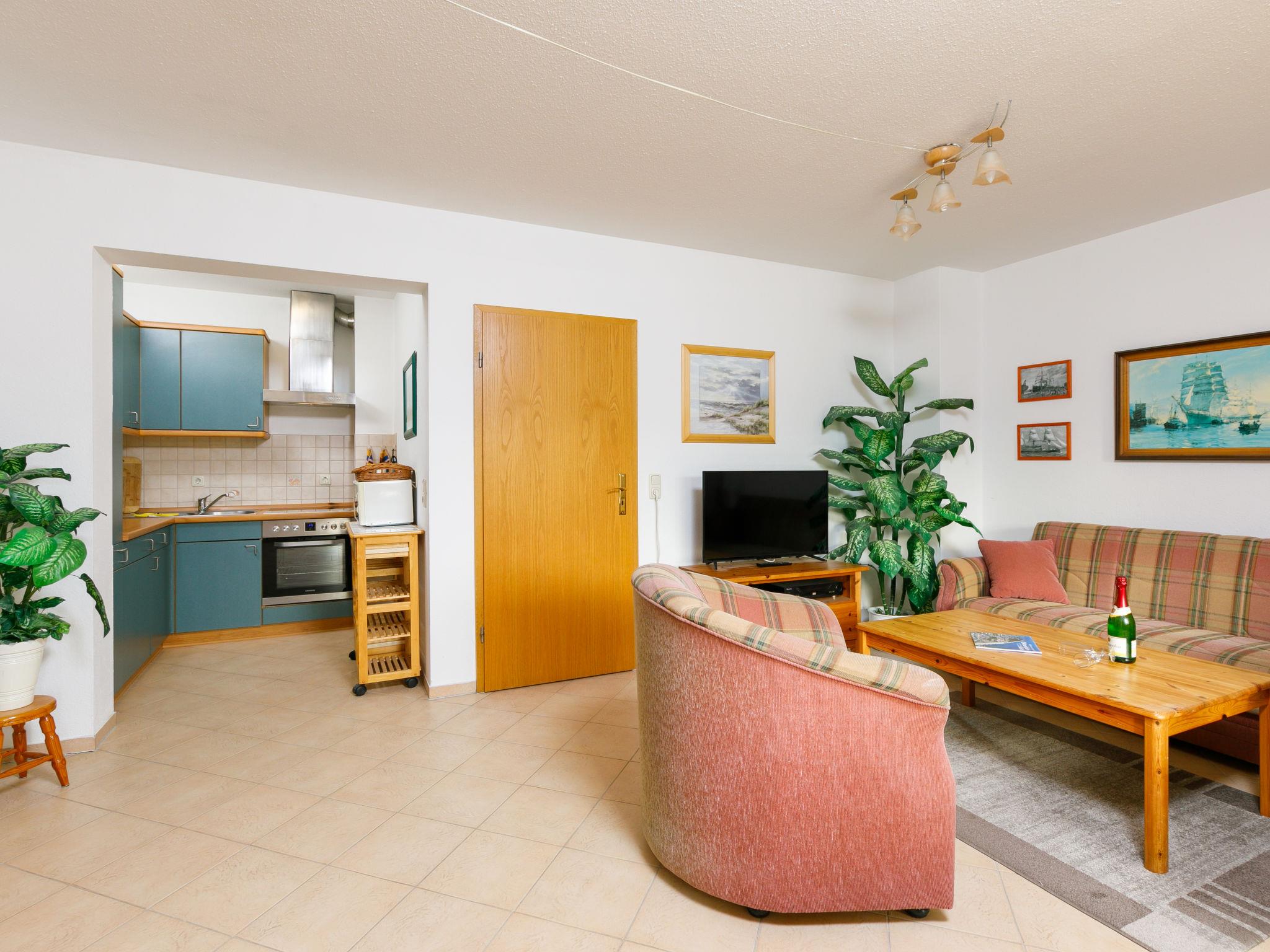 "Achterwasser App. 13", 2-room apartment 60 m2, on the ground floor. Bright, simple furnishings: living/dining room with 1 double sofabed and cable TV (flat screen), radio. Exit to the terrace. 1 room with 1 double bed. Kitchenette (4 hot plates, oven, toaster, kettle, microwave, electric coffee machine). Shower/WC. Terrace. Terrace furniture. Facilities: children's high chair, baby cot. Parking (1 car) at the house. Please note: non-smokers only. Maximum 1 pet/ dog allowed. Smoke alarm.