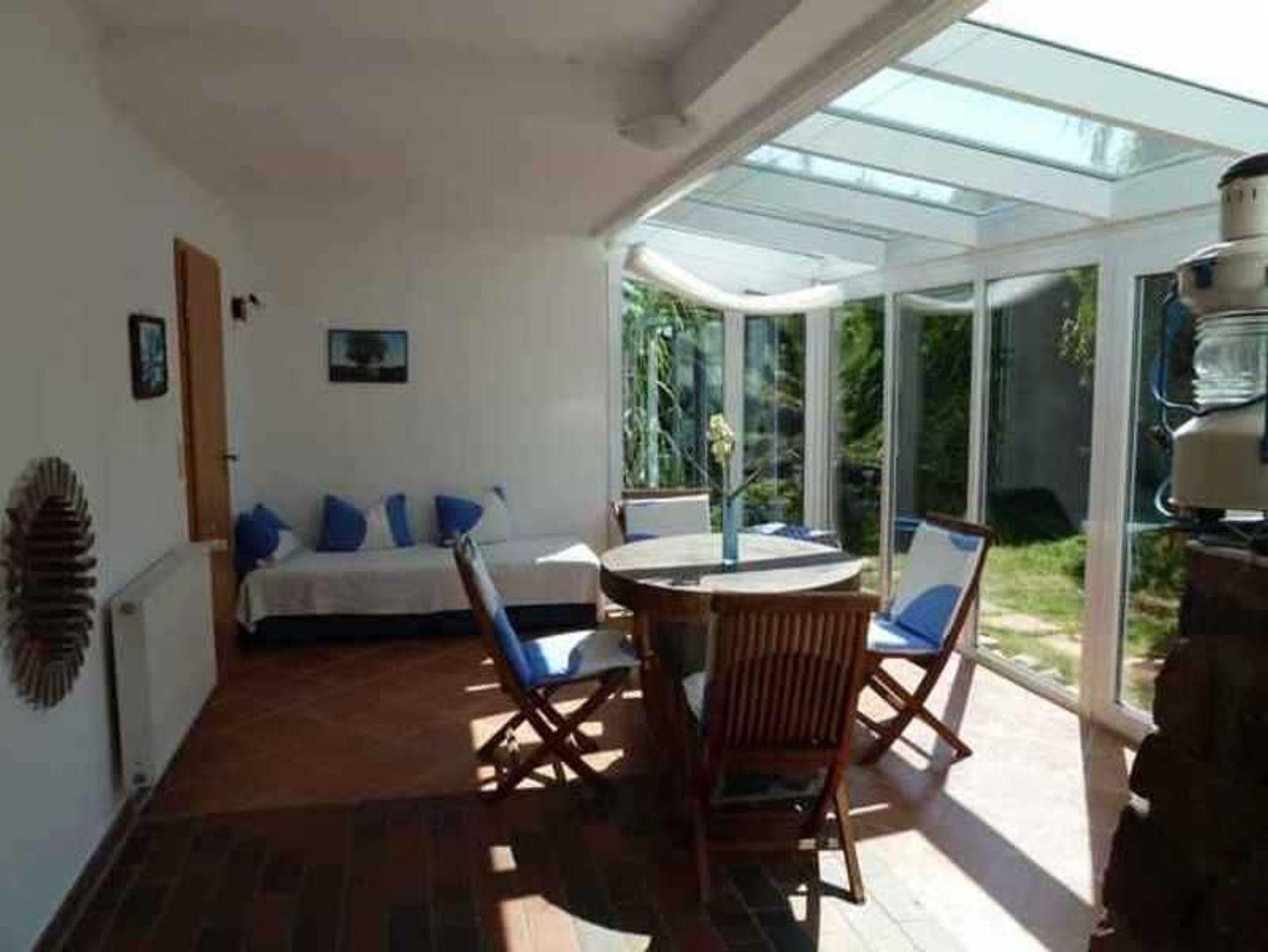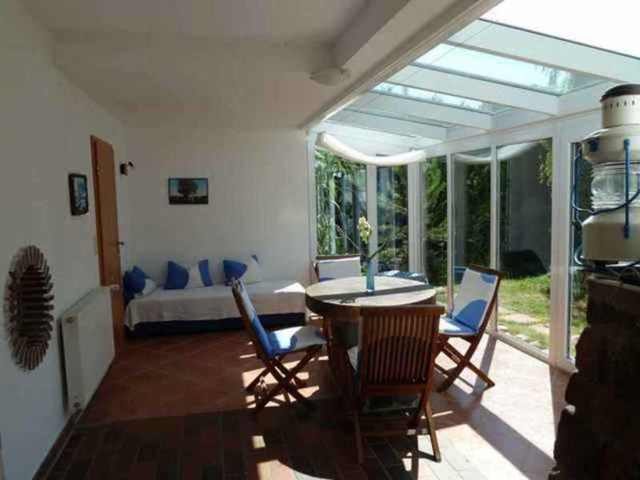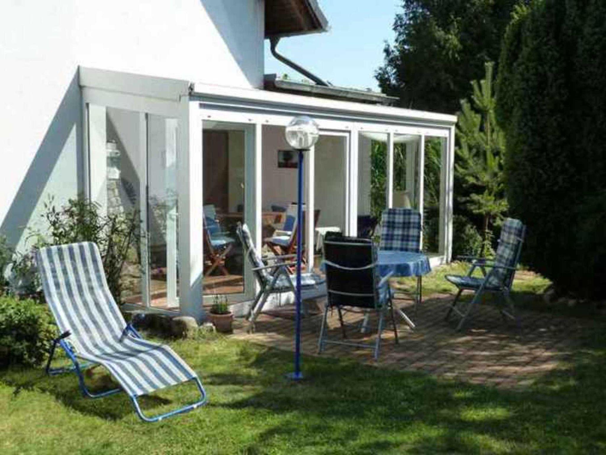 Die Ferienwohnung hat einen Wohnraum (mit TV, Radio, gemütliche Sitzgruppe) und ein Schlafzimmer mit einem Doppelbettt. Wir haben einen wunderschönen großen Wintergarten, der nach Süden ausgerichtet ist. Vom Wintergarten haben Sie einen direkten Zugang in den wunderschönen Garten, der von außen nicht einsehbar ist und nur von Ihnen genutzt wird. Im Garten steht ein Strandkorb für ausgiebige Sonnenbäder zur Verfügung.