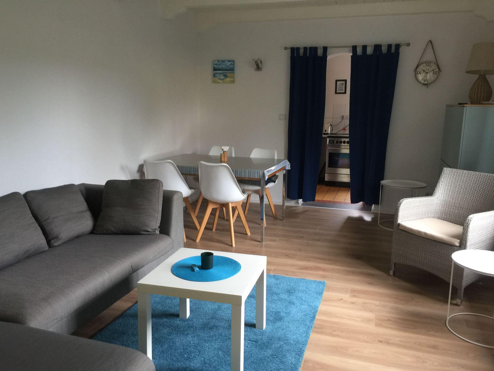 Die Ferienwohnung ist umgeben von einem eigenen Garten mit Gartenmöbeln und Strandkorb und verfügt über einen großen Wintergarten mit direktem Zugang auf die Terrasse und in den Garten, ein gemütliches Wohnzimmer mit einer modernen Couch, Sessel und Leselampe für gemütliche Schöckerstunden, eine maritime Küche, ein Badezimmer mit Dusche sowie ein Schlafzimmer.