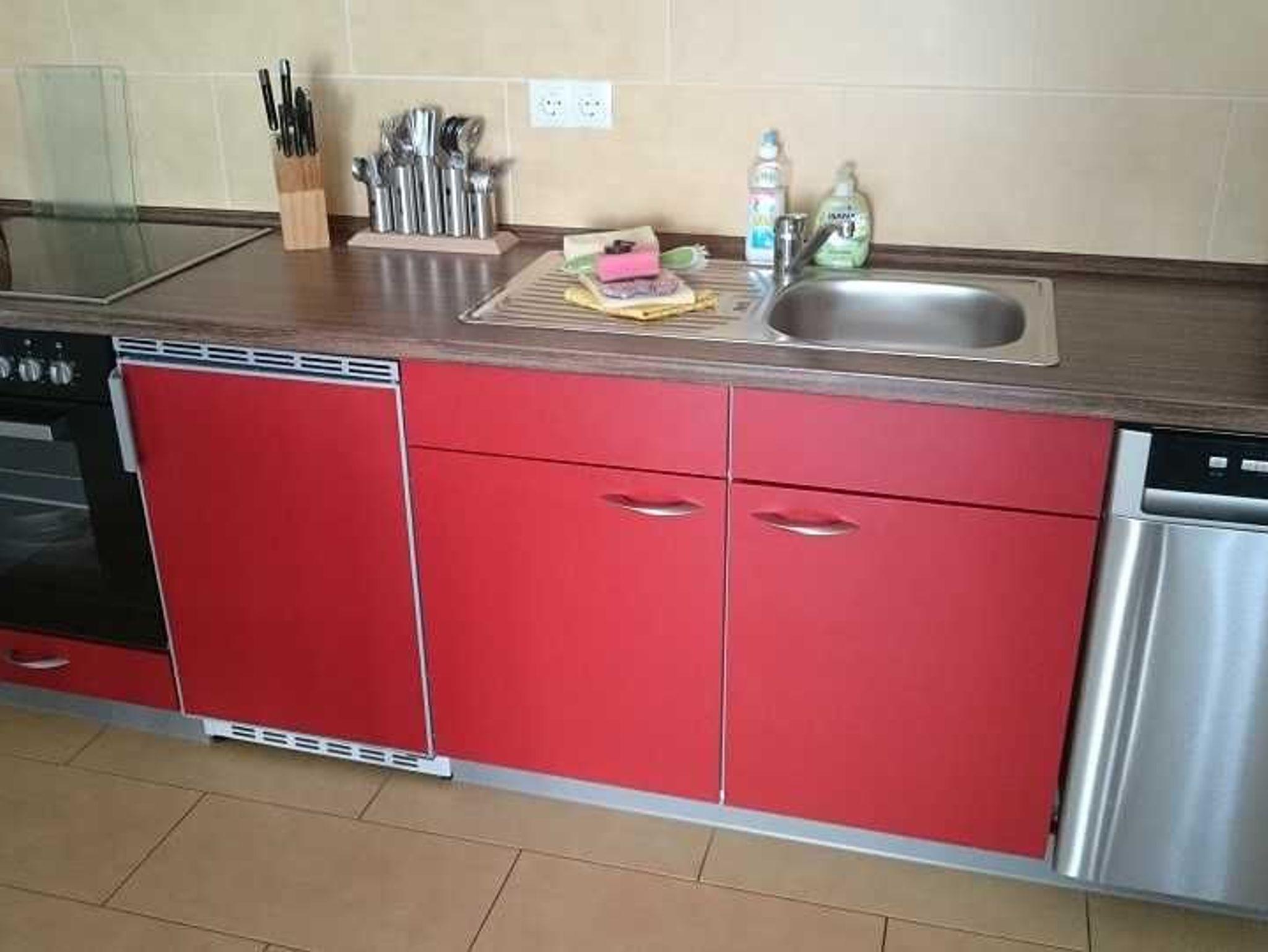 • die Küche ist komplett ausgestattet mit Kochzubehör, Geschirr, Herd, Spüle, Kühlschrank, Spülmaschine, Wasserkocher und Kaffeemaschine