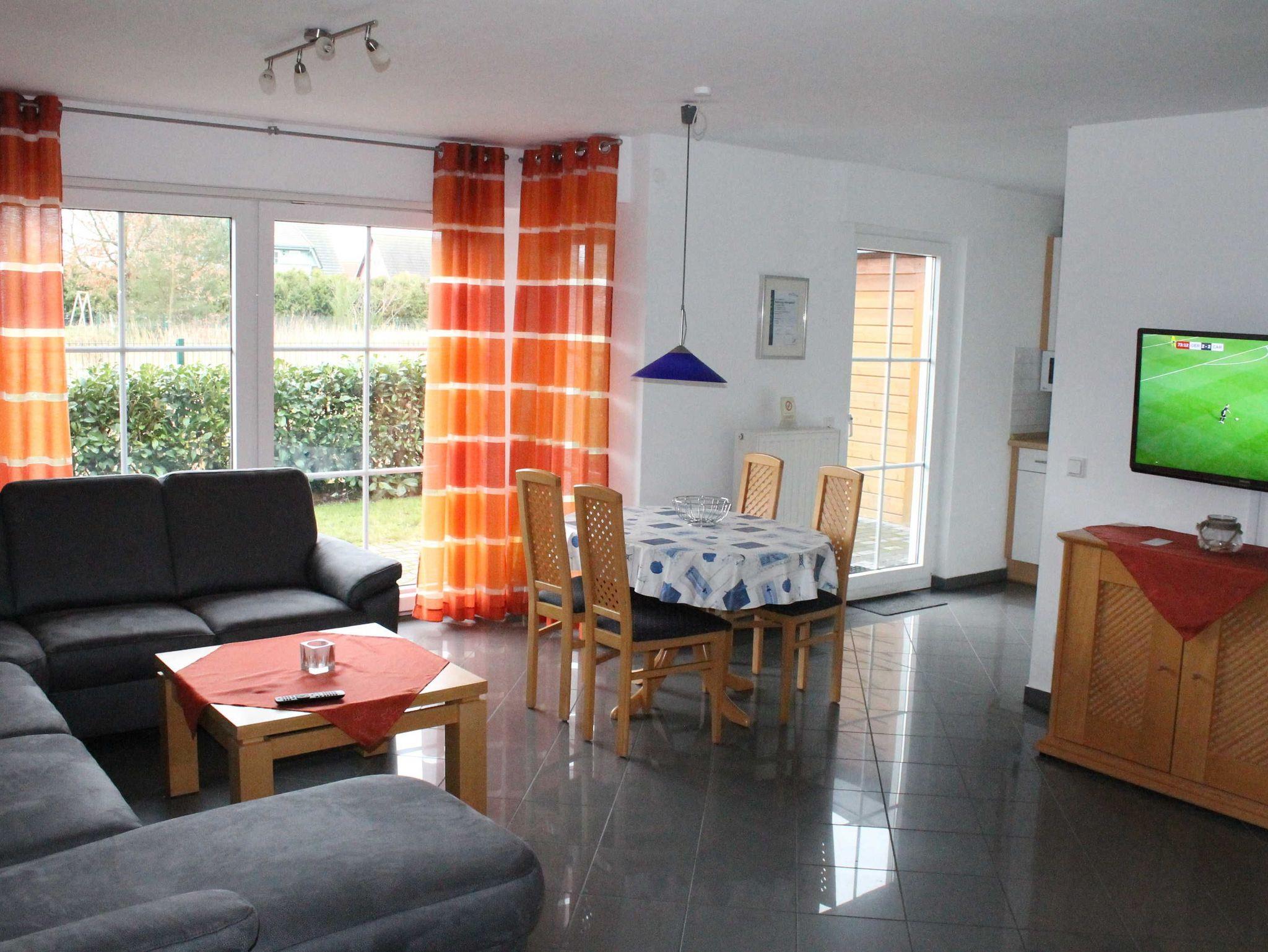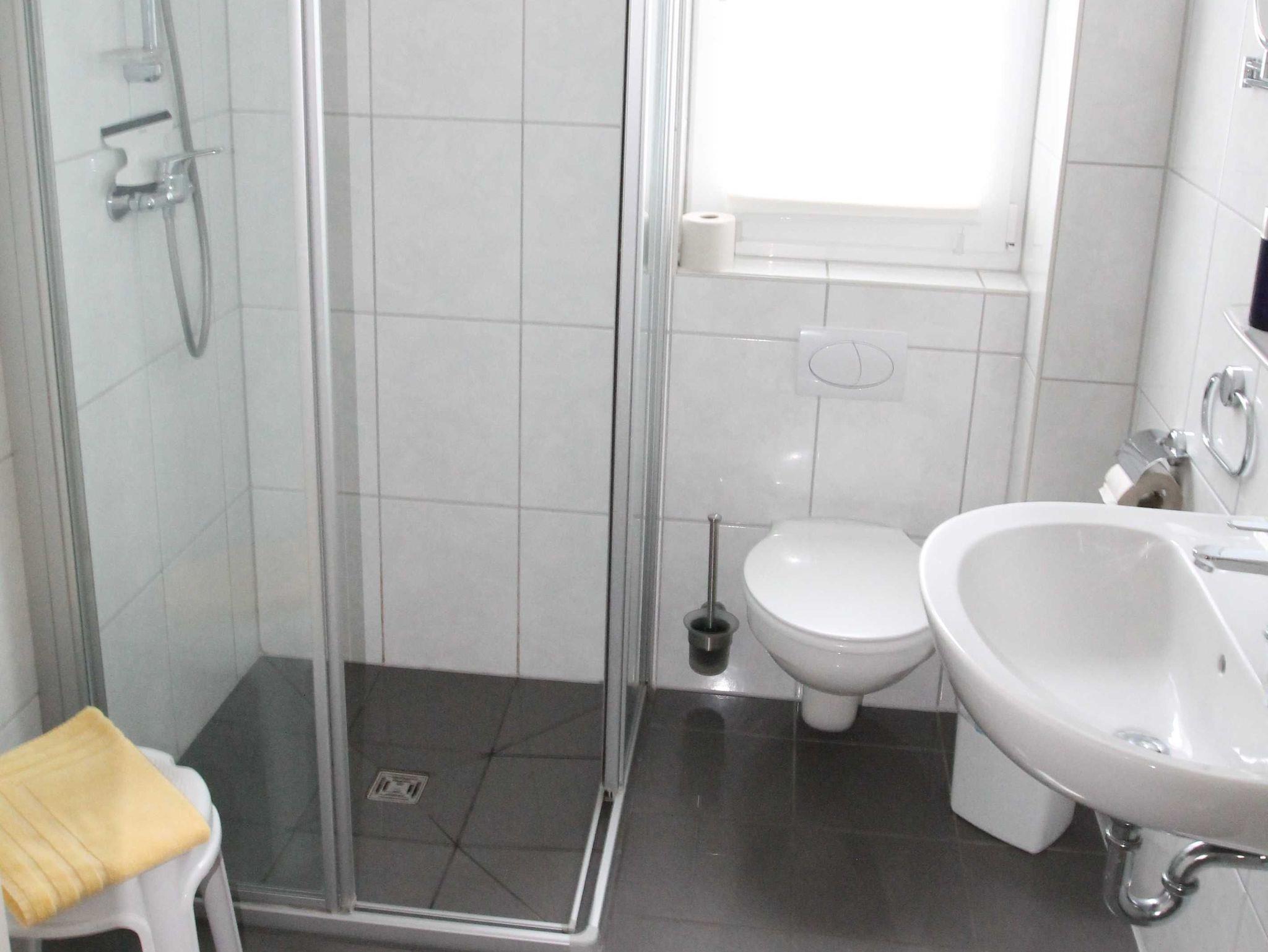 Das Badezimmer hat eine bodengleiche Dusche mit WC und Waschbecken, außerdem gibt es noch ein zusätzliches Gäste WC. Die Erdgeschosswohnung ist mit Direktwahltelefon, WLAN und LED TV ausgestattet. Weiterhin verfügt die Wohnung über eine Südterrasse mit Gartenmöbeln. Die Erstausstattung Bettwäsche und Handtücher ist bereits inklusive.