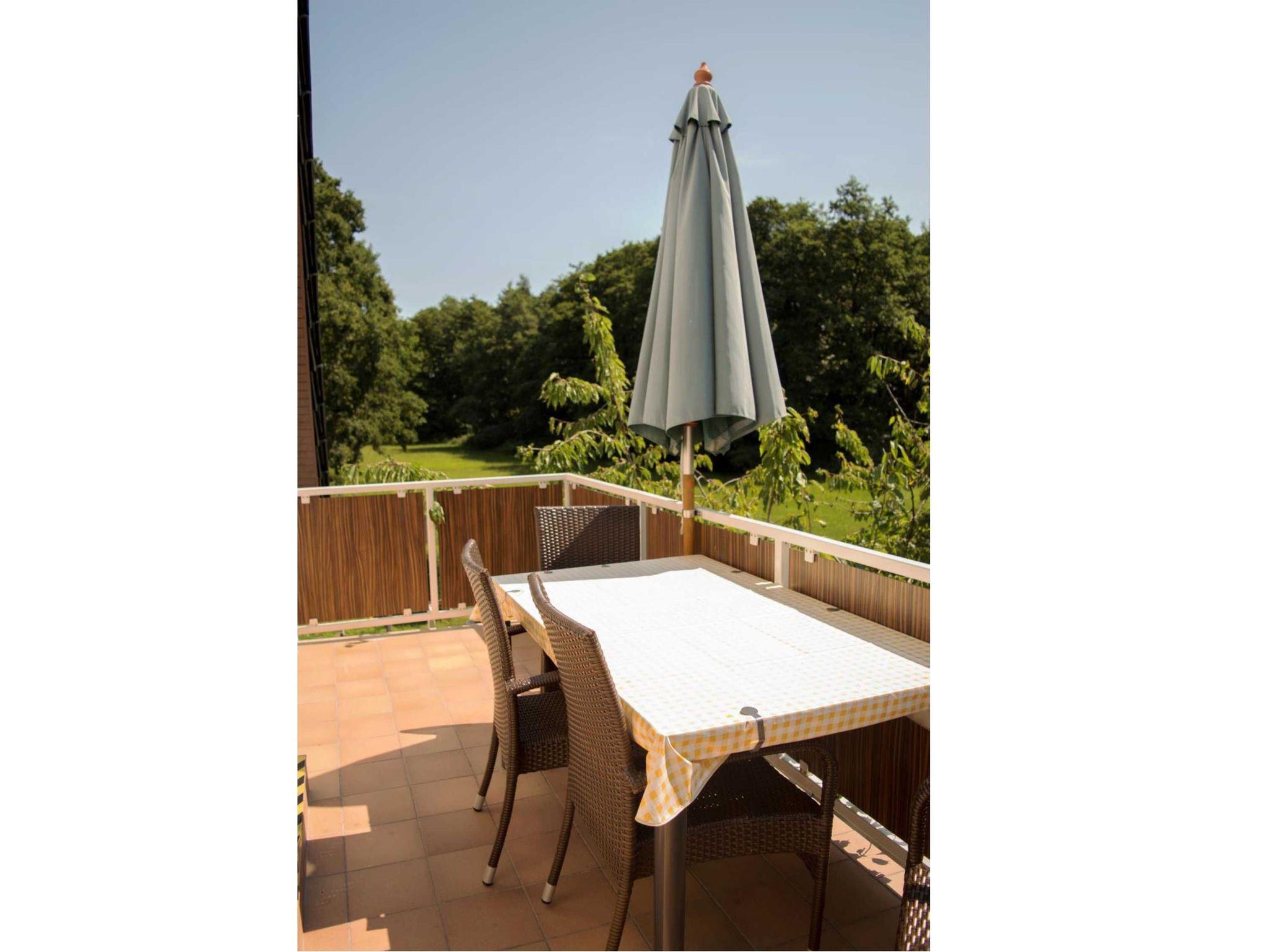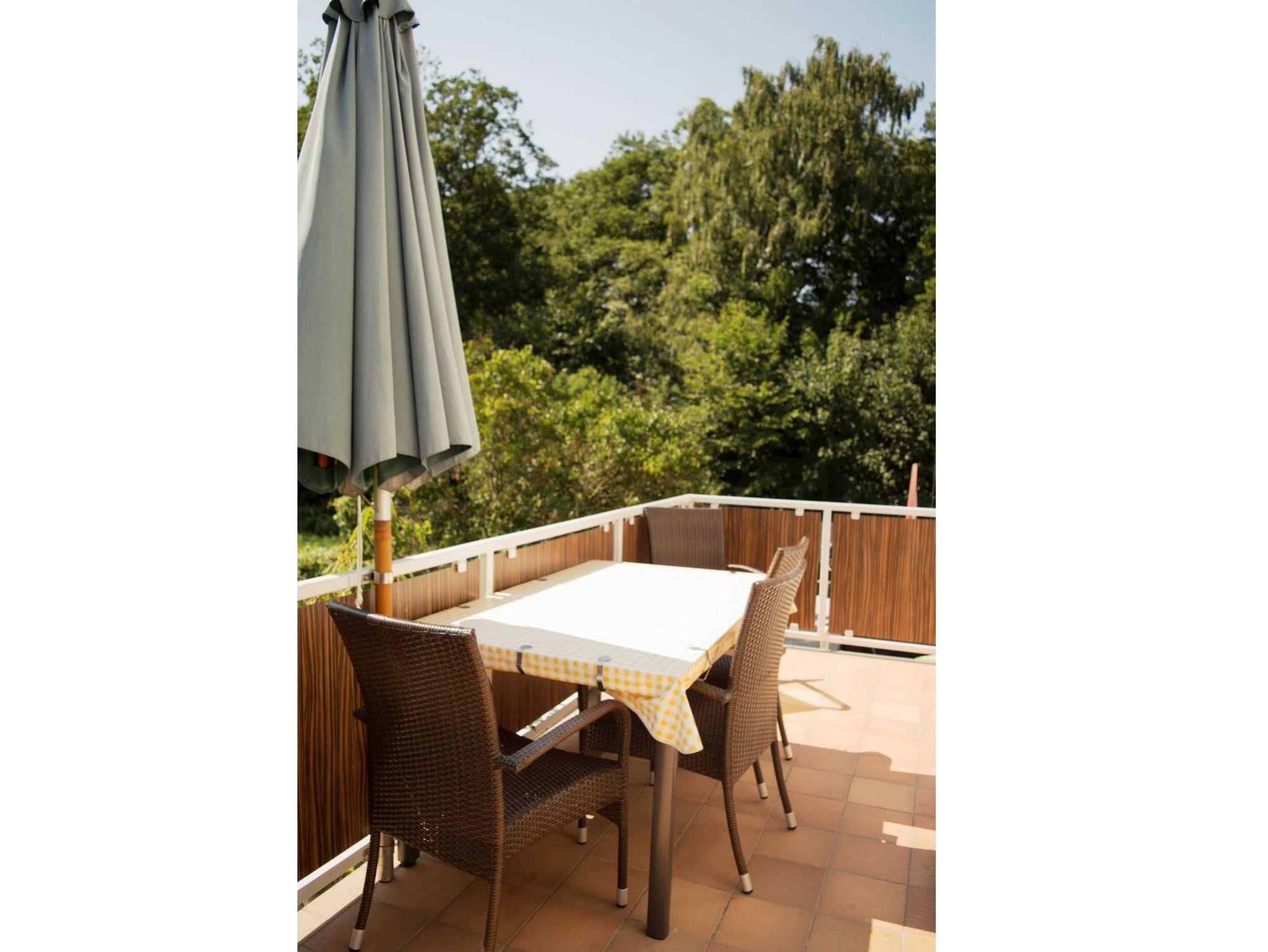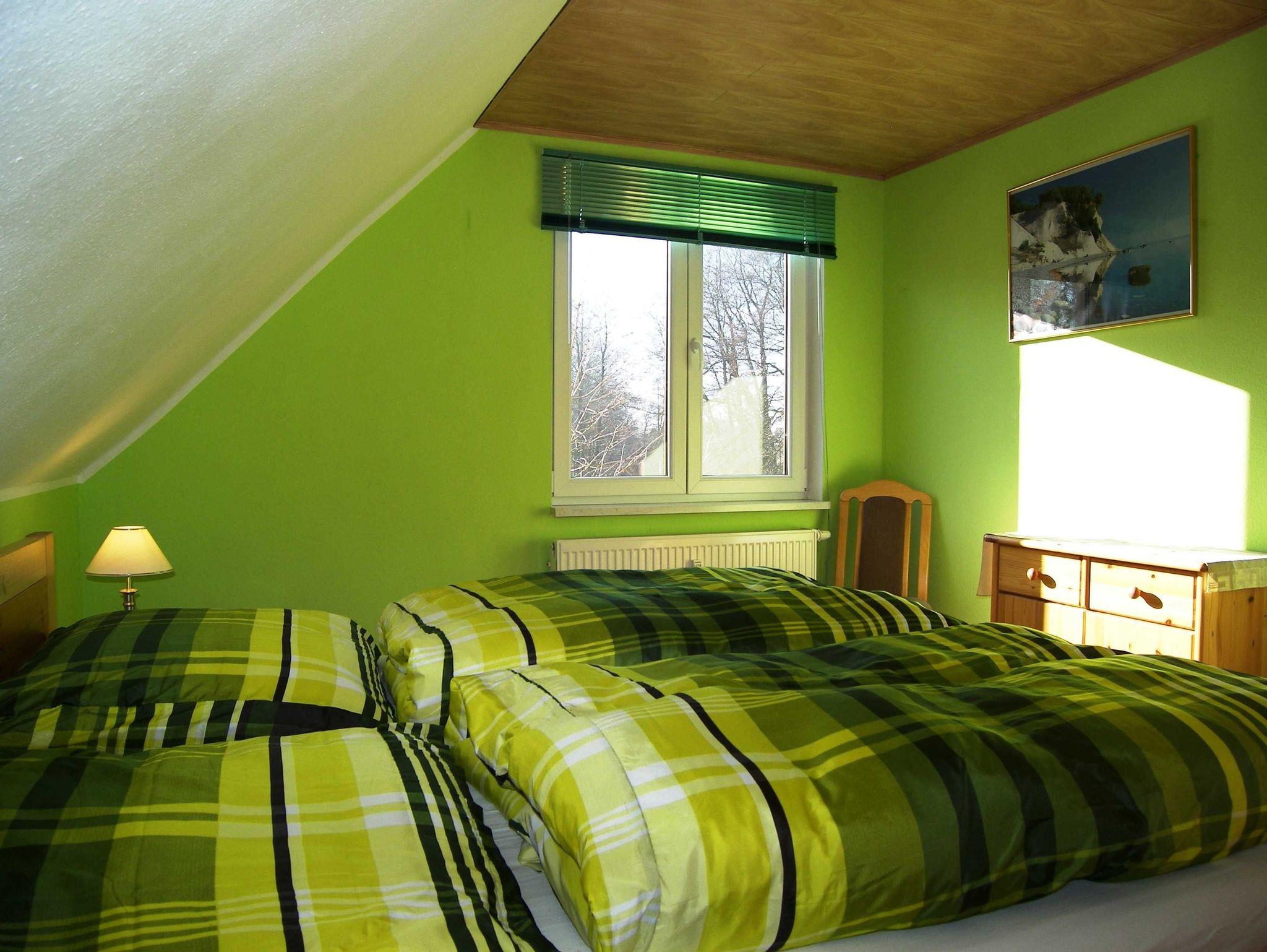 Die gemütliche Ferienwohnung ist ca. 55 m² groß und befindet sich im 1. OG. Sie verfügt über einen separaten Eingang. Das Schlafzimmer ist mit einem Doppelbett und einem Kleiderschrank ausgestattet. Für die 3. Person kann eine bequeme Schlafcouch (160 x 200) im Wohnzimmer genutzt werden. Das gemütlich eingerichtete Wohnzimmer ist mit einem großen Fernseher und Radio ausgestattet. Der große (10m²), möbelierte Balkon zur Südseite mit Wiesenblick lädt zum Verweilen ein. Grillen auf dem Balkon ist möglich.