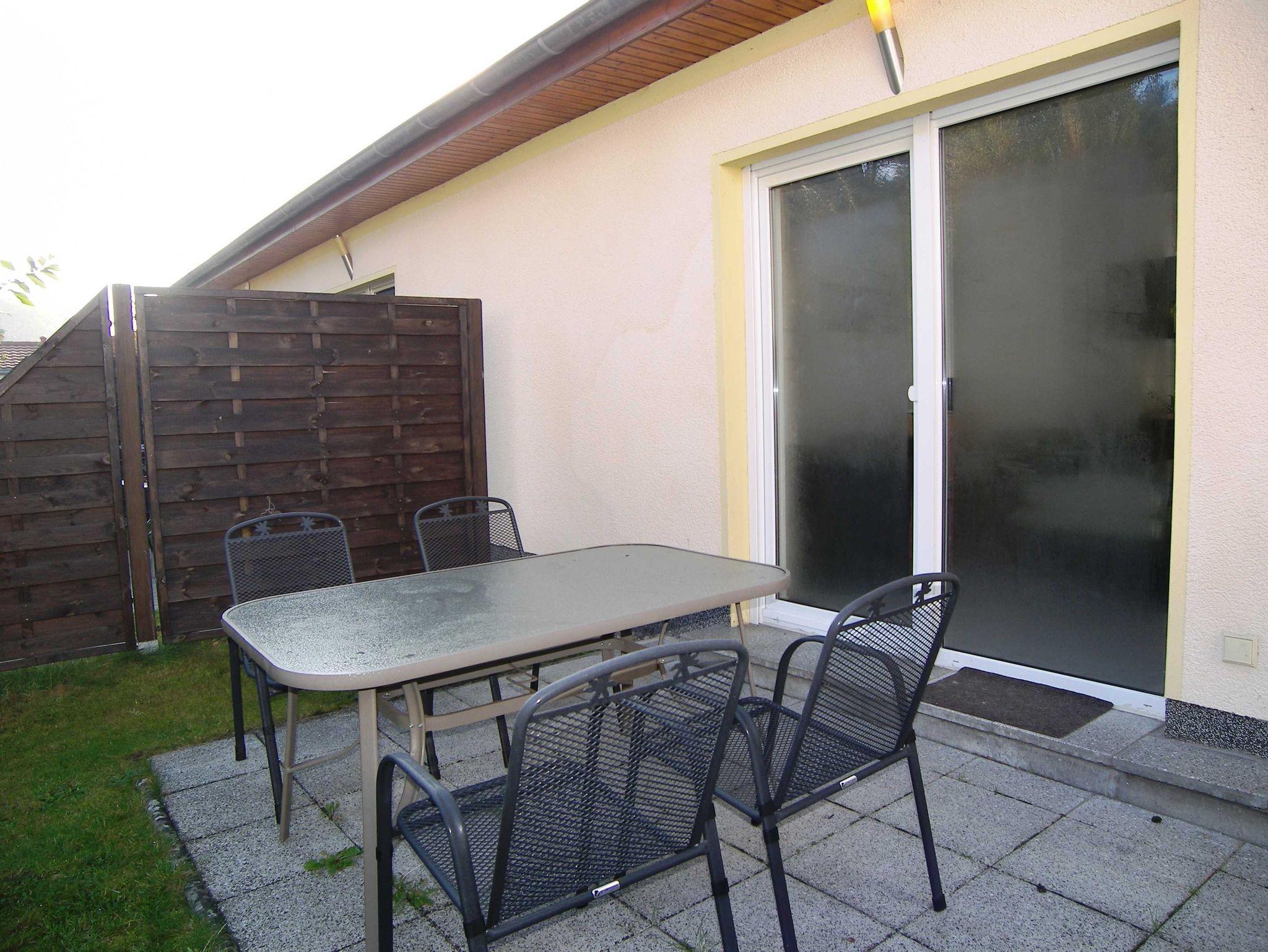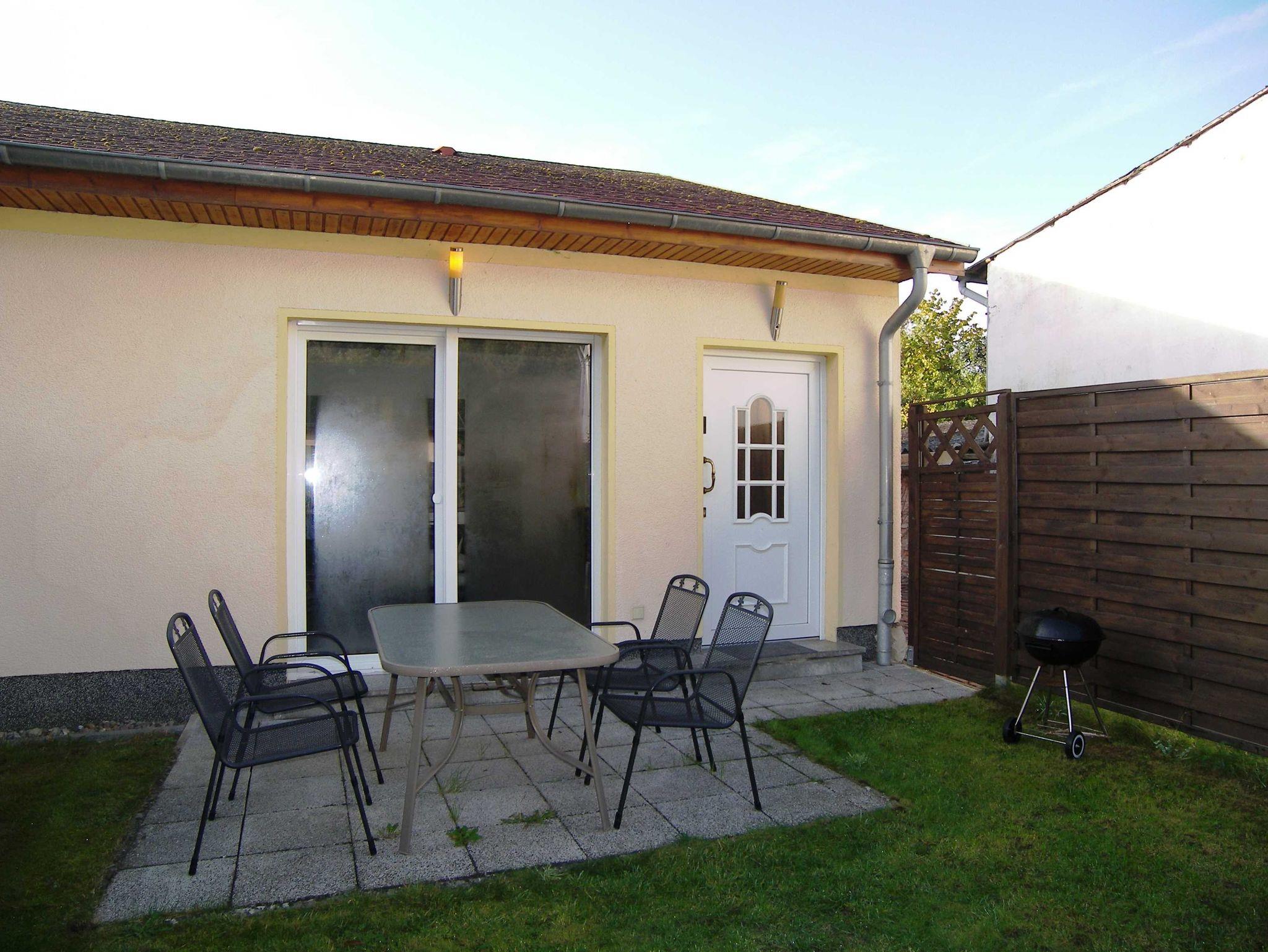 Die 50 qm große Ferienwohnung verfügt über einen separaten Eingang und eine eigene Terrasse. Der offene Wohnbereich ist mit einer gemütlichen Couch und einem Flat-TV, sowie mit einem Esstisch ausgestattet und schließt an die offene Küchenzeile an. Diese ist mit Backofen, Cerankochfeld, Spülmaschine, Kühlschrank, Wasserkocher, Toaster und Kaffeemaschine ausgestattet. Das größere Schlafzimmer ist mit einem Doppelbett und einem Kleiderschrank ausgestattet, das kleinere Schlafzimmer mit einem Einzelbett und einem Etagenbett. Das Badezimmer verfügt über Dusche/WC. Bettwäsche und Handtücher können gegen Gebühr dazugebucht werden.