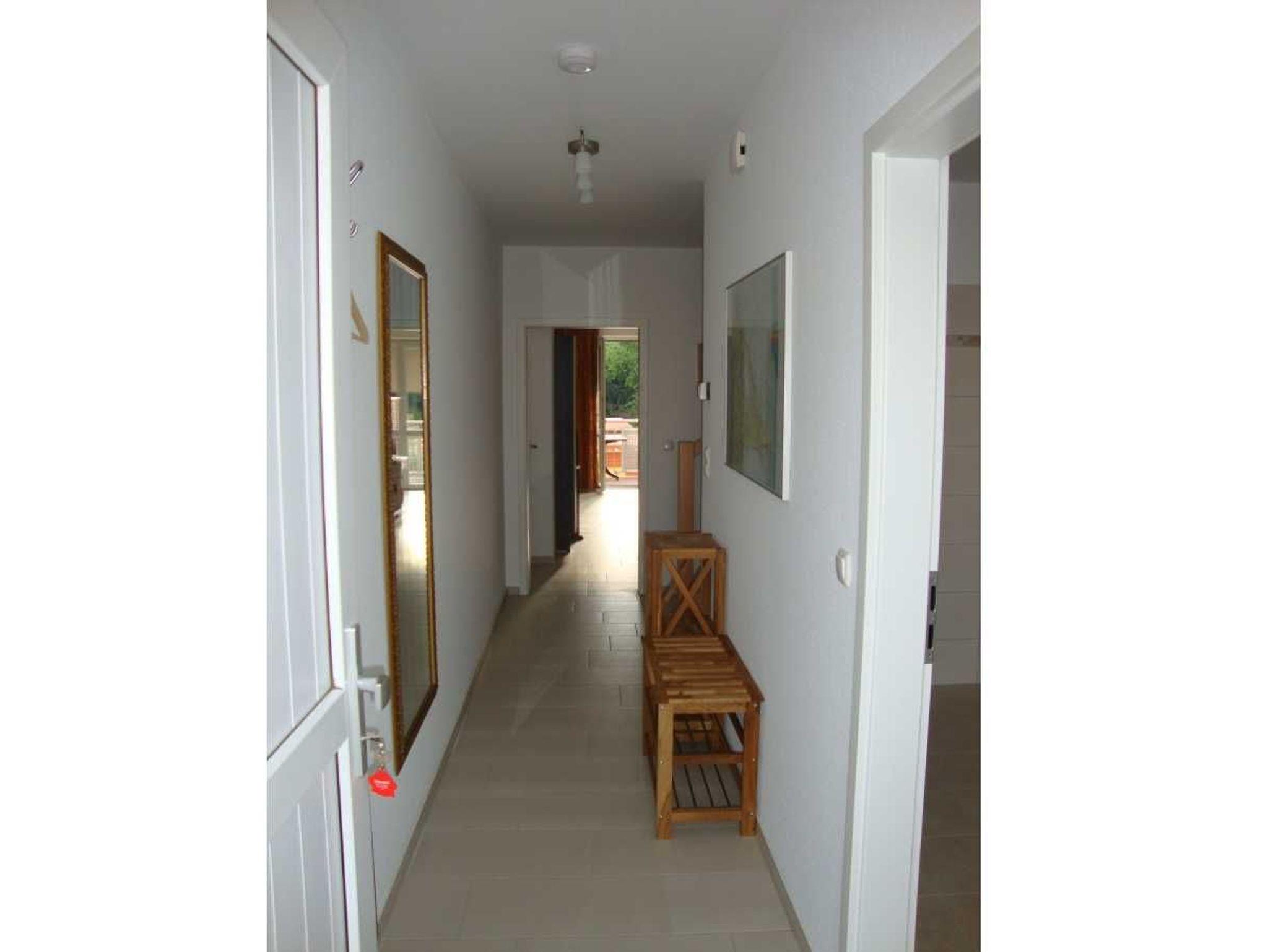 Die Ferienwohnung erstreckt sich über 2 Etagen und ist sehr geräumig und komfortabel eingerichtet. Im 1.OG befindet sich das Wohnzimmer mit einem schönen möblierten Balkon und ein Bad mit Dusche, WC und Fön. Die offene Einbauküche ist mit einem Ceranherd, Backofen, Kühlschrank, Tiefkühlfach, Gläser, Besteck und Geschirr ausgestattet. Die obere Etage mit zwei Schlafzimmern und einem zweiten Bad mit Dusche und WC, bietet einen weiteren Balkon, auf dem man gemütlich den Tag ausklingen lassen kann. In der kalten Jahreszeit sorgt eine Fußbodenheizung für behagliche Wärme. Die Ferienwohnung liegt ruhig am Ende der Straße in der im Jahr 2011 erbauten Ferienwohnanlage Ostseepark Zempin.