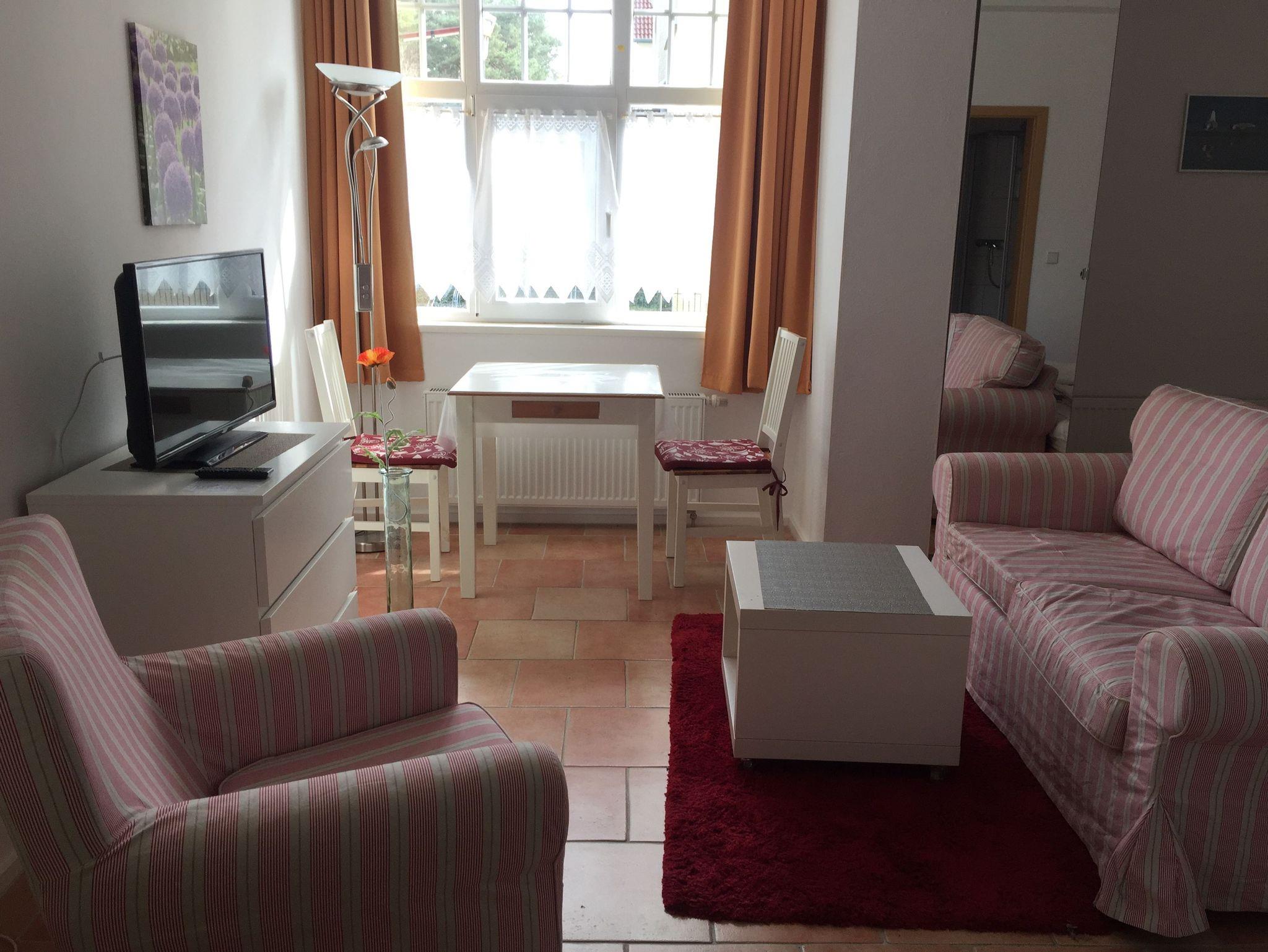 Das 1-Raum-Appartement ?Strandhafer? befindet sich im Erdgeschoss des Vorderbaus und besteht aus einem gemütlichen Schlafbereich sowie einem Wohn ? Essbereich mit einer modernen Küchenzeile mit Backofen, Kühlschrank, Kaffeemaschine und Wasserkocher. Im Wohnbereich stehen Ihnen eine Couch und eine Leselampe für gemütliche Schmöckerstunden zur Verfügung. Sie haben die Möglichkeit die Sitzgelegenheiten im Freien vor dem Vorderbau zu nutzen. Hier können Sie im Sommer Ihr Frühstück genießen.