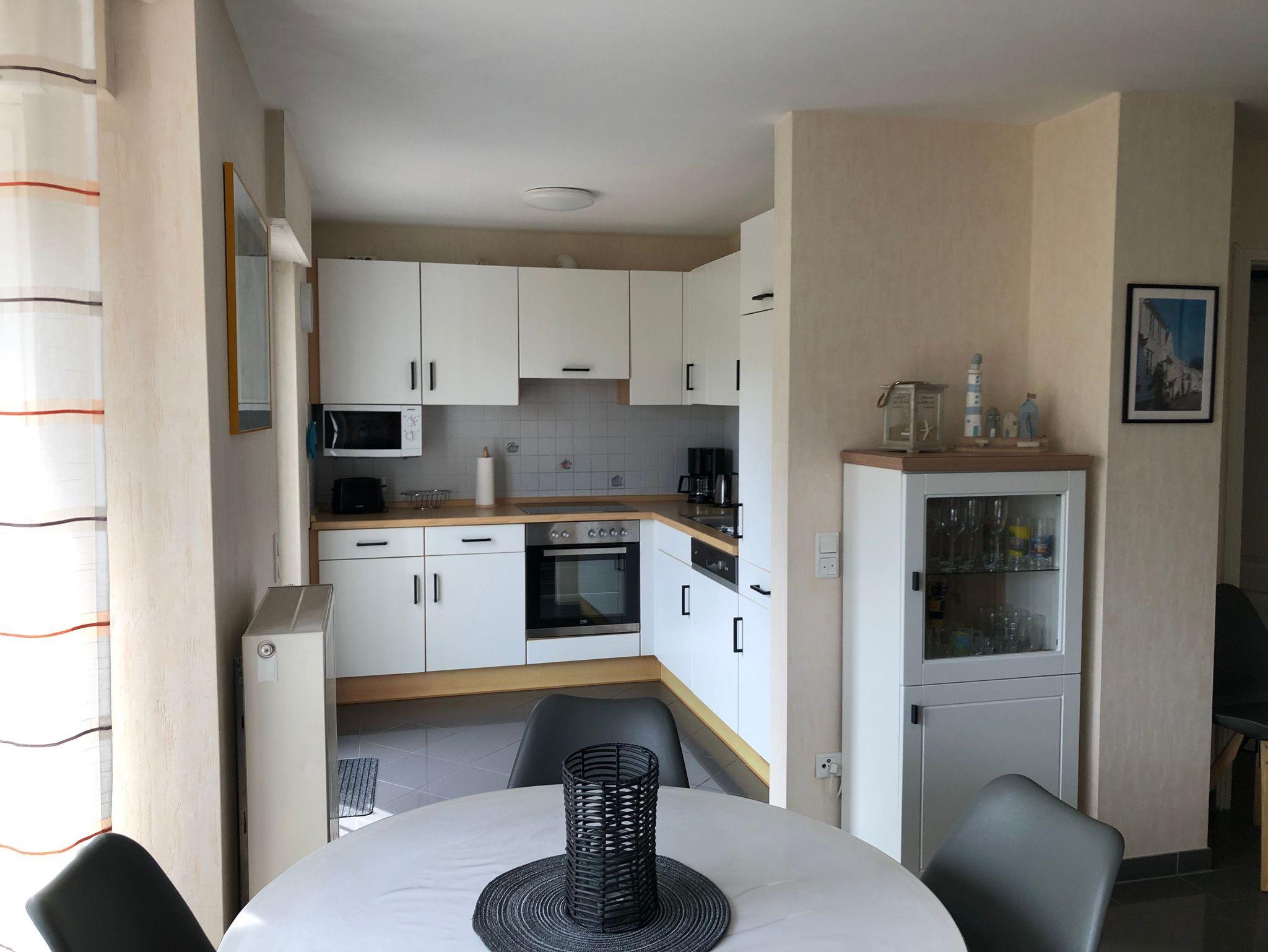 Die helle, großzügige und exklusiv eingerichtete 3-Raum?Erdgeschoss-Ferienwohnung ist (ca. 65 m²) groß und ist für 4 Personen geeignet, besteht aus einem Wohnraum, kompletter Einbauküche mit Cerankochfeld, Backofen, Mikrowelle und Geschirrspüler, Schlafzimmer (Doppelbett), Kinderzimmer, Bad mit Dusche (Bodengleich) und WC, Gäste-WC (zusätzlich) und einer Terrasse. Fliesenfußboden, sowie Fußbodenheizung im Wohnzimmer, Küche und Bad, Die zur Südseite gelegene gepflasterte Terrasse ist mit Gartenmöbeln, Sonnenschirm und Grill ausgestattet. Der Terrassenbereich ist aus der Küche sowie aus dem Wohnbereich begehbar. Die Erstausttatung Bettwäsche sowie 1 Geschirrtuch sind inklusive. Handtücher können entweder mitgebracht oder vor Ort gegen Gebühr ausgeliehen werden (bitte beim Schlüsselverwalter Herrn Käding vorbestellen). Den Gästen steht kostenfrei ein DSL-Internetzugang über W-LAN zur Nutzung zur Verfügung (keine zugesicherte Eigenschaft falls mal der Router ausfällt). Haustiere sind nicht erlaubt, Nichtraucherwohnung.