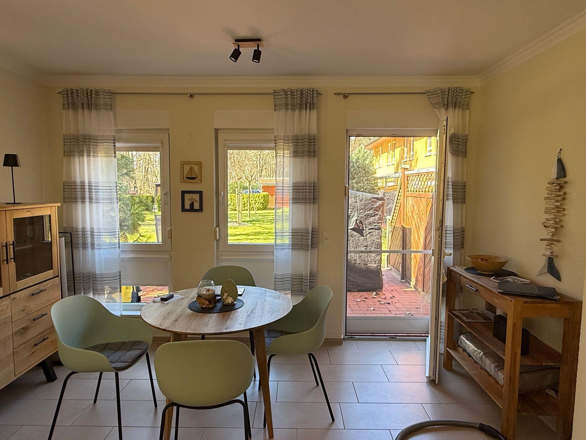 Exklusive 52 m² Erdgeschoßwohnung mit großer möblierter Terrasse, eigenem Gartenanteil von 45 m² und einem PKW-Stellplatz. Die Wohnung ist hochwertig eingerichtet mit Fußbodenheizung, 2 Smart-TVs, Einbauküche mit Ceranherd, Backofen, Kühlschrank, Tiefkühlfach, Nespresso Kaffeeautomat, Wasserkocher & Toaster von WMF, Gläser, Besteck und Geschirr.