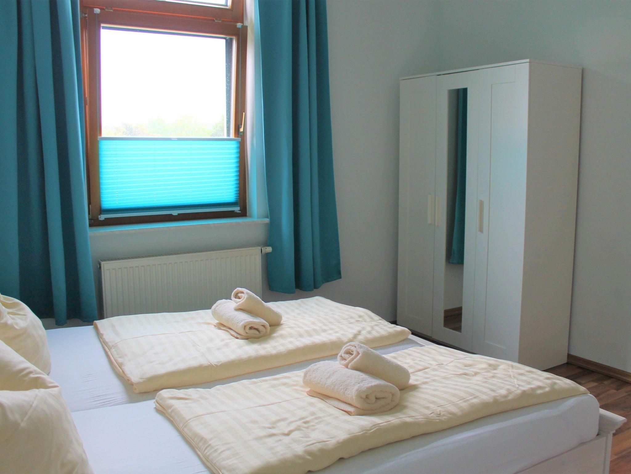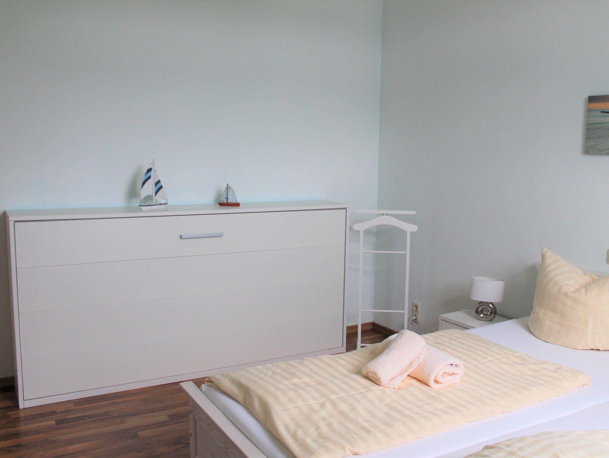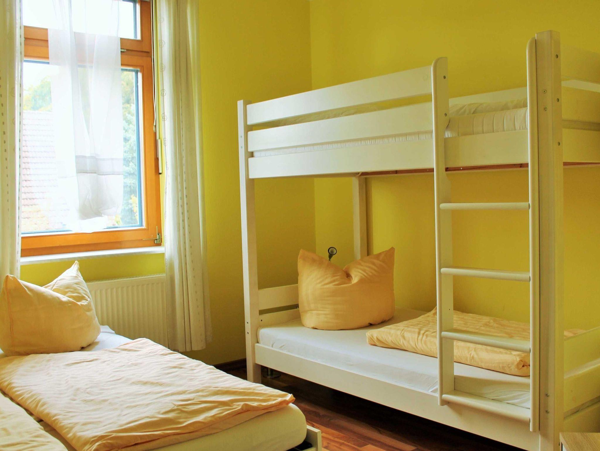 In einem Schlafzimmer steht Ihnen ein Doppelbett (180 x 200 cm) sowie ein Wandklappbett (90 x 200 cm) zur Verfügung. In einem weiteren Schlafzimmer bieten wir Ihnen ein Doppelbett (160 x 200 cm) und ein Doppelstockbett (2 x 90 x 200 cm) an.