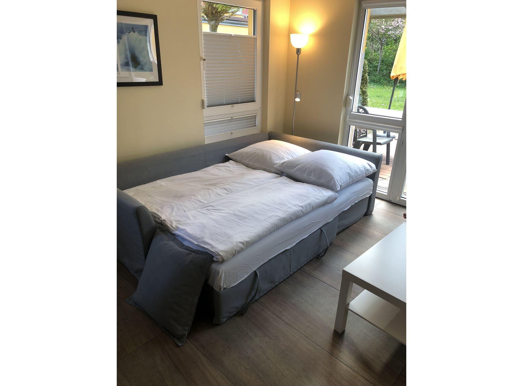 - die Couch im Wohnzimmer ist ausziehbar und hat somit eine Schlaffunktion für 2 Personen