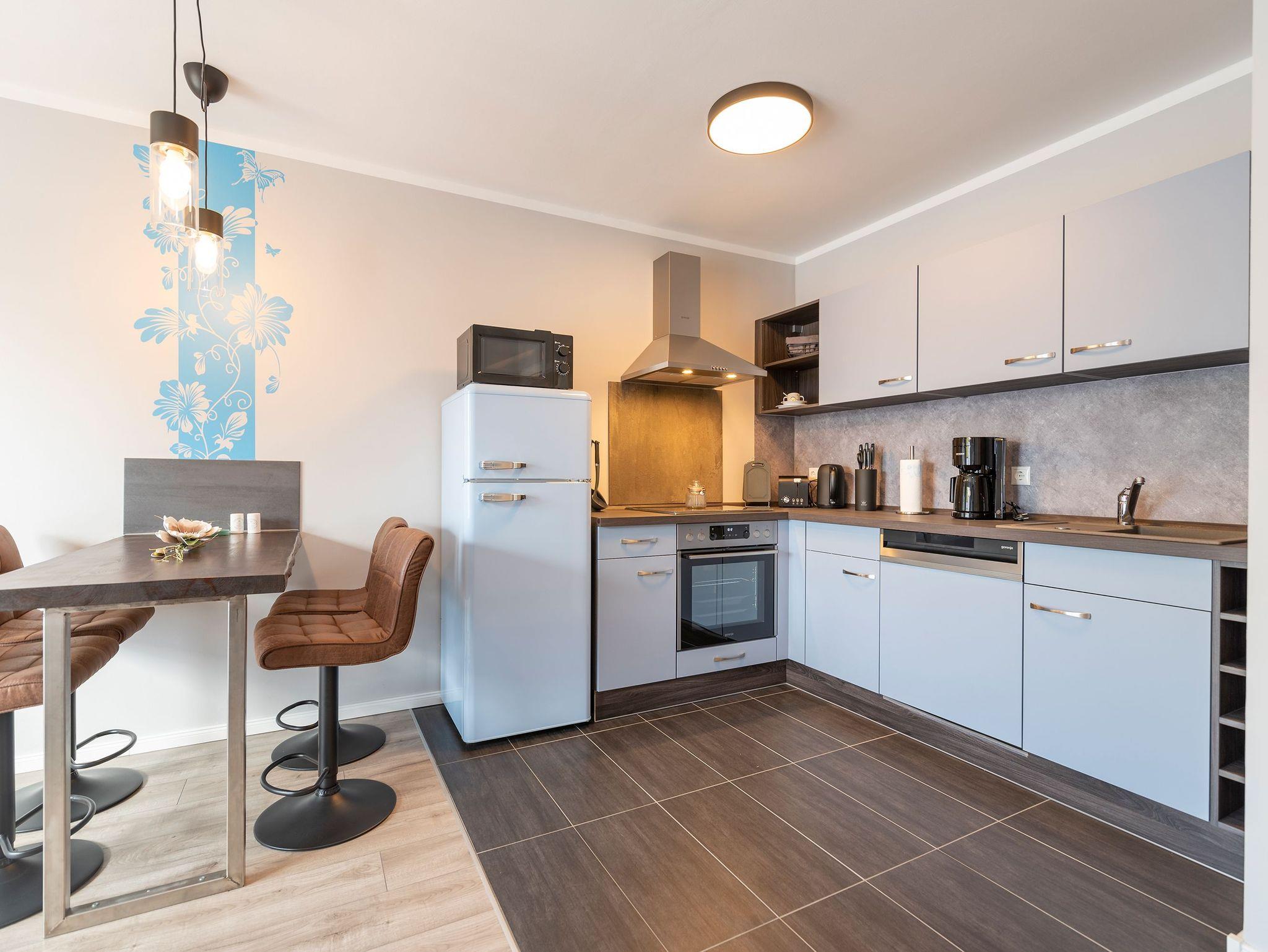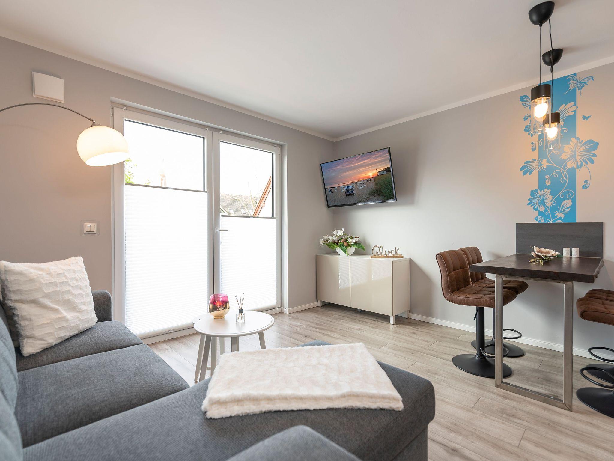 Das Angebot umfasst von März bis Oktober eine Münzwaschmaschine direkt am Haus, einen praktischen Abstellraum für Fahrräder und einen eigenen PKW-Stellplatz für jede Wohnung, wodurch die Parkplatzsuche entfällt. Für kleinere Ausflüge steht zudem ein Bollerwagen bereit, der das Mitführen von Picknickutensilien oder Strandspielzeug erleichtert.