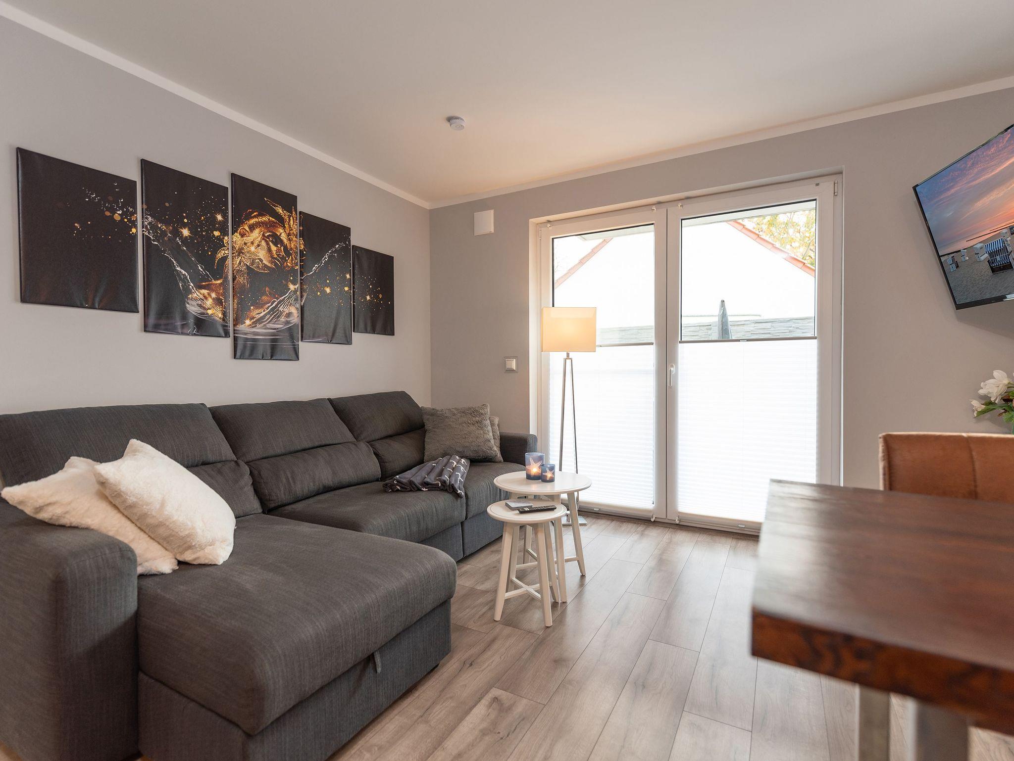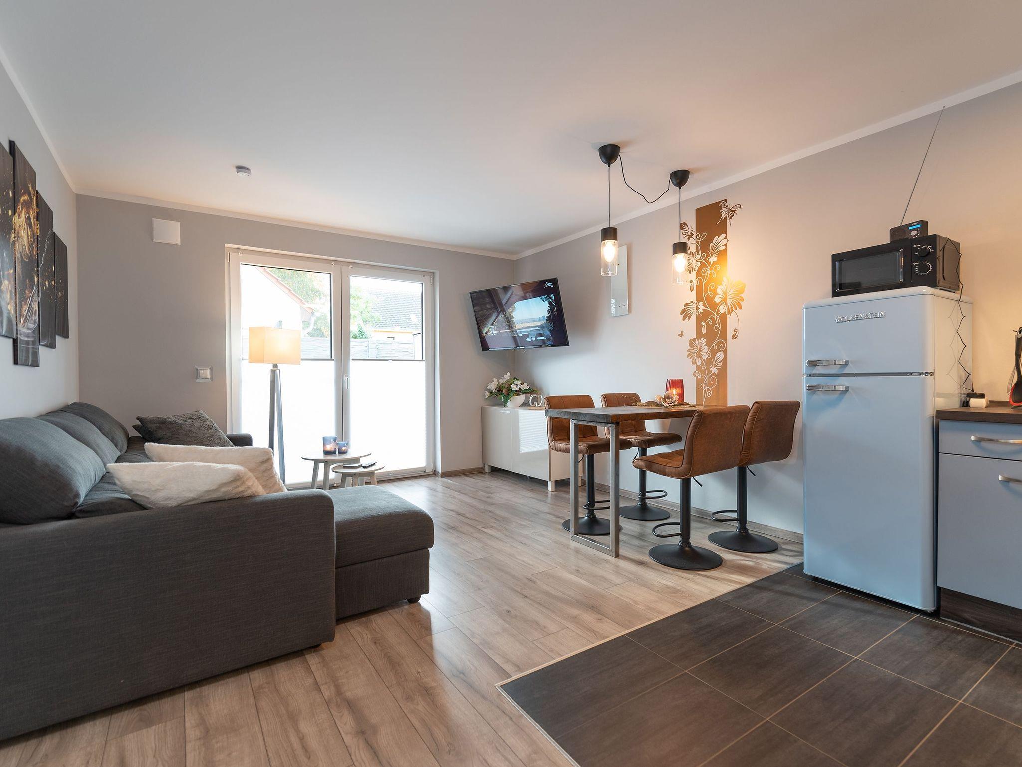Das Appartement Nr. 2 im Erdgeschoss unten links ist speziell für Gäste mit Hunden konzipiert und bietet Platz für bis zu 4 Personen plus Baby. Die Ausstattung umfasst: