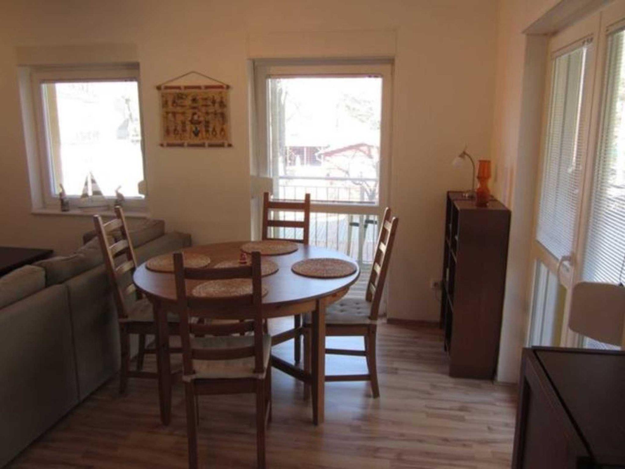 Sehr schön eingerichtete Ferienwohnung mit einem großem Eckbalkon mit Blick zum Kiefernwald.